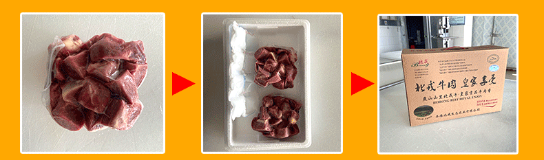 7.食用前,请将牛肉置于冰箱冷藏室放至牛肉软化或者冷水浸泡至软化,解冻时请勿将真空袋撕开。