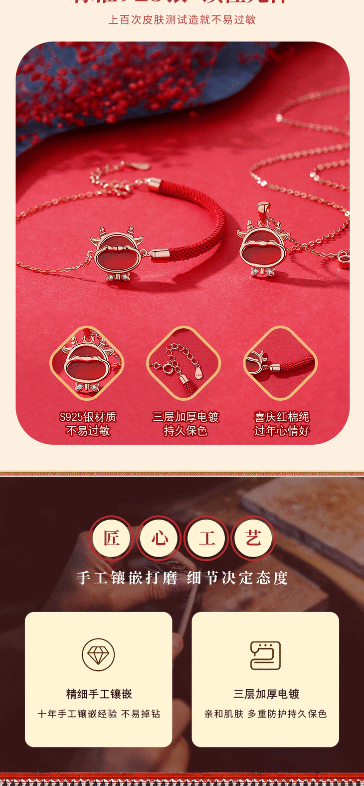 【本命年红绳手链】生肖牛纯银项链女ins不掉色饰品闺蜜生日礼物