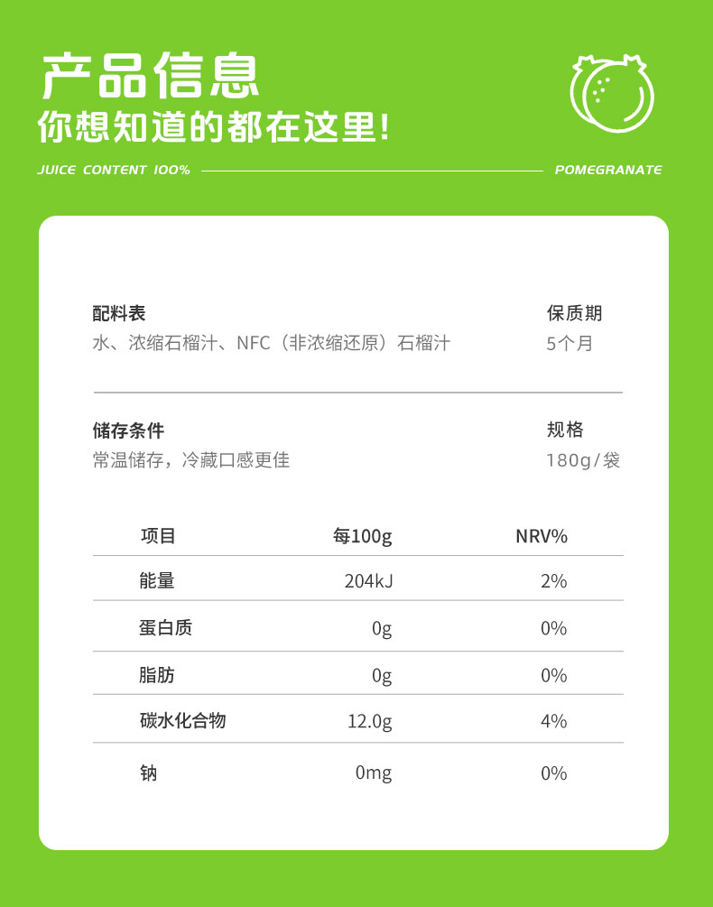 耶气满满100%含NFC原榨石榴汁