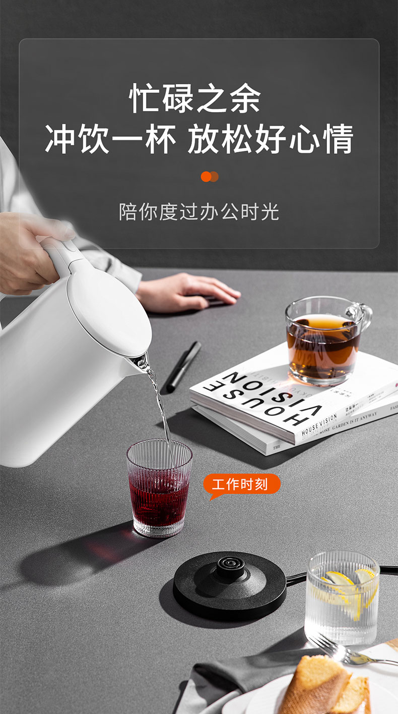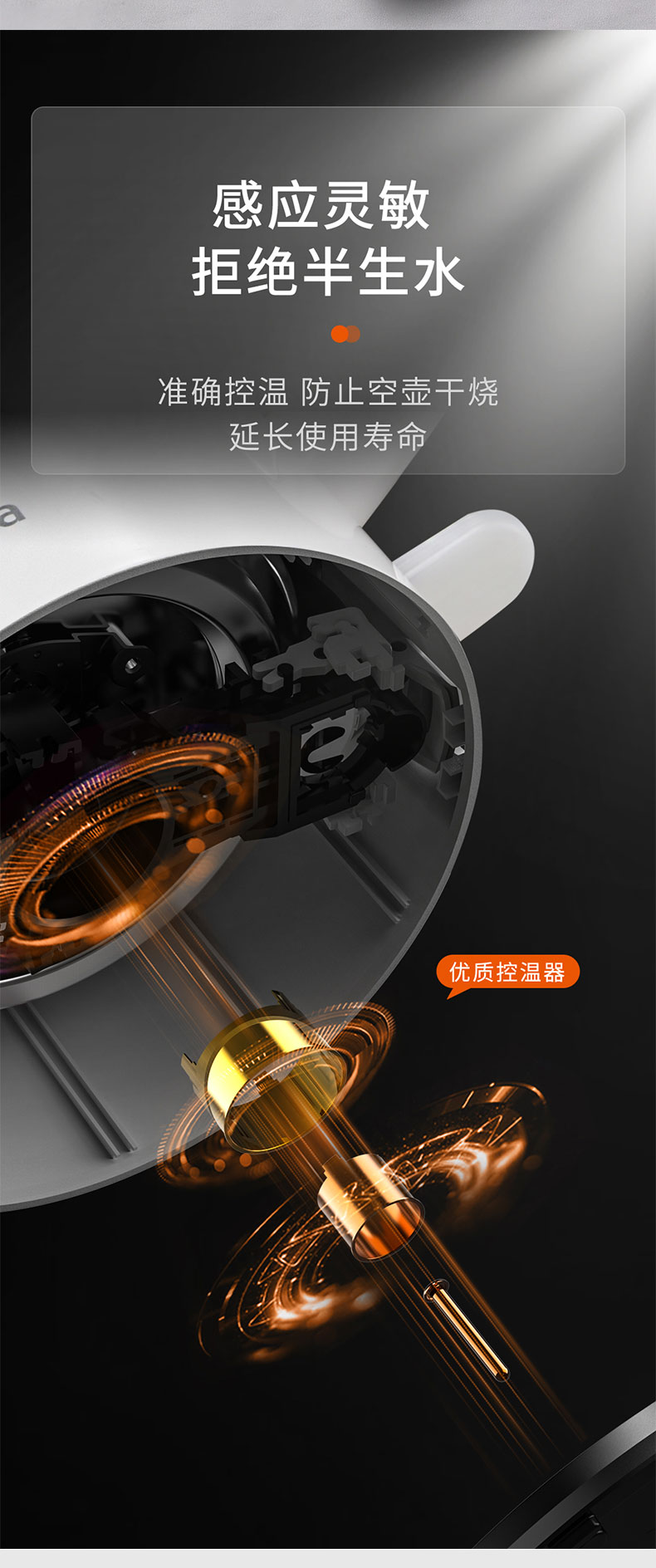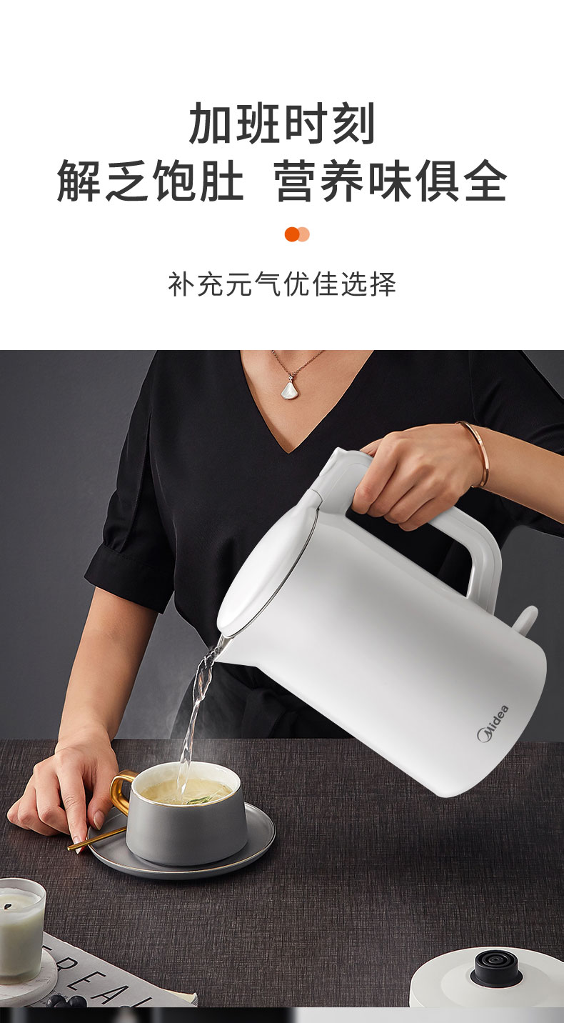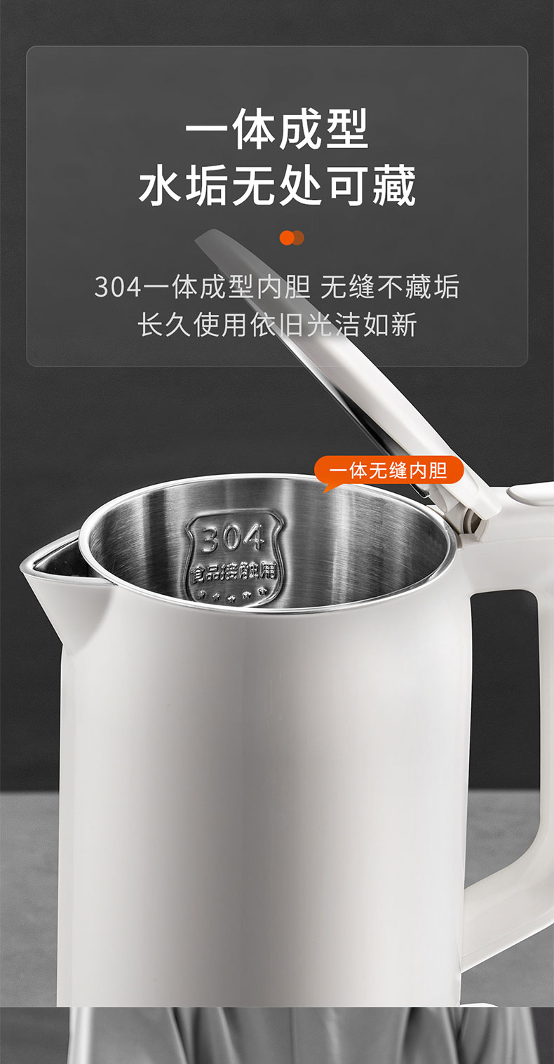 美的(Midea)电热水壶 1.7L大容量家用烧水壶双层防烫 304不锈钢水壶AEK1769