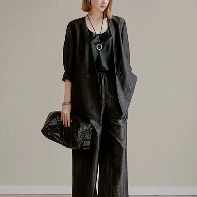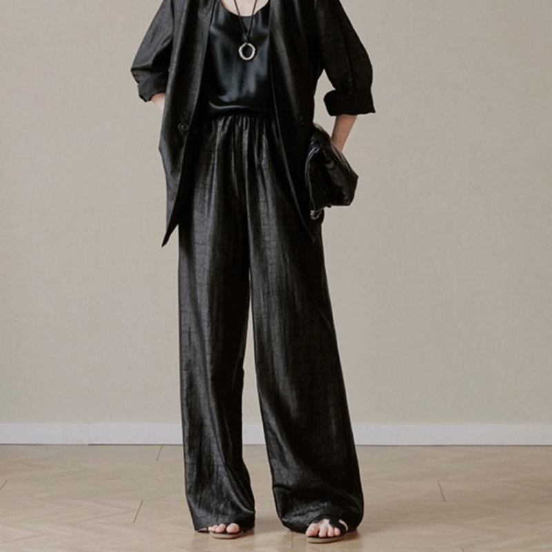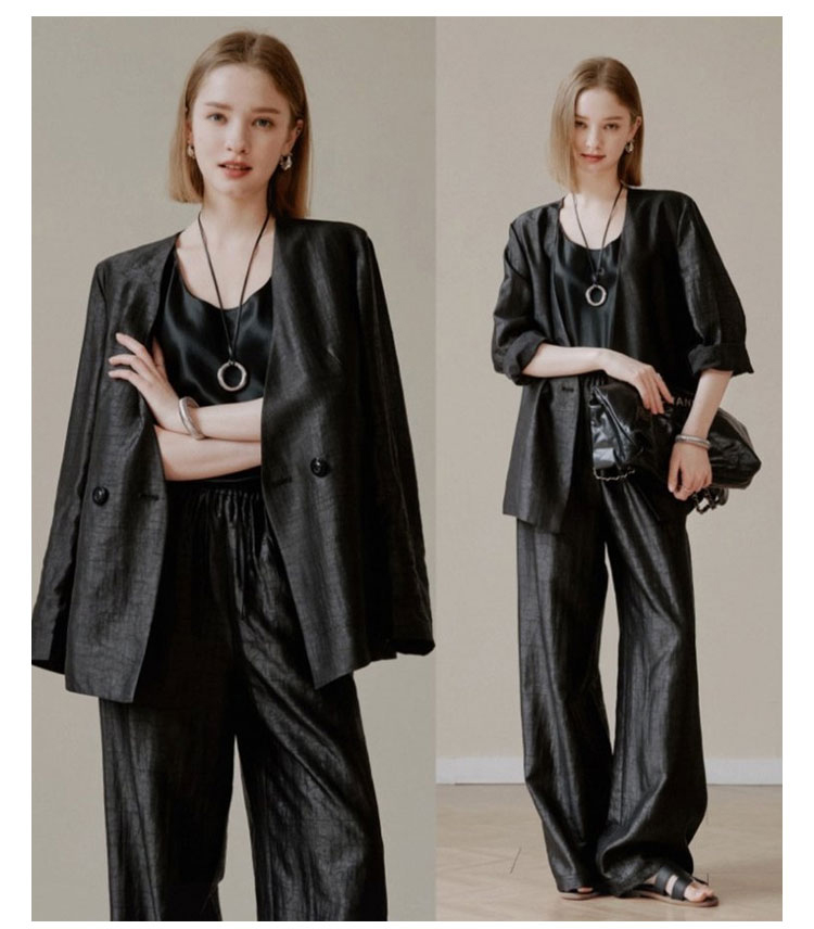 也可以和我们的龟裂纹香云西装、阔腿裤搭成一套。