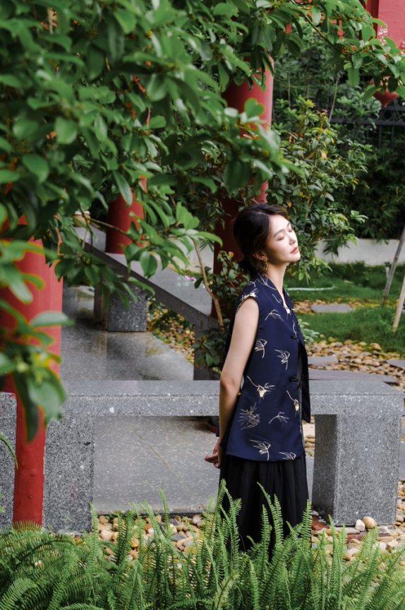 值得一提的是,这款马甲采用了重工西阵织提花工艺,这是国际大牌Chanel、Dior在一些高定款才会定制的面料工艺,带着一丝烟雨江南的婉约素雅。