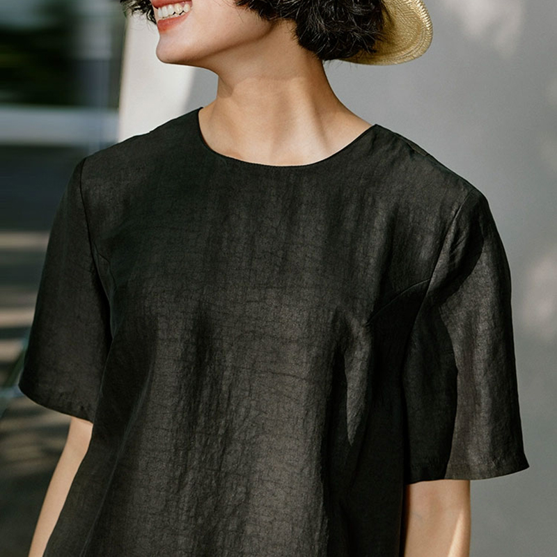 这盛夏美衣,添加了42%的桑蚕丝胚布而成的香云纱,媲美全真丝香云纱,触肤瞬间的凉爽与顺滑感,让人穿着就不想脱下来。