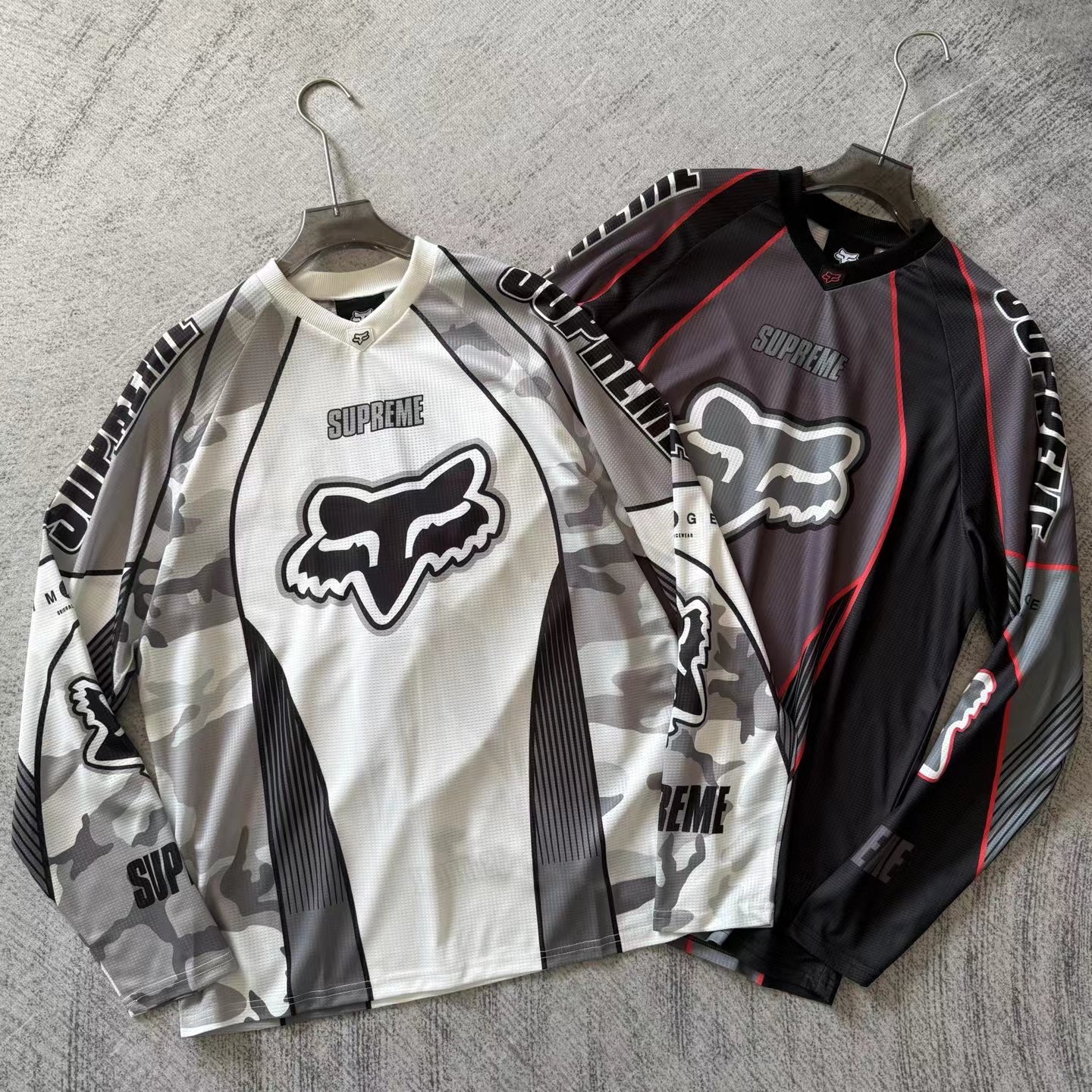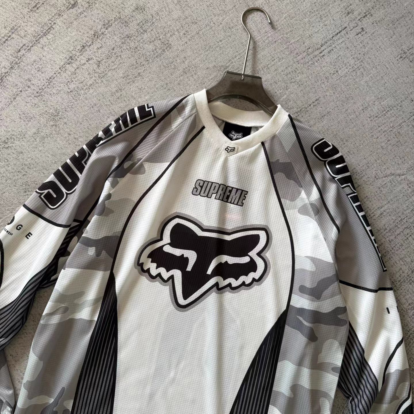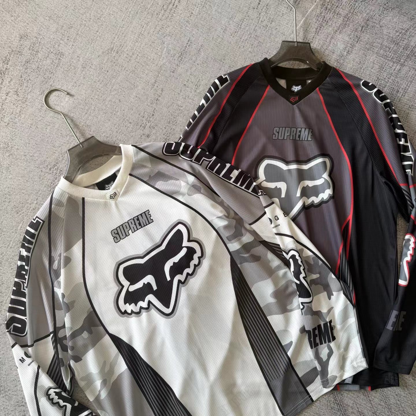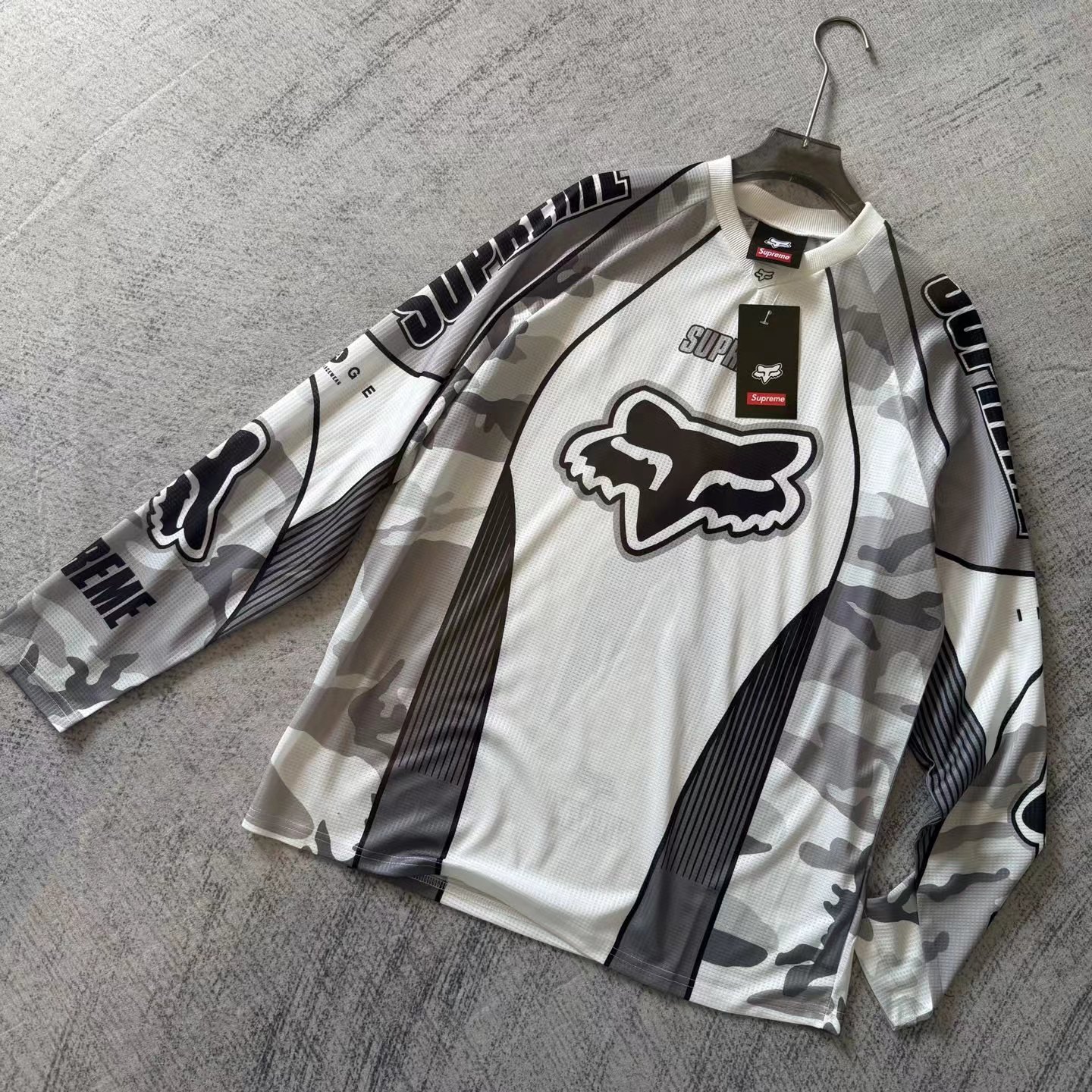 联名款logo印花舒适长袖骑行服 男女同款!主打迷彩+赛车风,速干透气面料超适合运动穿搭!!胸前狐狸Logo+字样,辨识度满分。袖口和下摆拼接条纹,层次感up,机能感十足!无论赛车还是街头风都能轻松驾驭,潮流与功能兼备,潮人b备单品~这种联名不用过多介绍,懂得都懂!