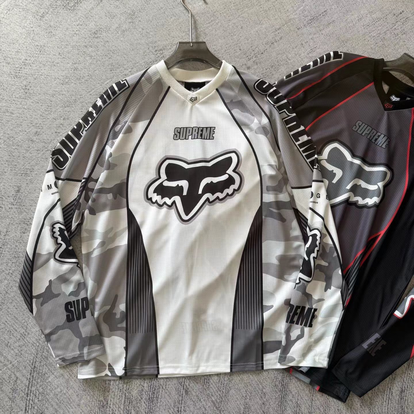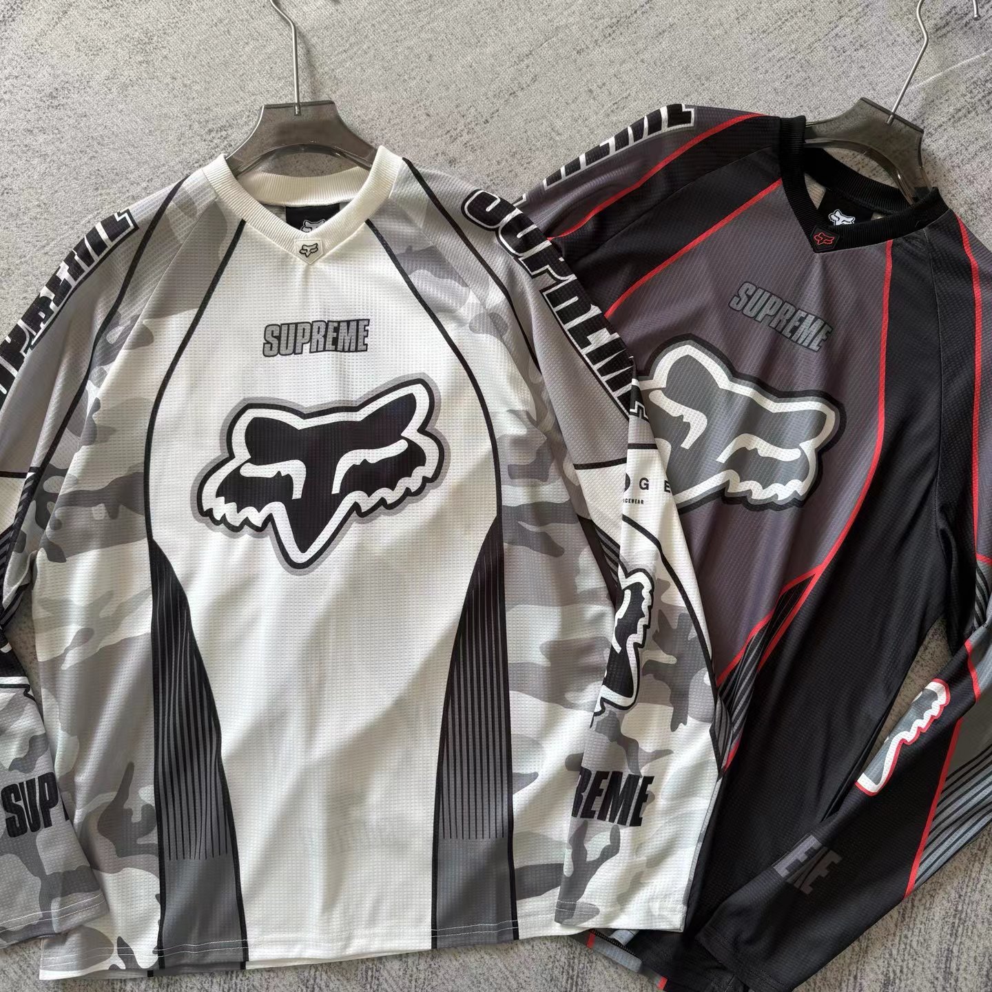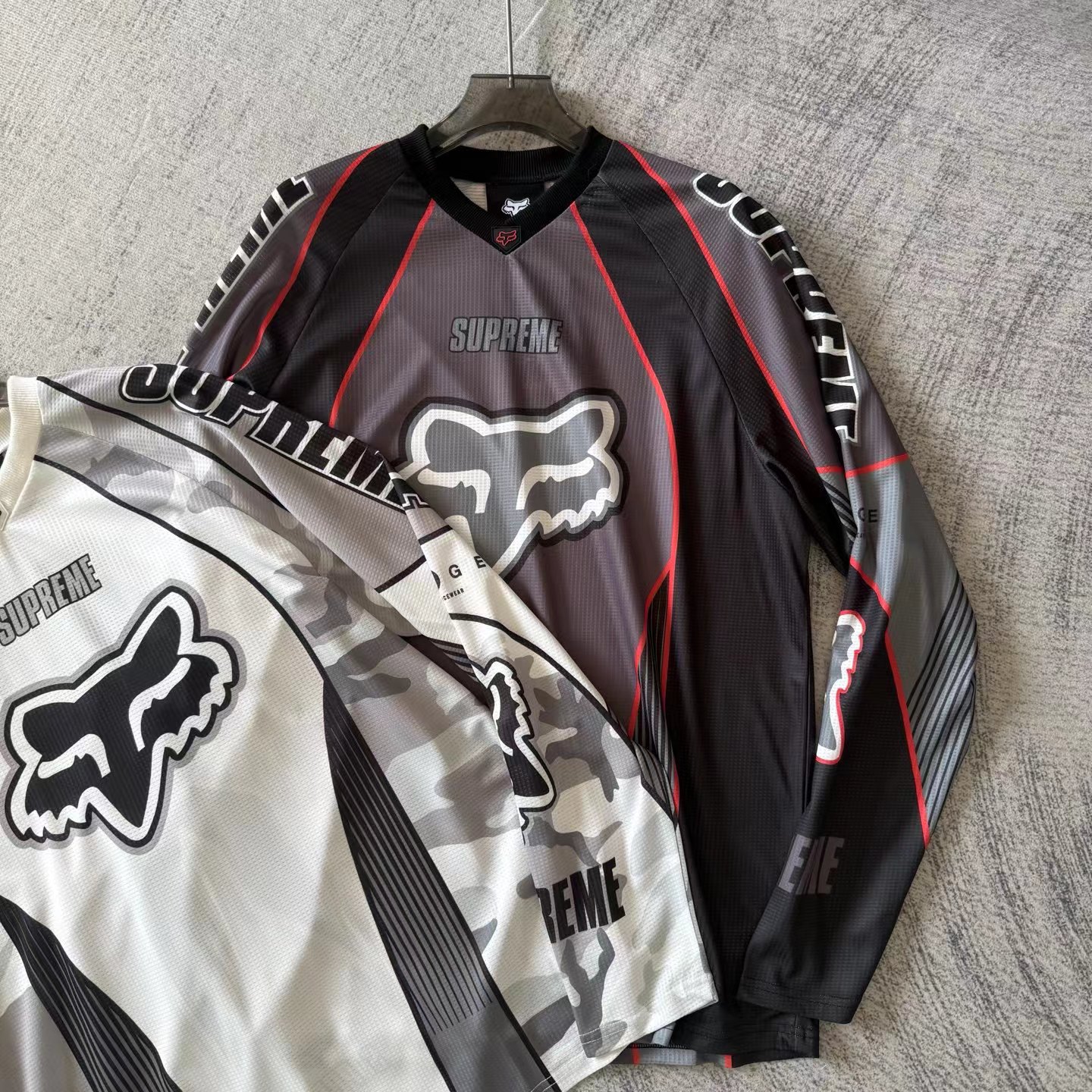 联名款logo印花舒适长袖骑行服 男女同款!主打迷彩+赛车风,速干透气面料超适合运动穿搭!!胸前狐狸Logo+字样,辨识度满分。袖口和下摆拼接条纹,层次感up,机能感十足!无论赛车还是街头风都能轻松驾驭,潮流与功能兼备,潮人b备单品~这种联名不用过多介绍,懂得都懂!