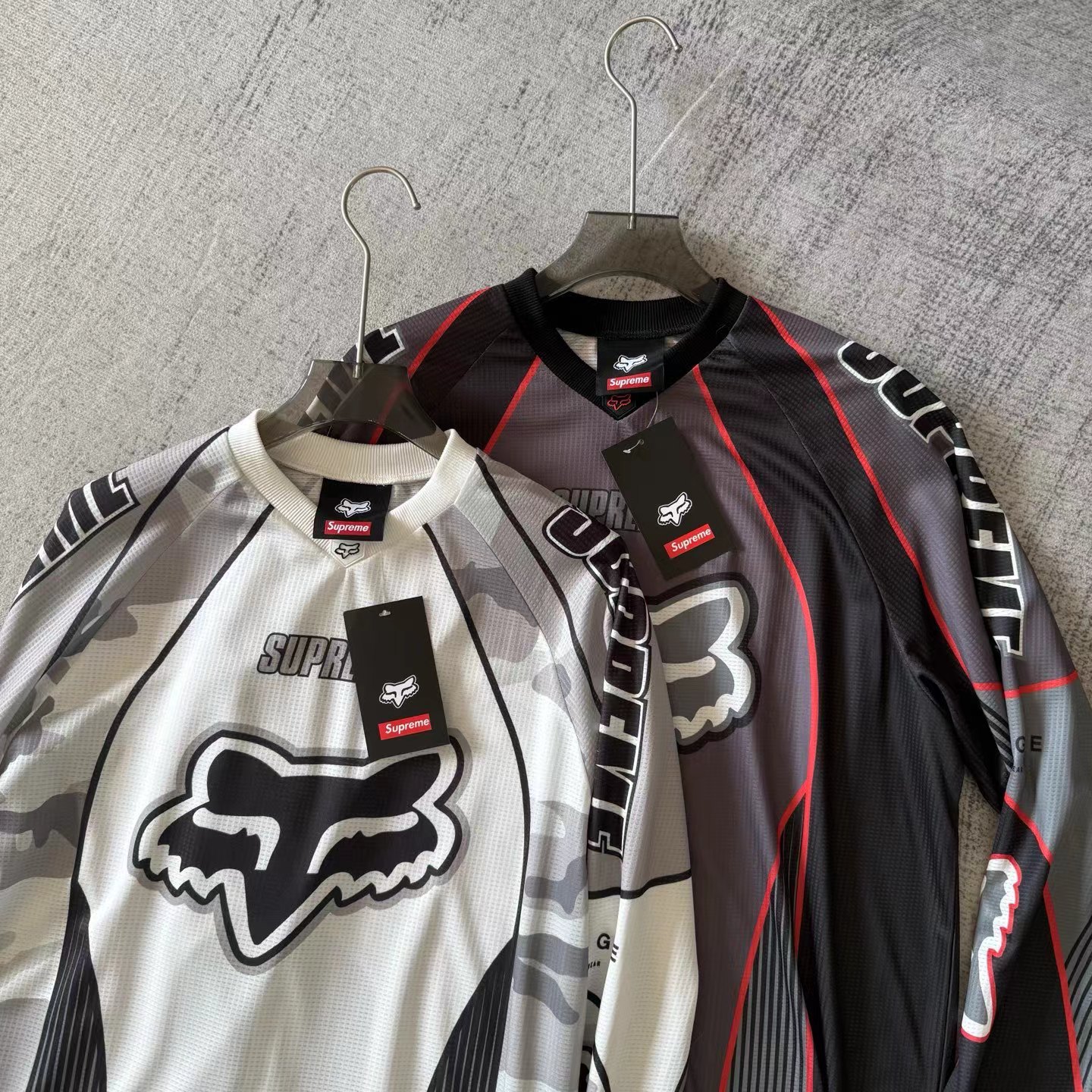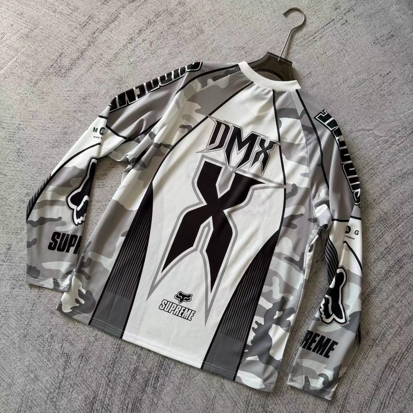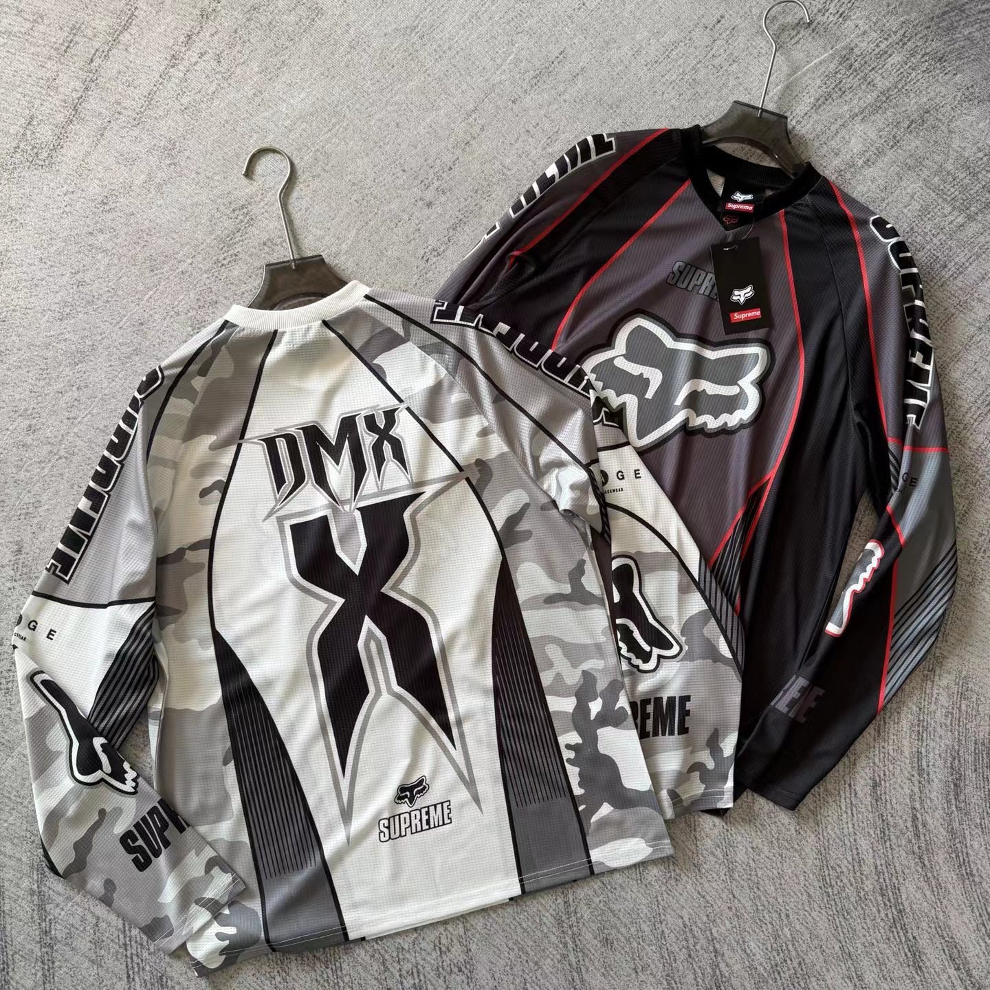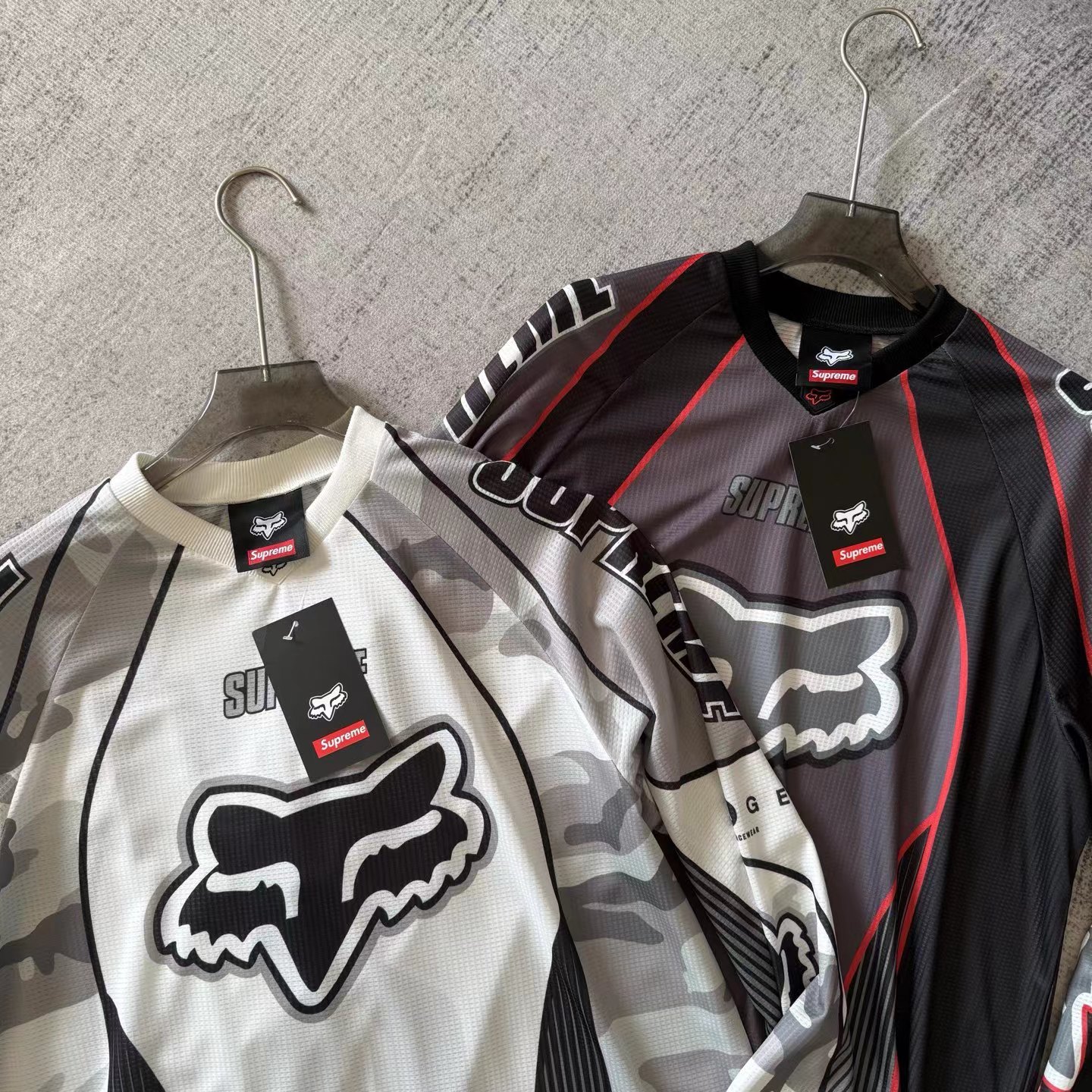 联名款logo印花舒适长袖骑行服 男女同款!主打迷彩+赛车风,速干透气面料超适合运动穿搭!!胸前狐狸Logo+字样,辨识度满分。袖口和下摆拼接条纹,层次感up,机能感十足!无论赛车还是街头风都能轻松驾驭,潮流与功能兼备,潮人b备单品~这种联名不用过多介绍,懂得都懂!