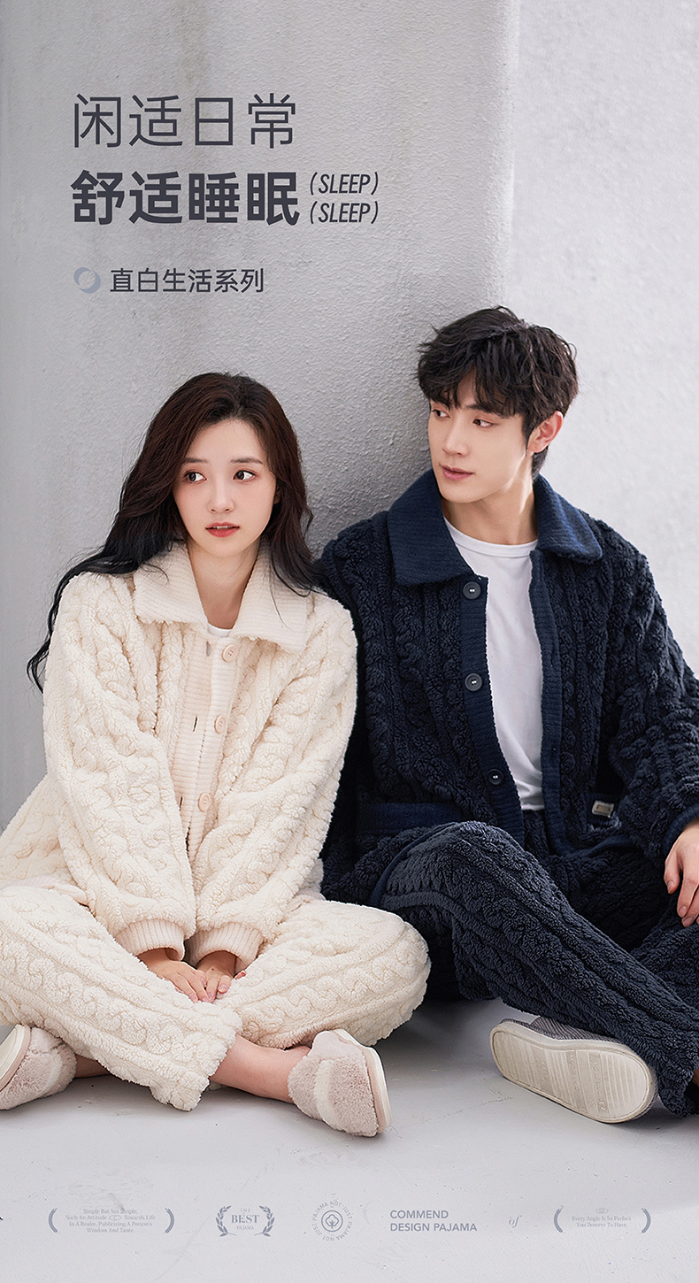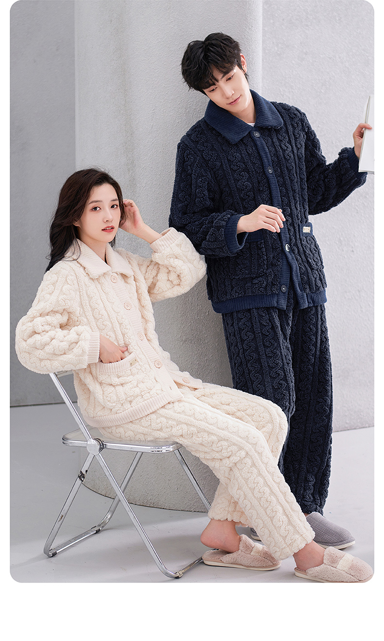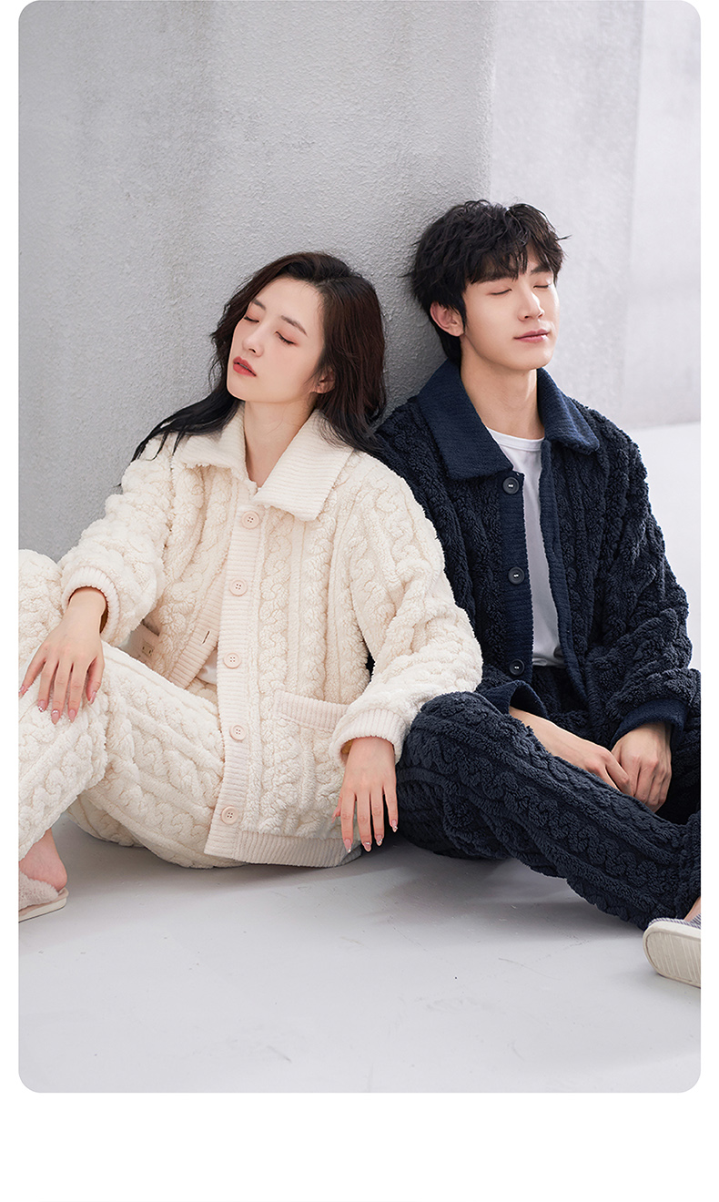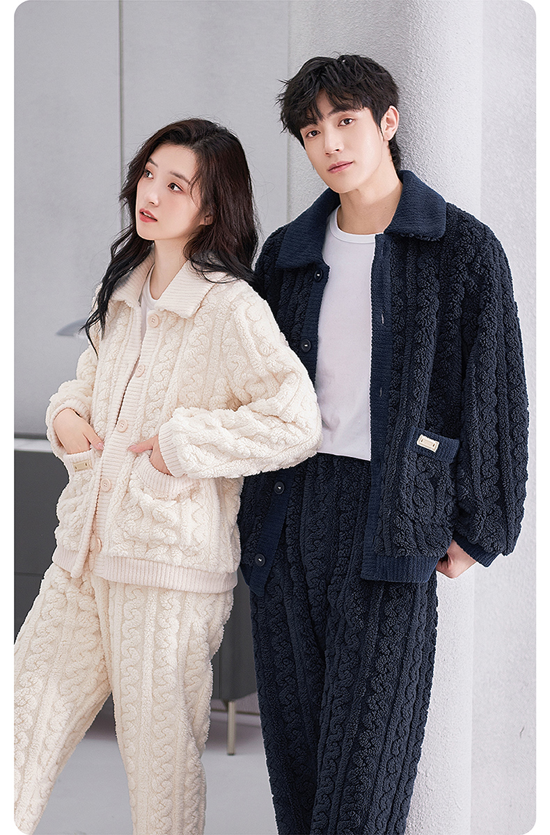 <有书独家>芬腾珊瑚绒睡衣冬秋冬情侣款超加厚加绒保暖套装冬天泡泡绒家居服