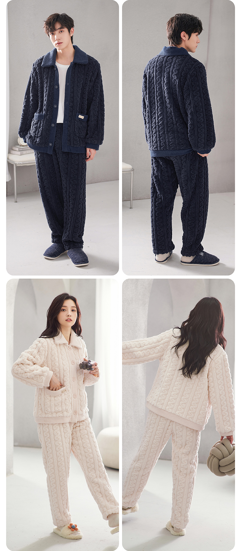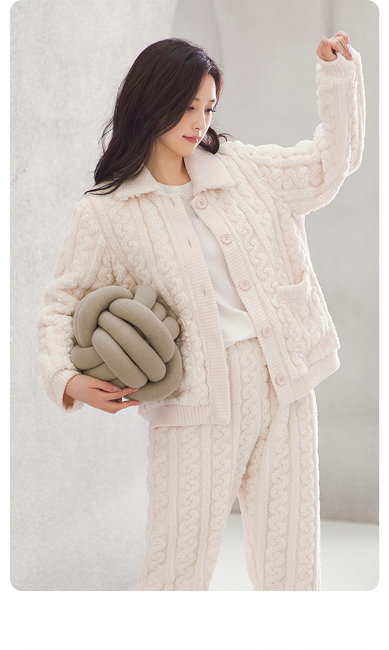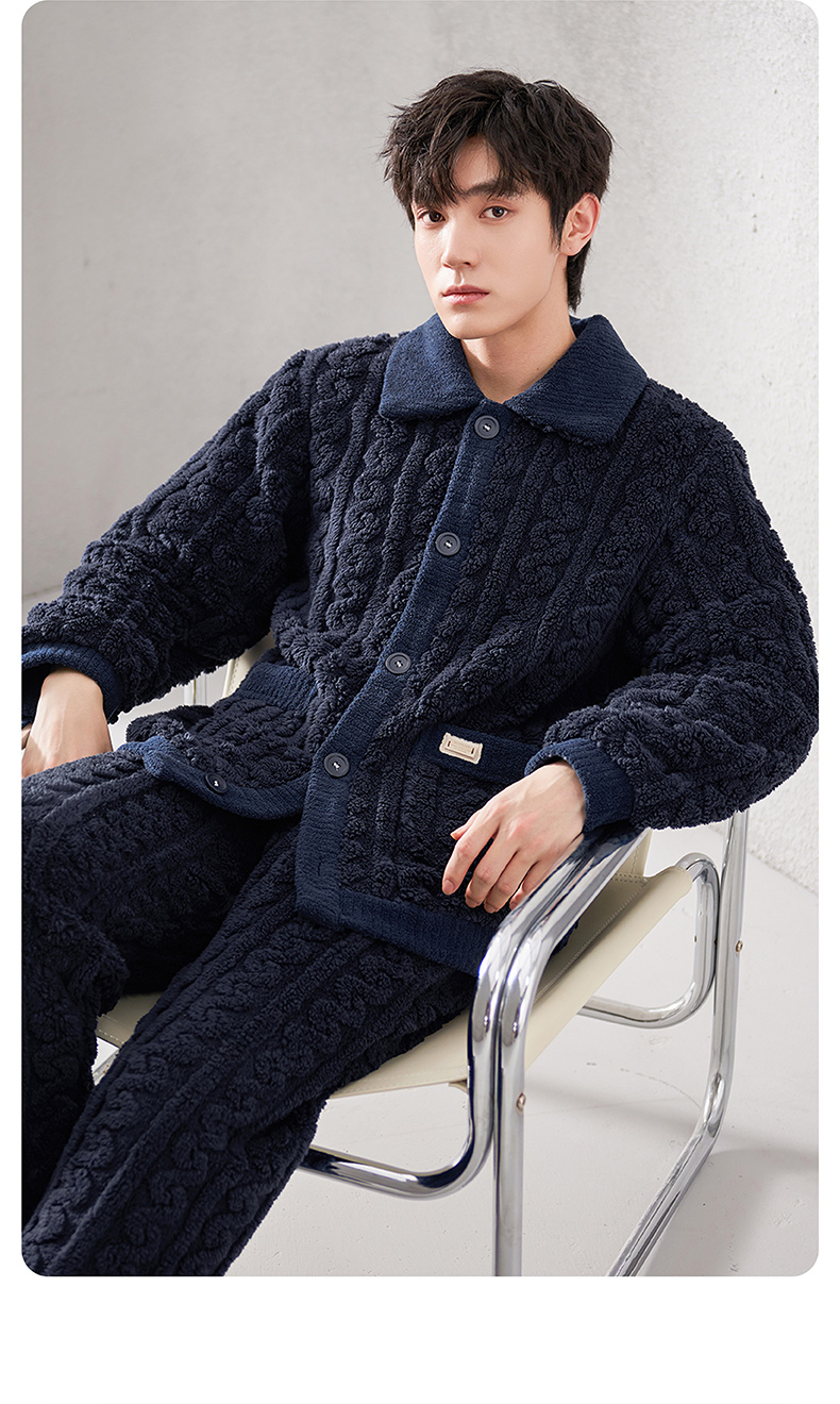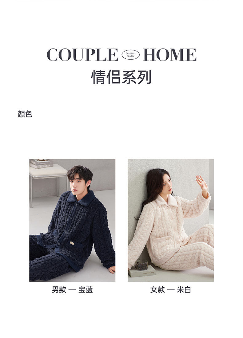 <有书独家>芬腾珊瑚绒睡衣冬秋冬情侣款超加厚加绒保暖套装冬天泡泡绒家居服
