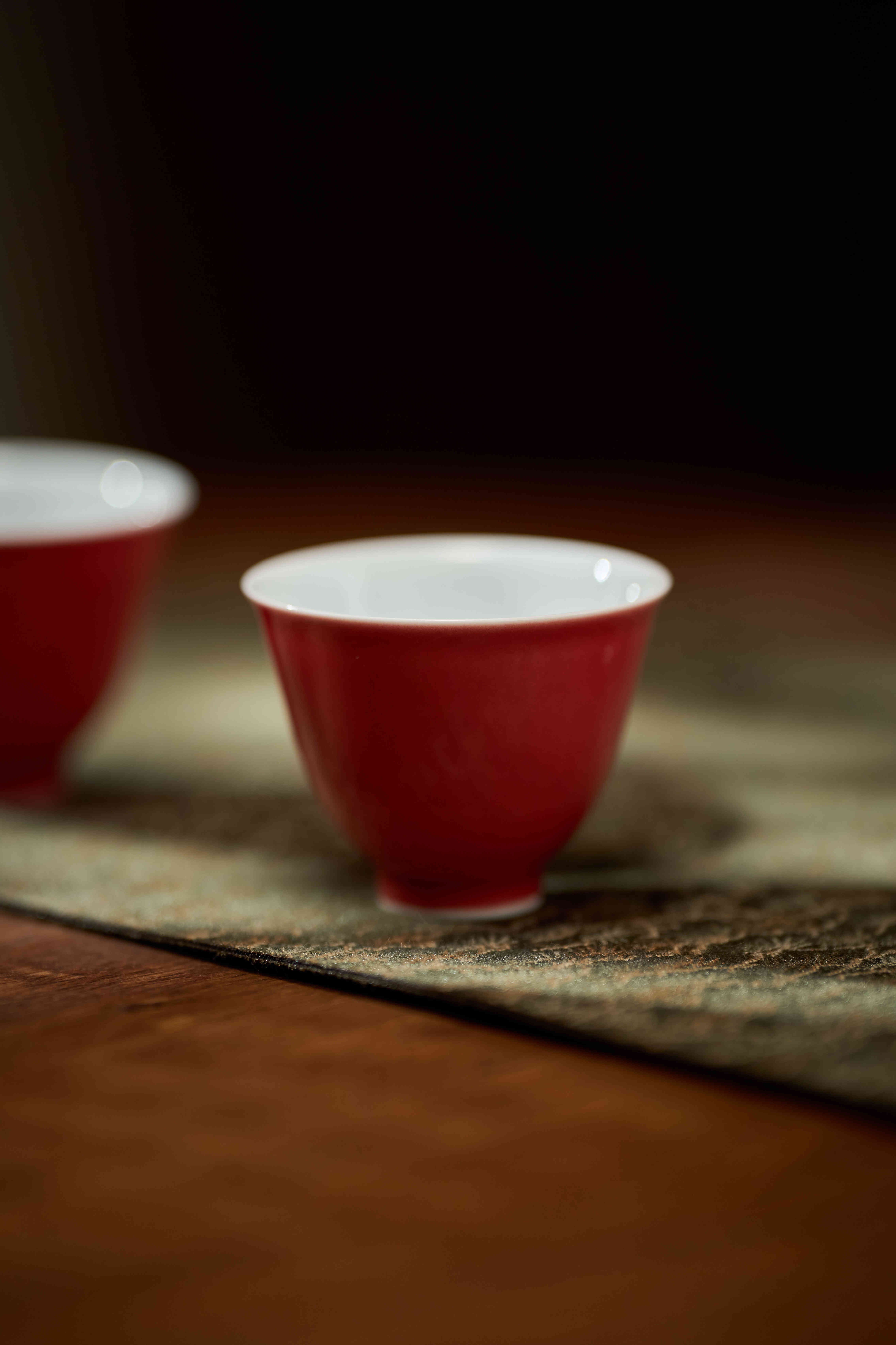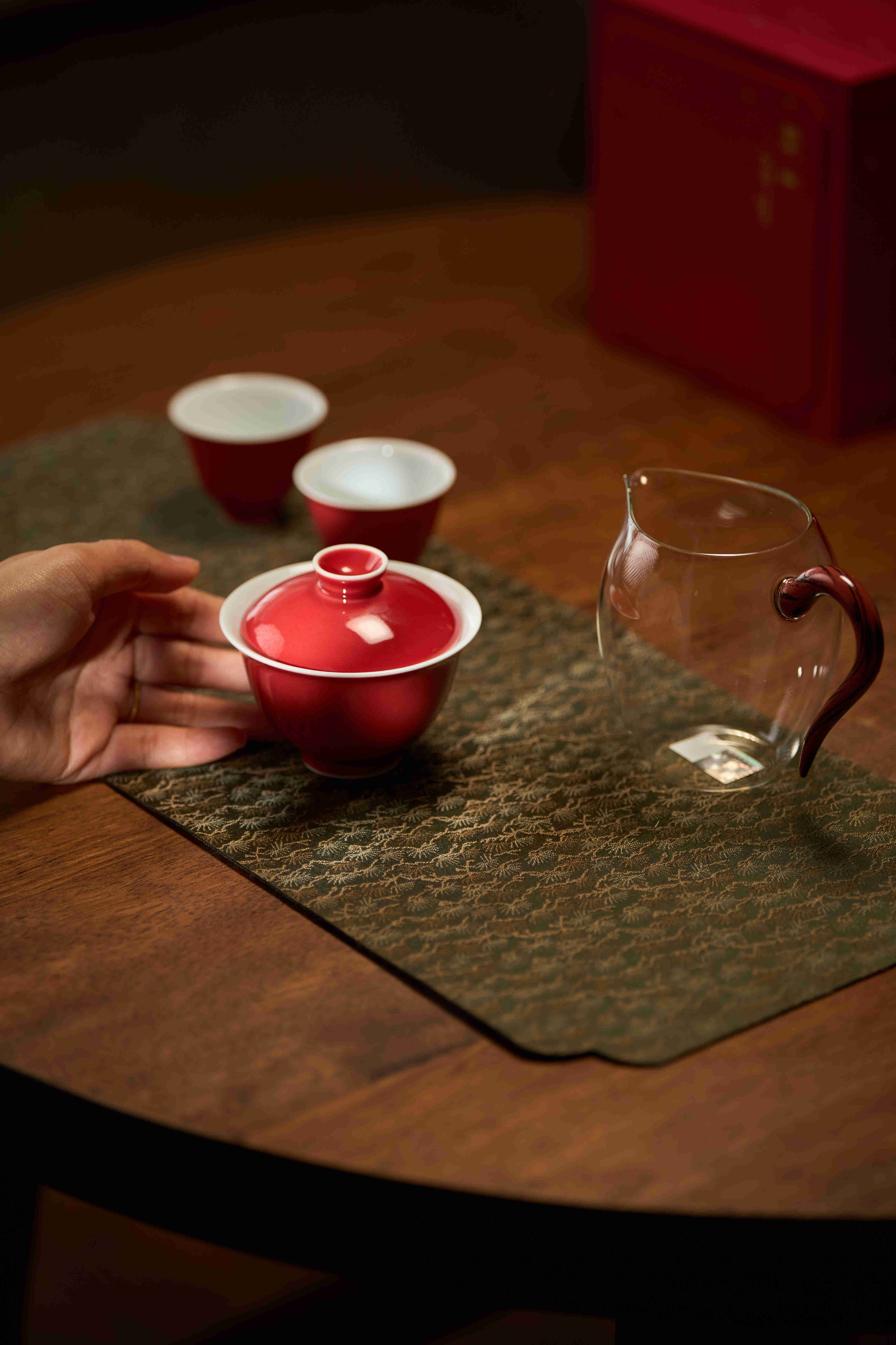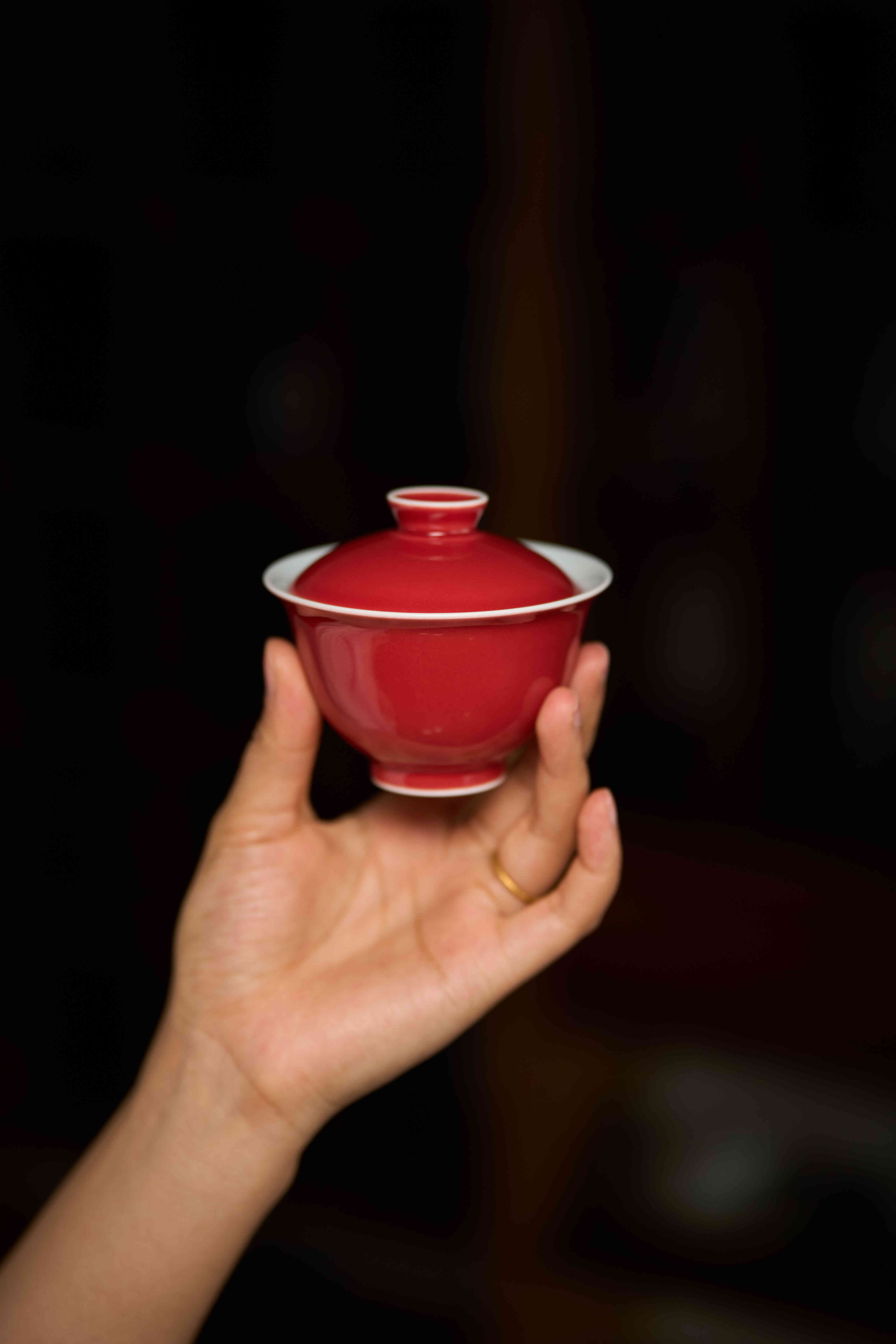 守艺 · 朱砂痣盖碗套组 1盖碗2杯子 景德镇高端茶器 盖碗110ml 杯子:50ml