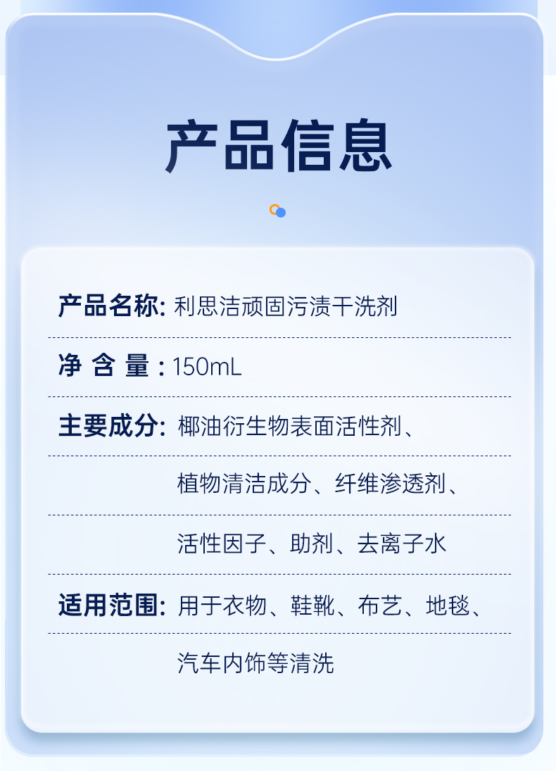 洁芙柔顽固污渍干洗剂150ml衣物免水洗清洁剂沙发油渍去污小白鞋