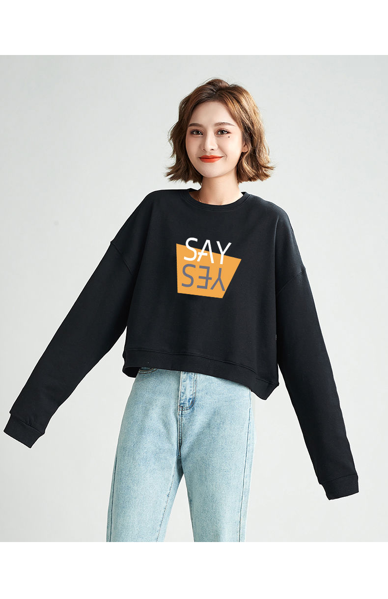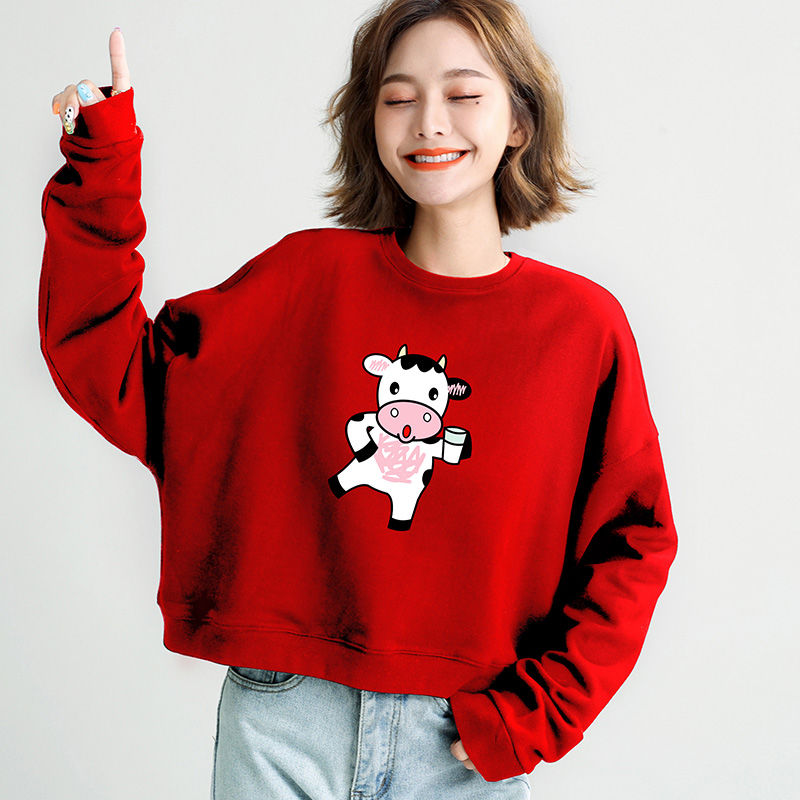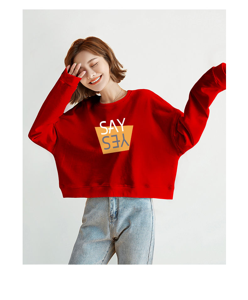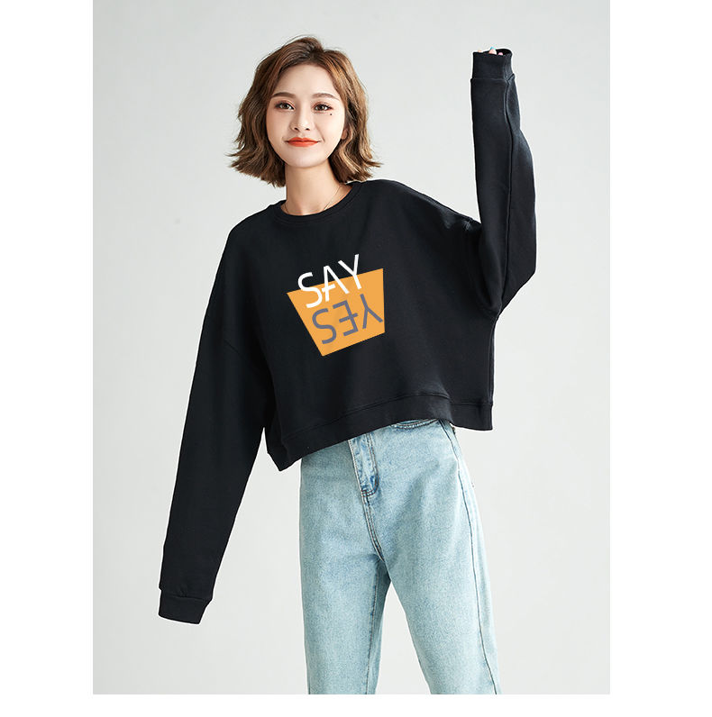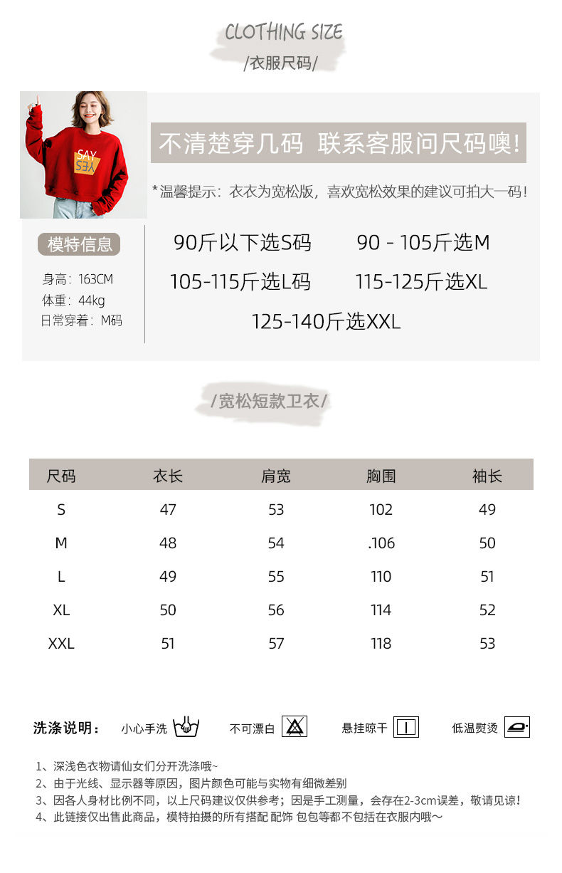 宽松短款卫衣春秋薄款圆领长袖高腰上衣