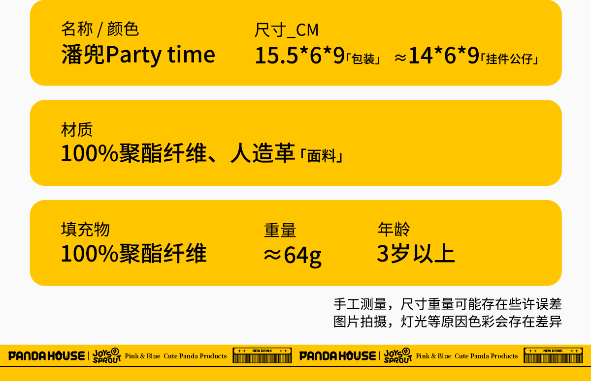 熊猫屋PANDAHOUS 嘟嘟Party time公仔挂件 送纸袋