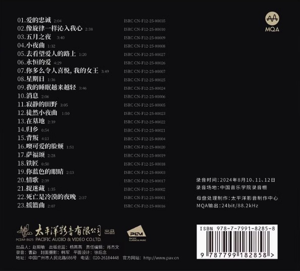 勃拉姆斯艺术歌曲集 彭康亮 MQACD