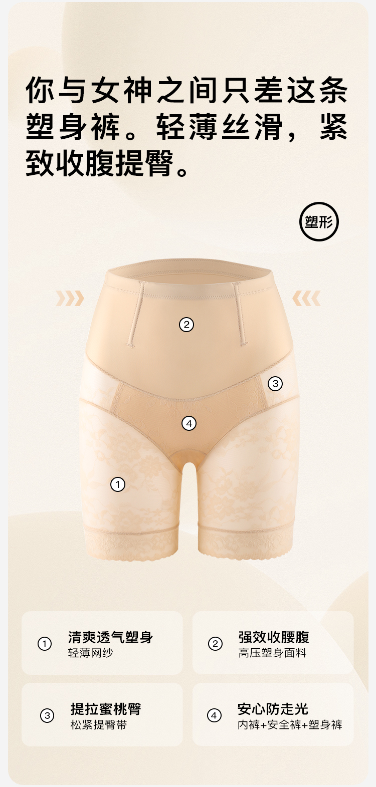 梦芭蒂收腹翘臀轻薄无痕透气高腰塑身裤美体网纱蕾丝安全裤女士玉露流沙塑身裤