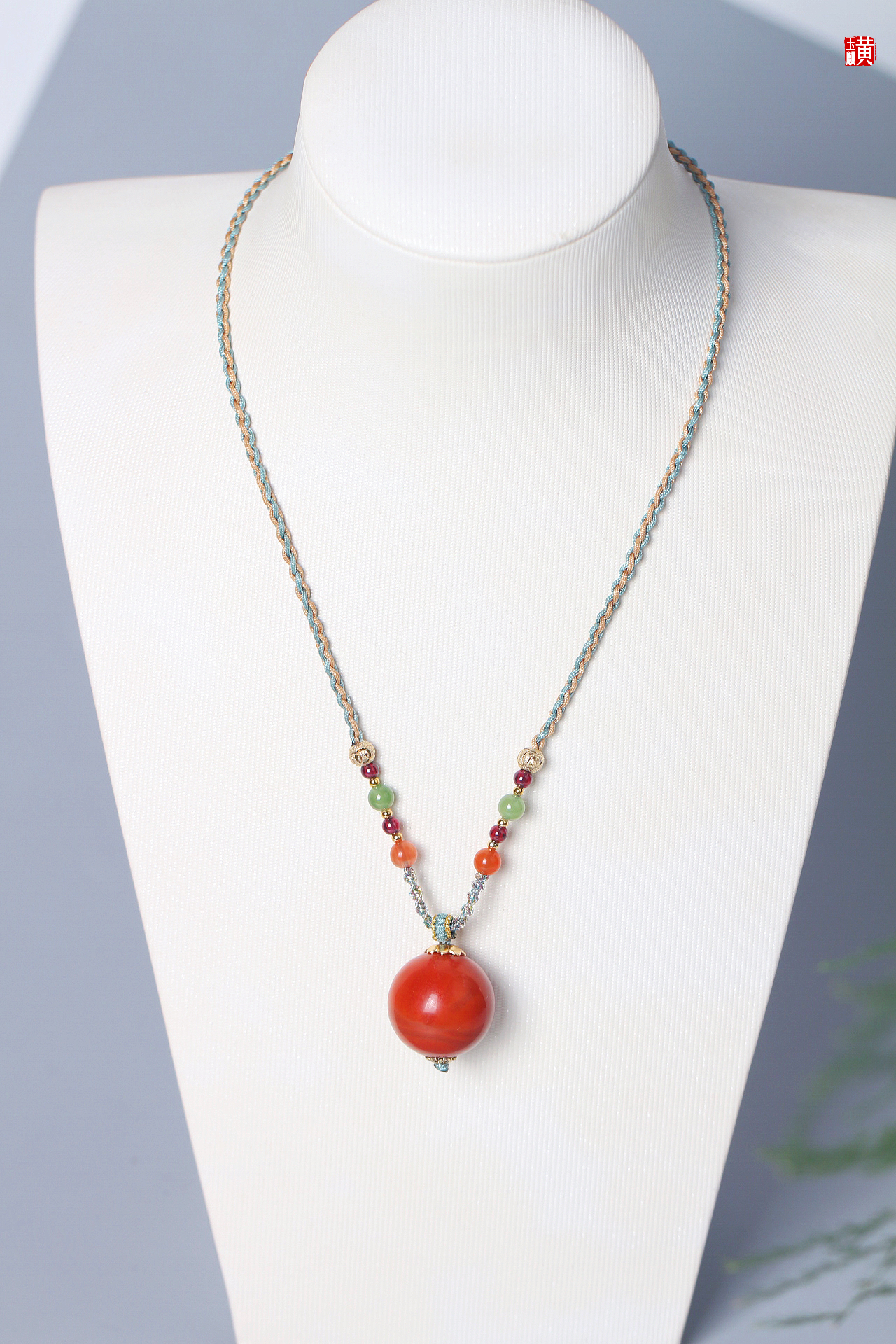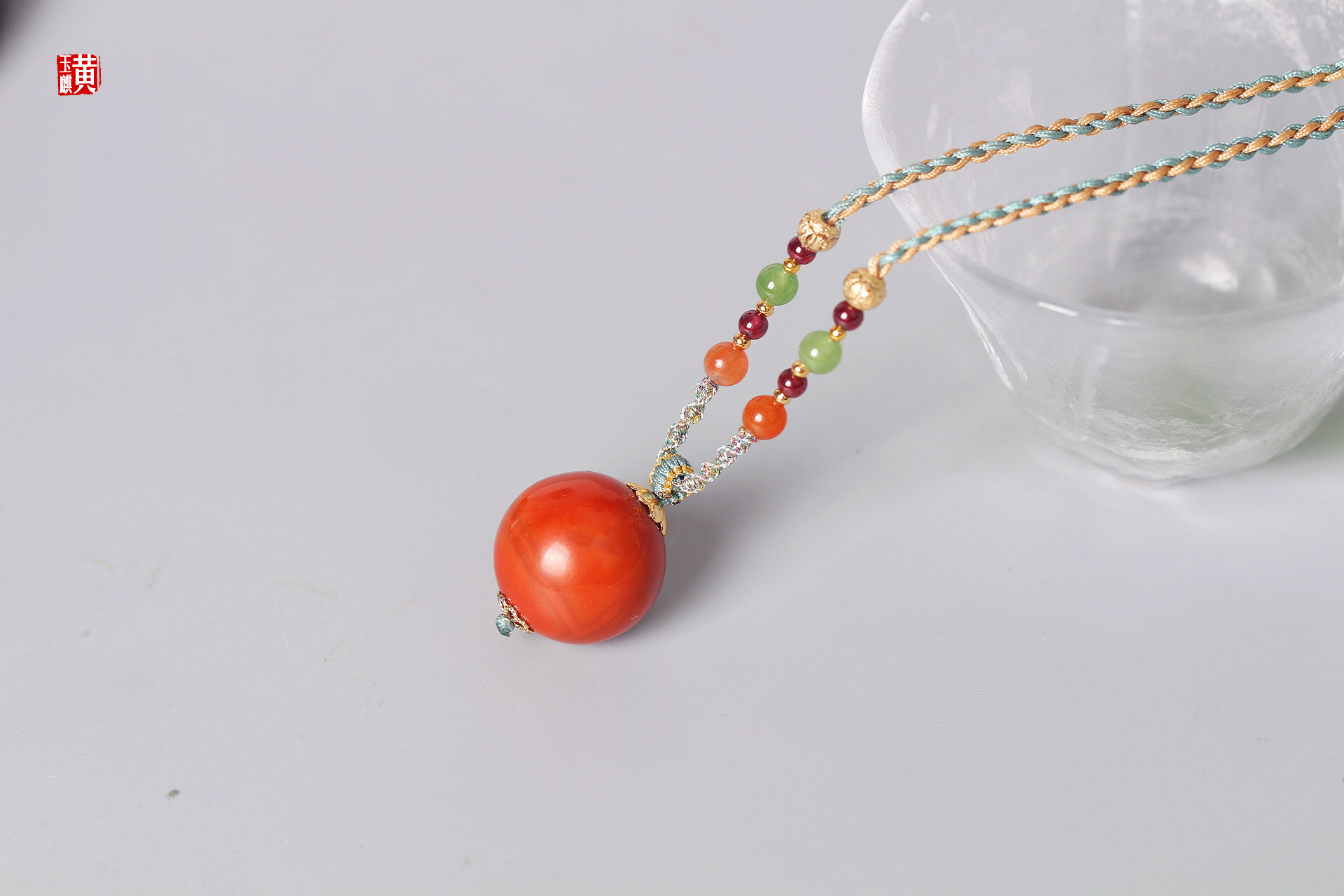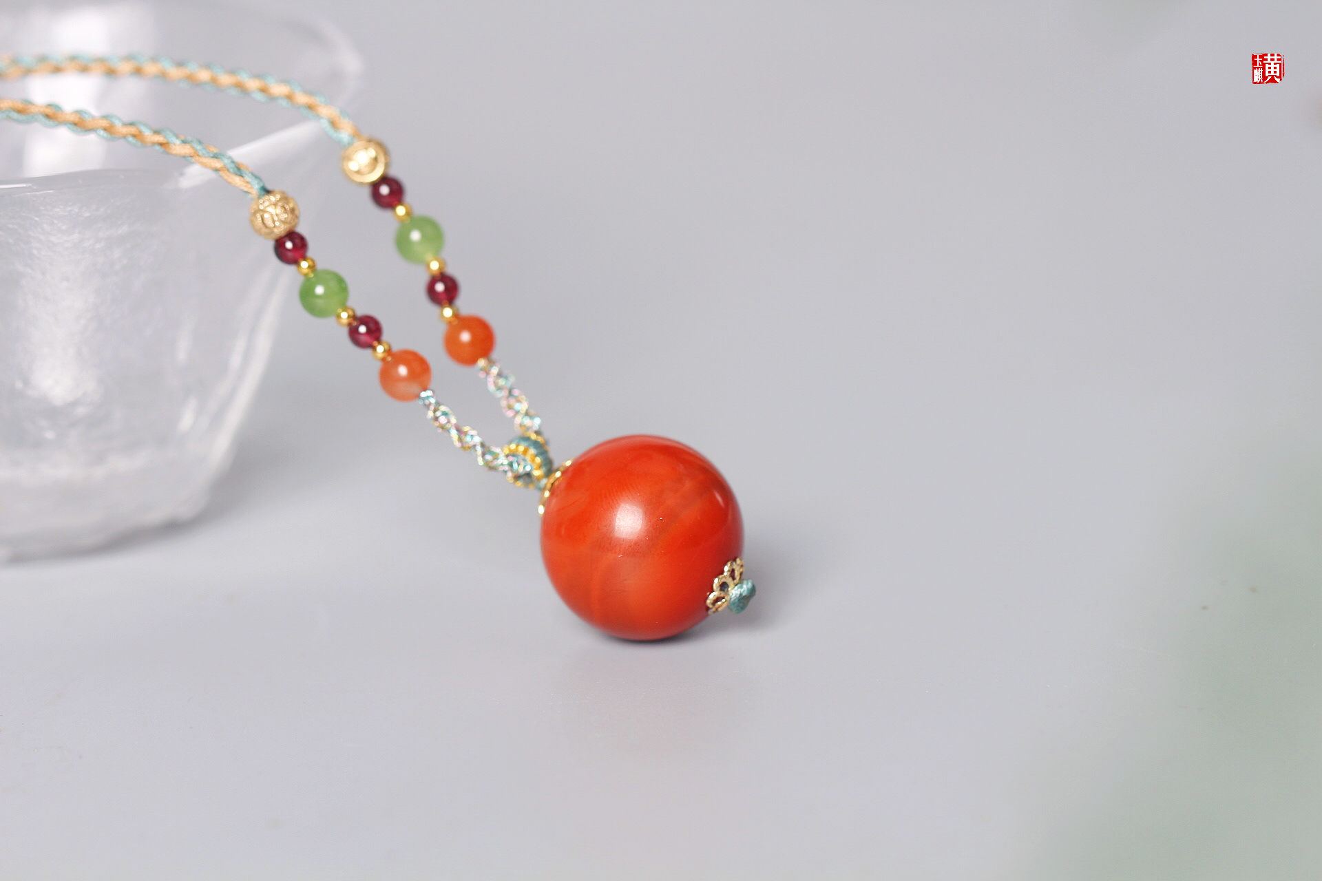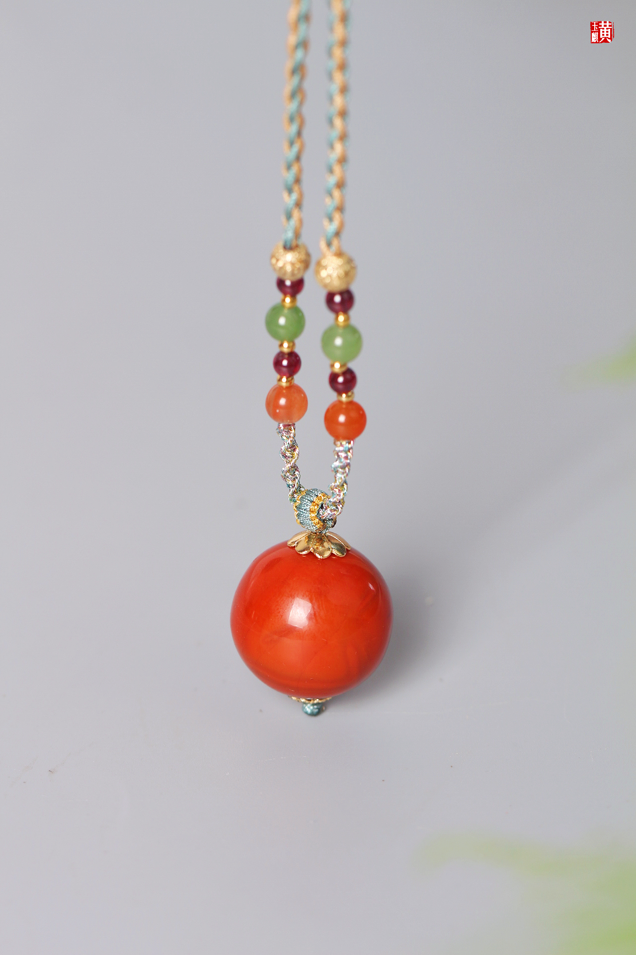 【瑶池映月】南红圆珠项链 配精美挂绳
