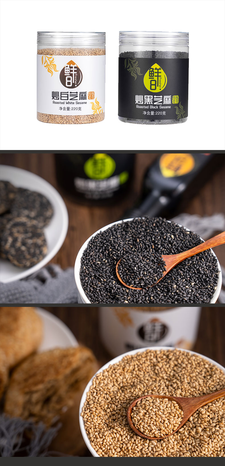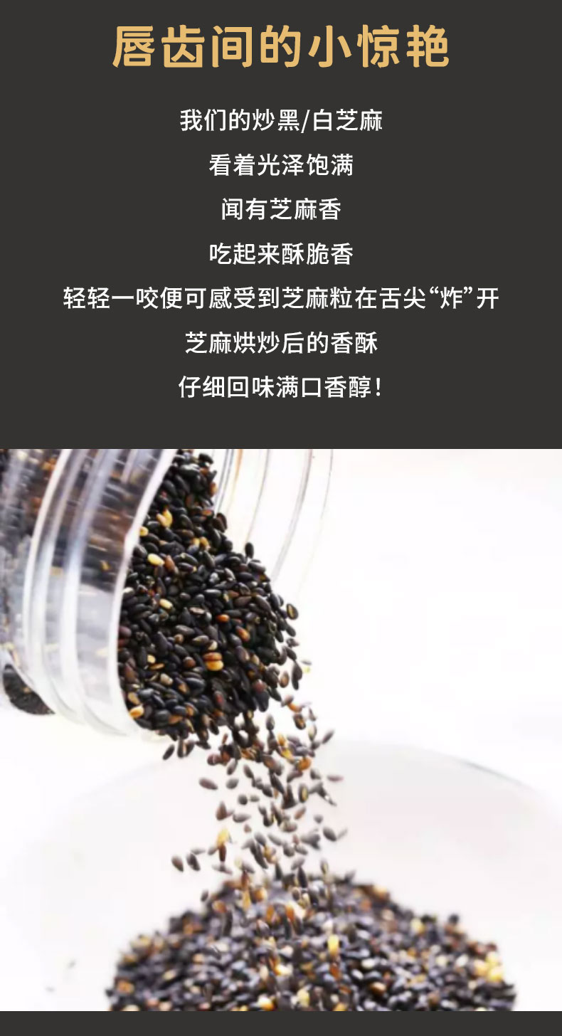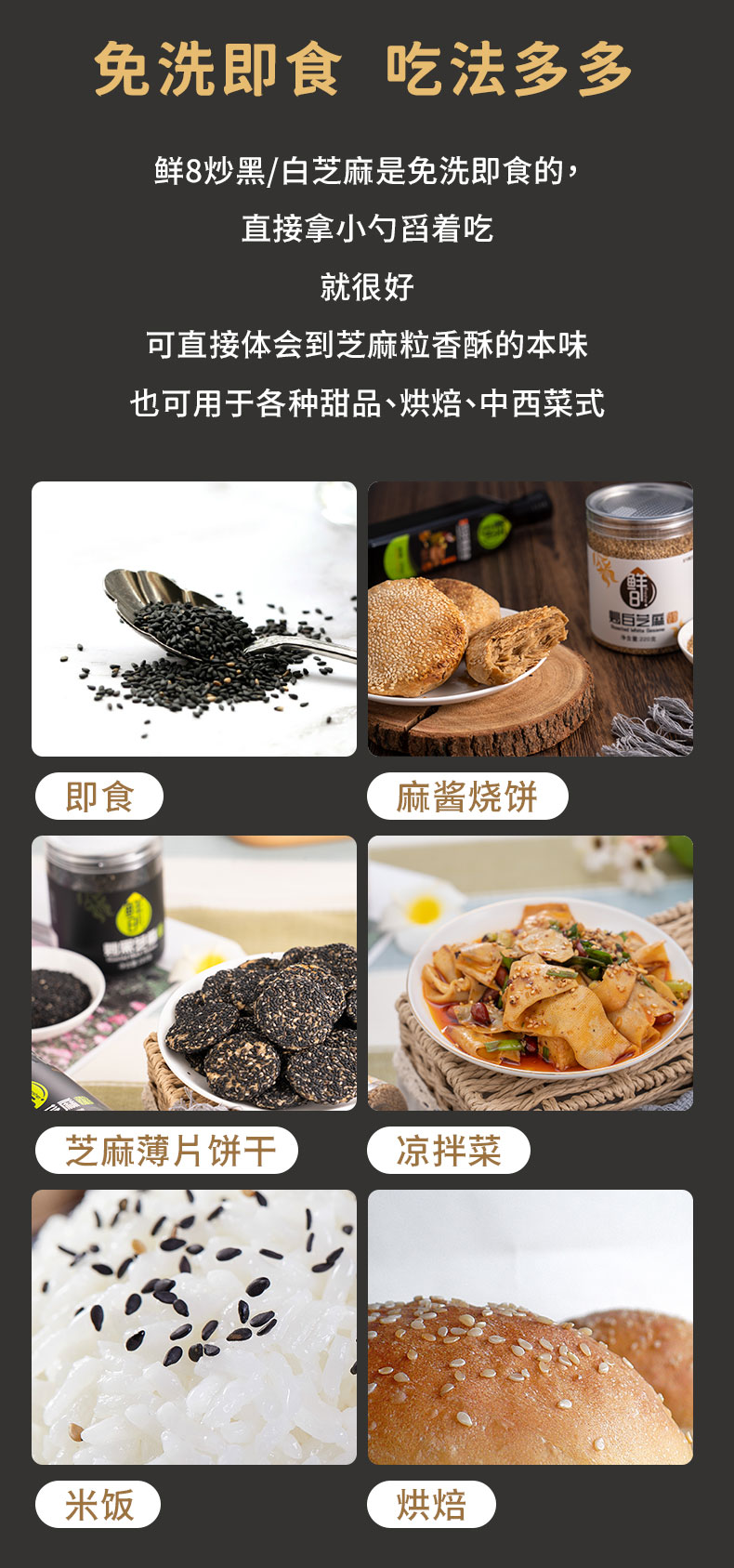 鲜8炒黑芝麻、炒白芝麻220g*2瓶组合,香酥饱满干净