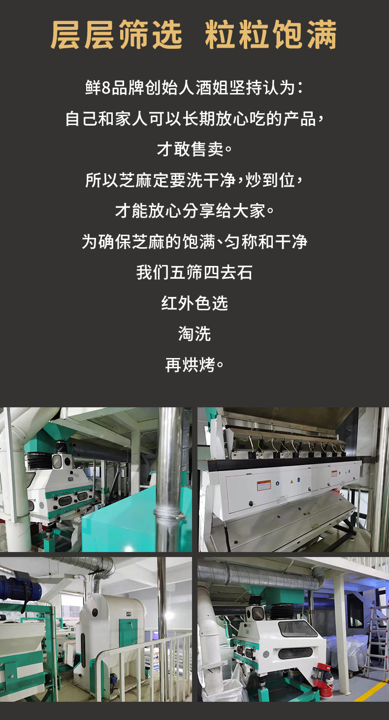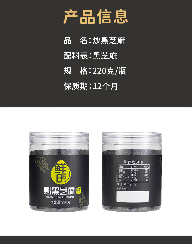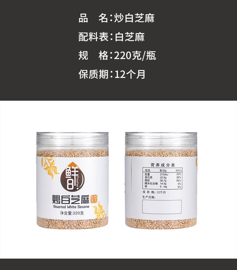 鲜8炒黑芝麻、炒白芝麻220g*2瓶组合,香酥饱满干净