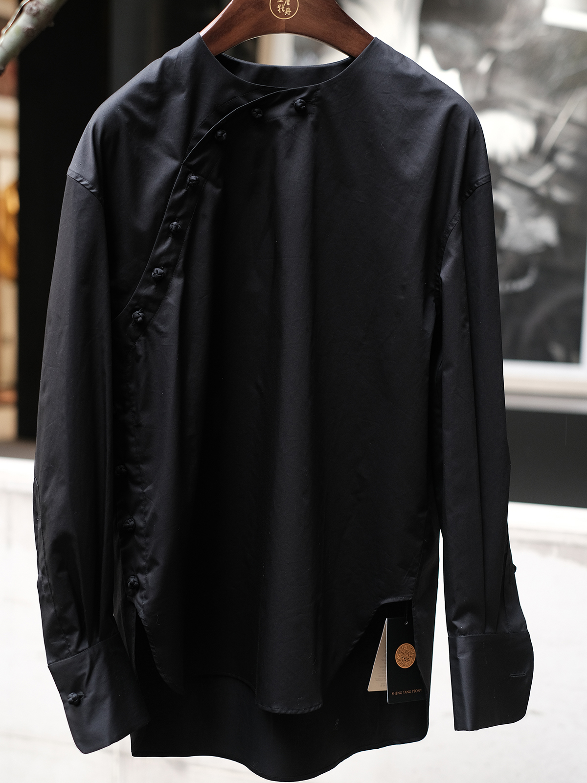 盛唐牡丹|玺越新中式衬衫-黑色