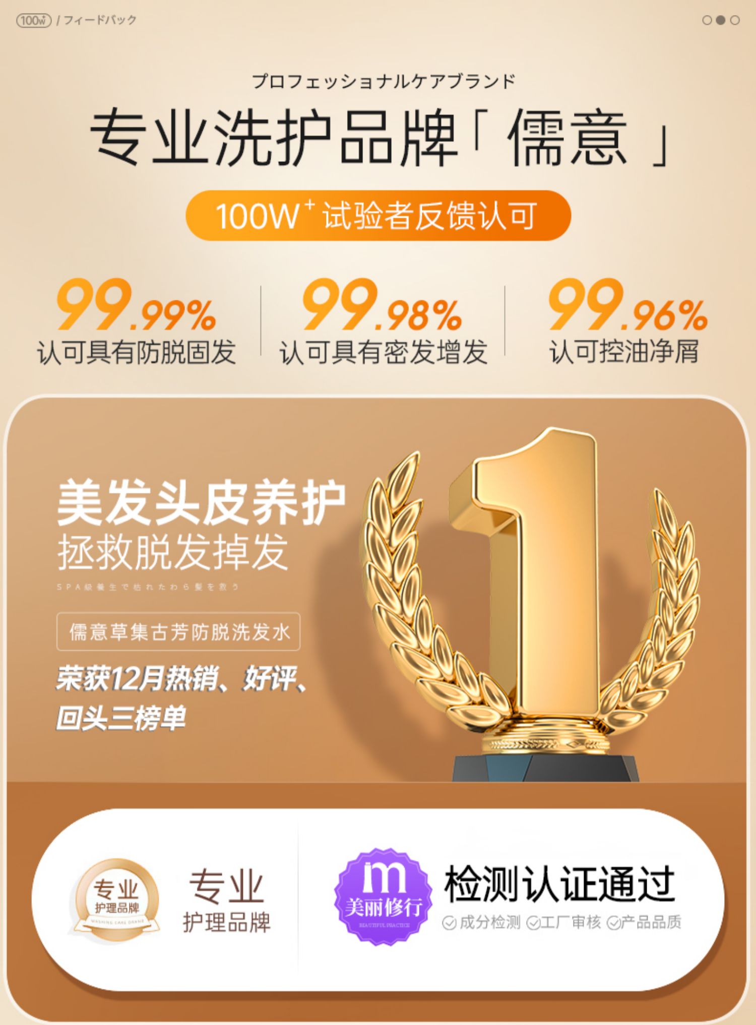 <有书独家>【 3大专利配方】儒意草集古芳防脱发洗发水 固发控油蓬松非增密发洗头膏露