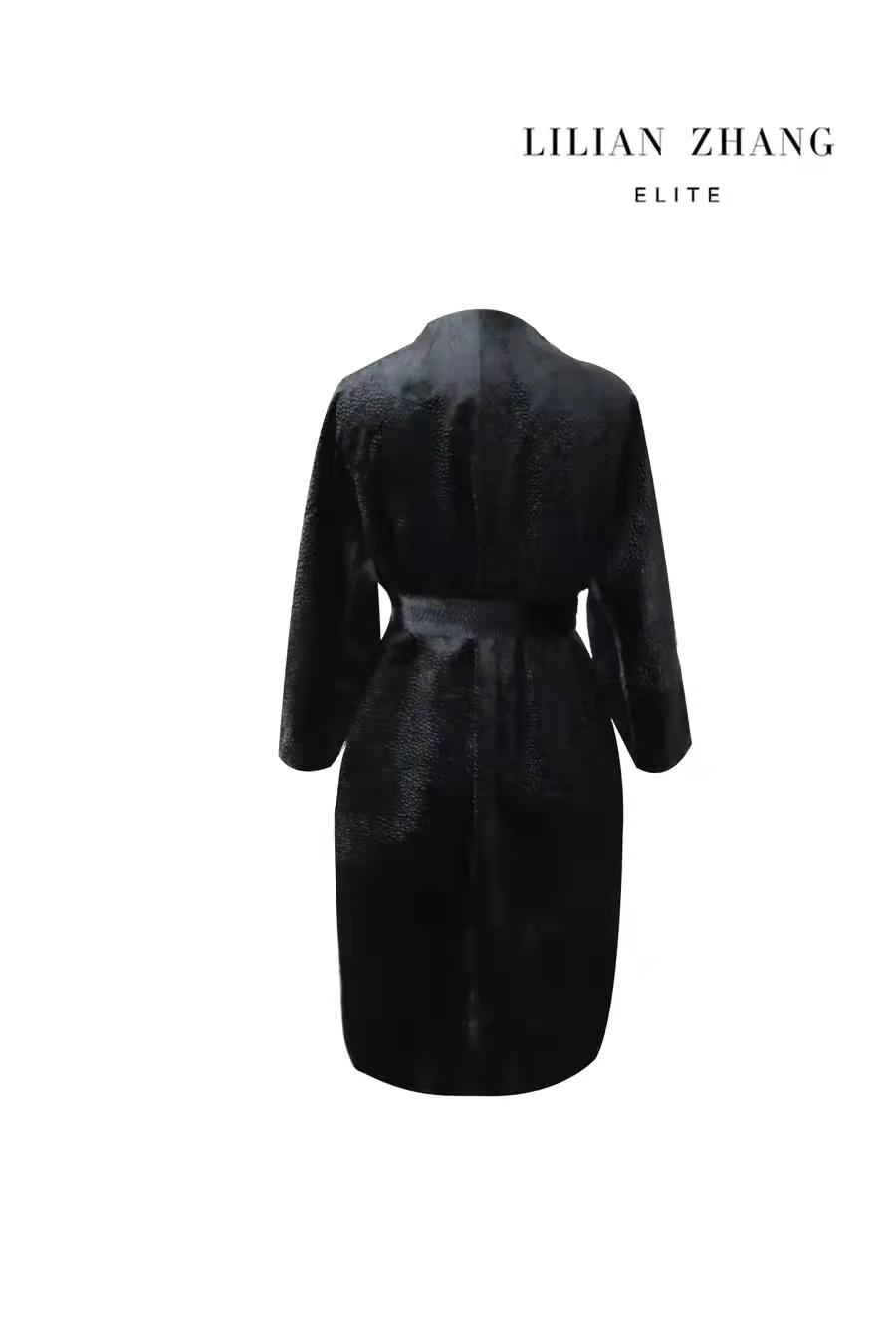 中长款毛绒大衣 - 轻奢百搭通勤宽松系带简约中长款外套 2006010