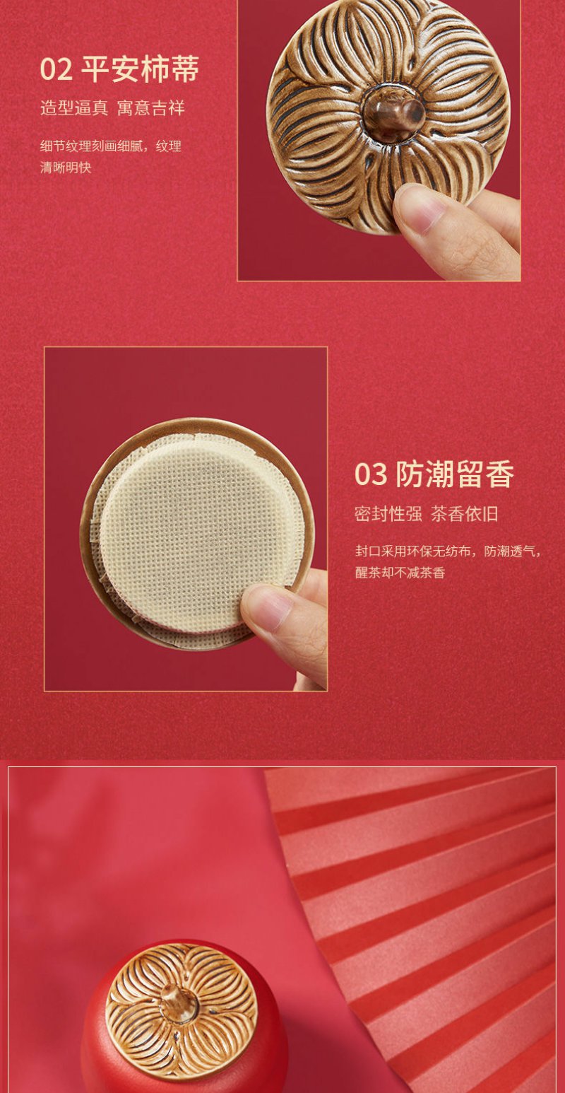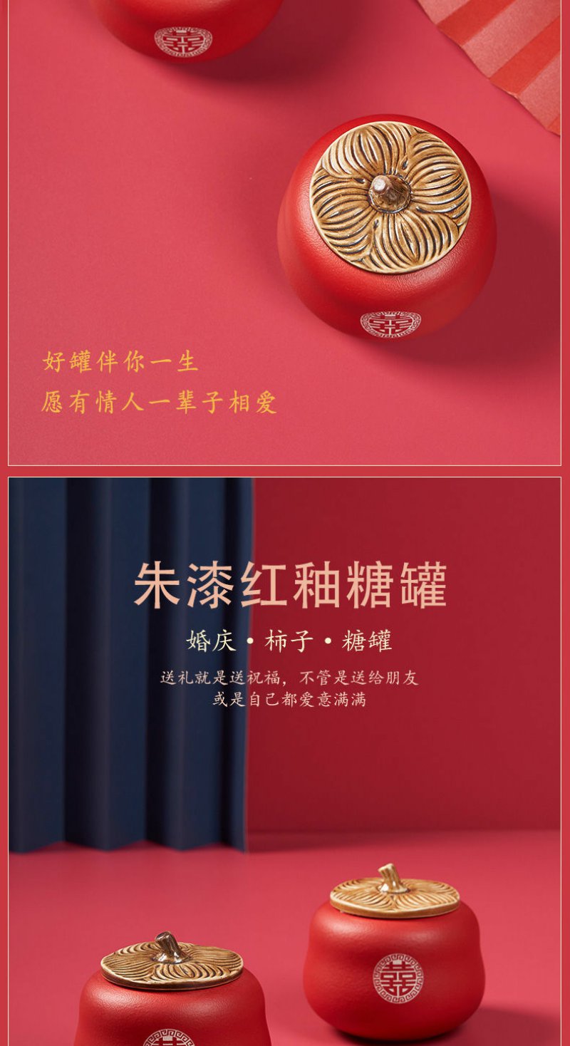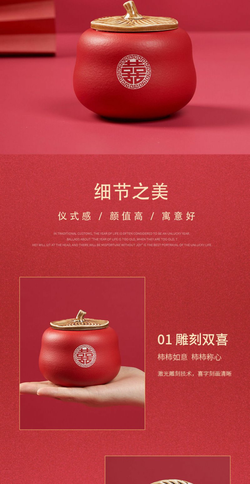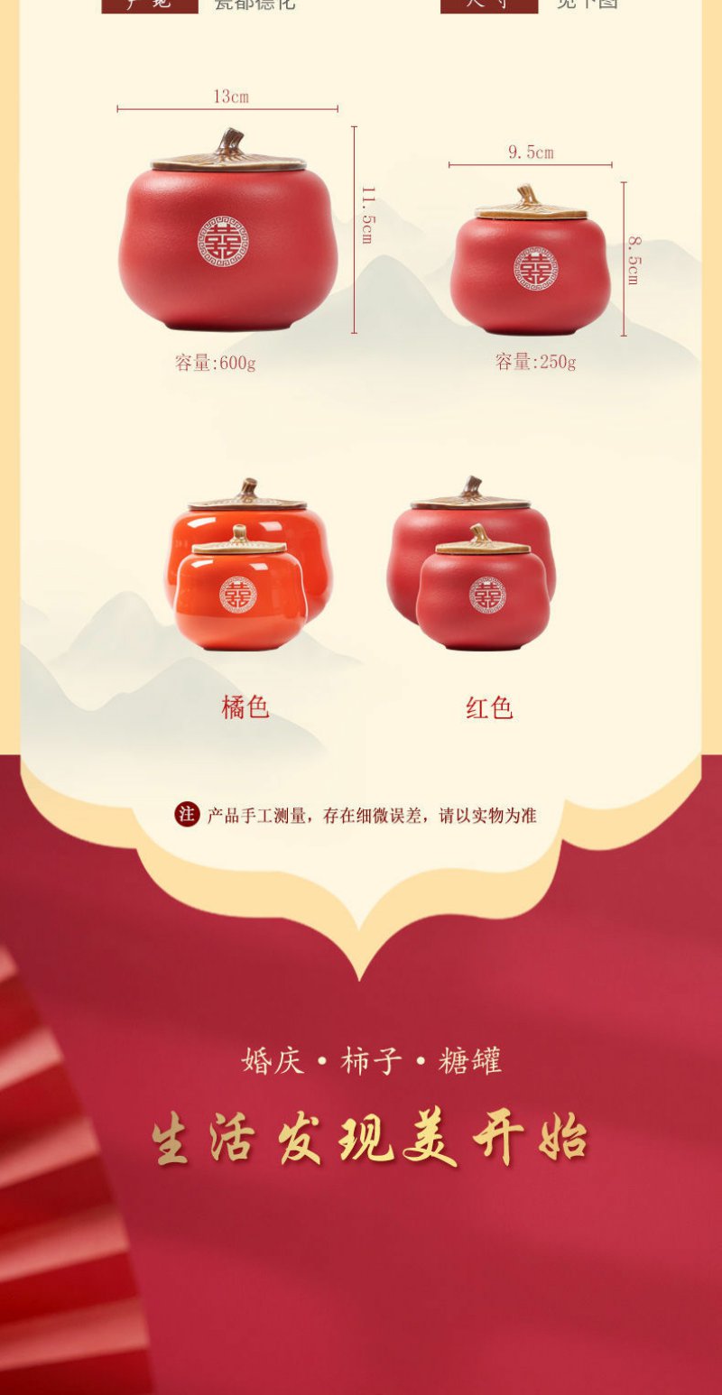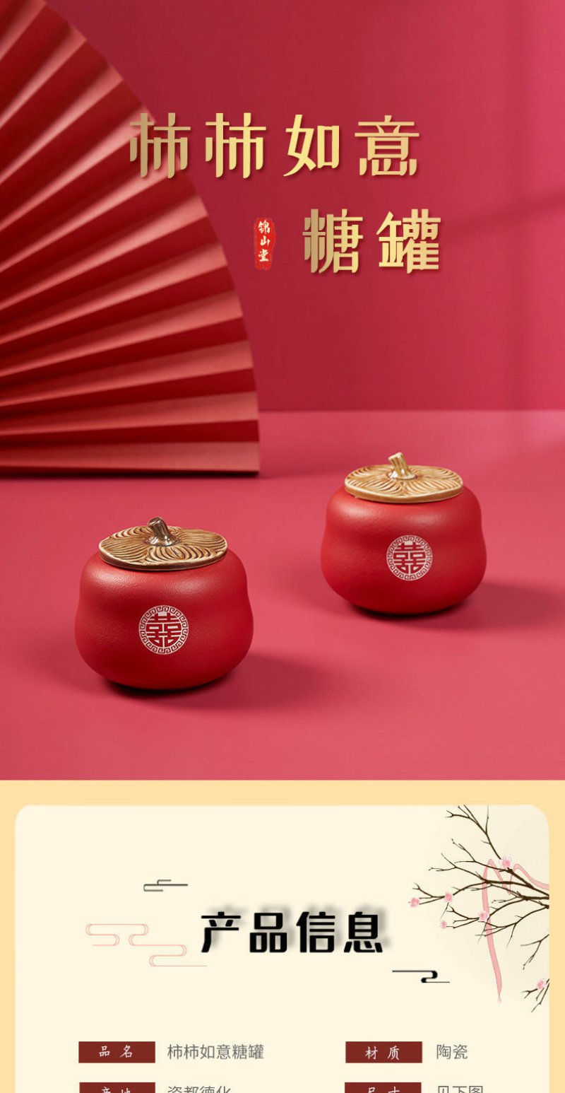 柿柿如意茶叶罐糖罐结婚茶具陪嫁红色喜茶叶罐子小号新婚礼物摆件