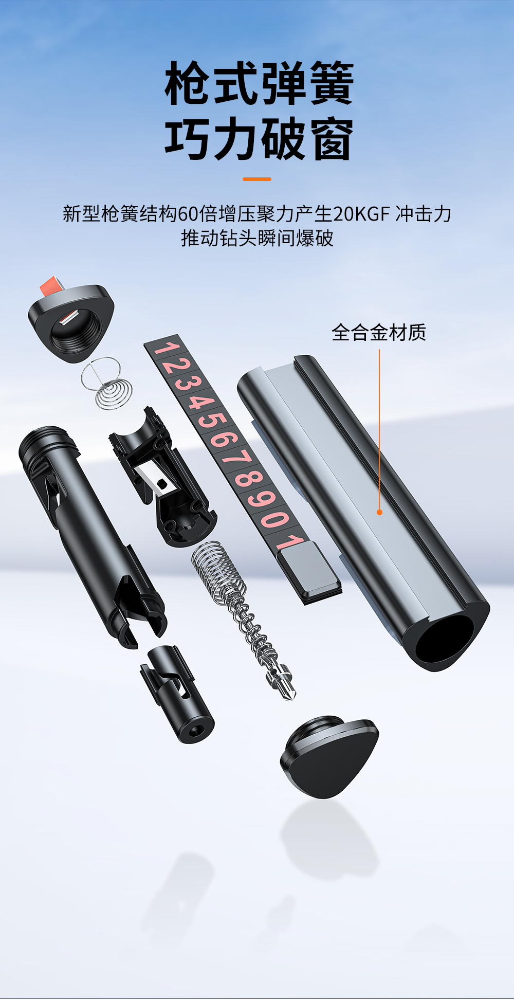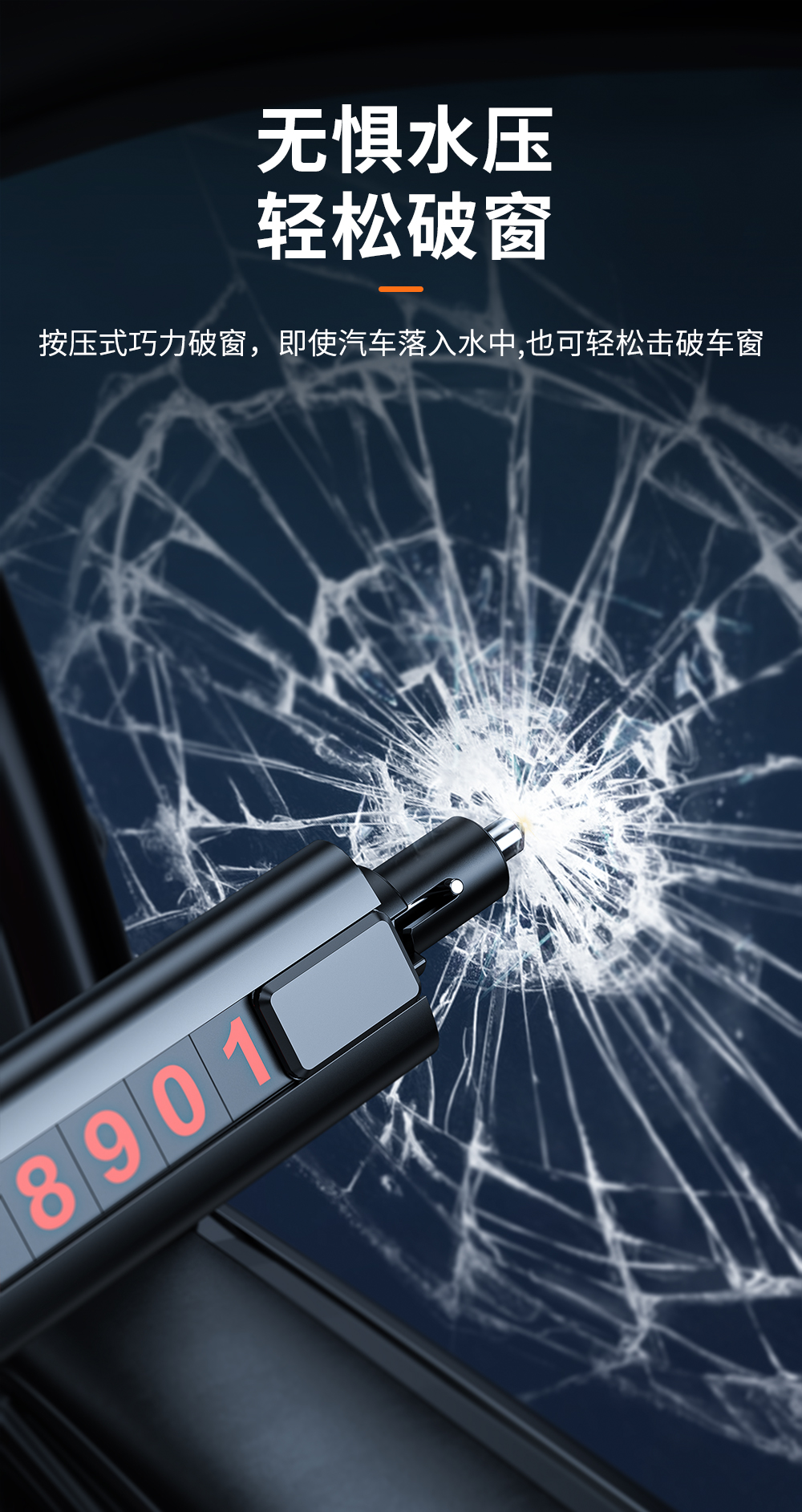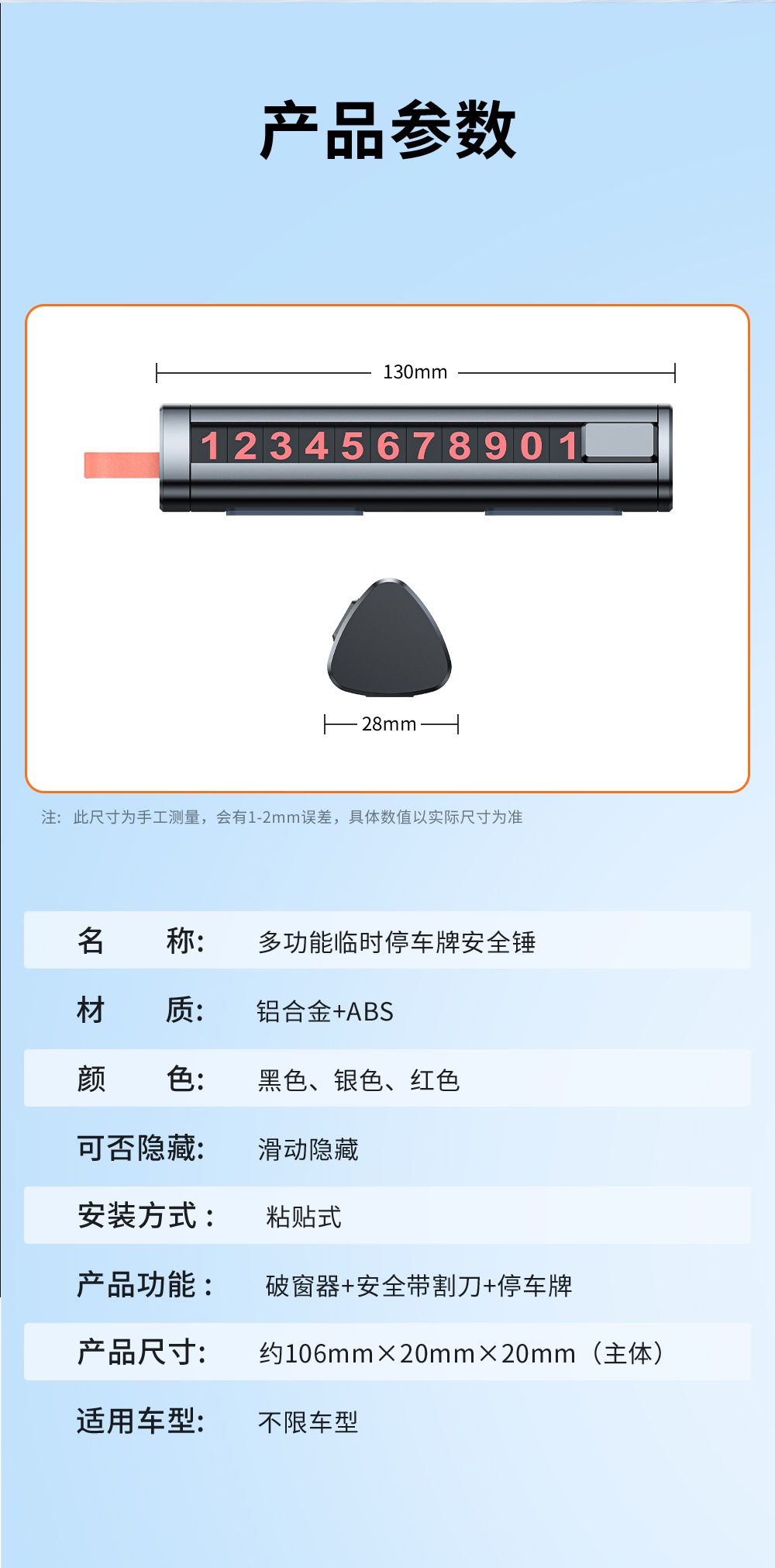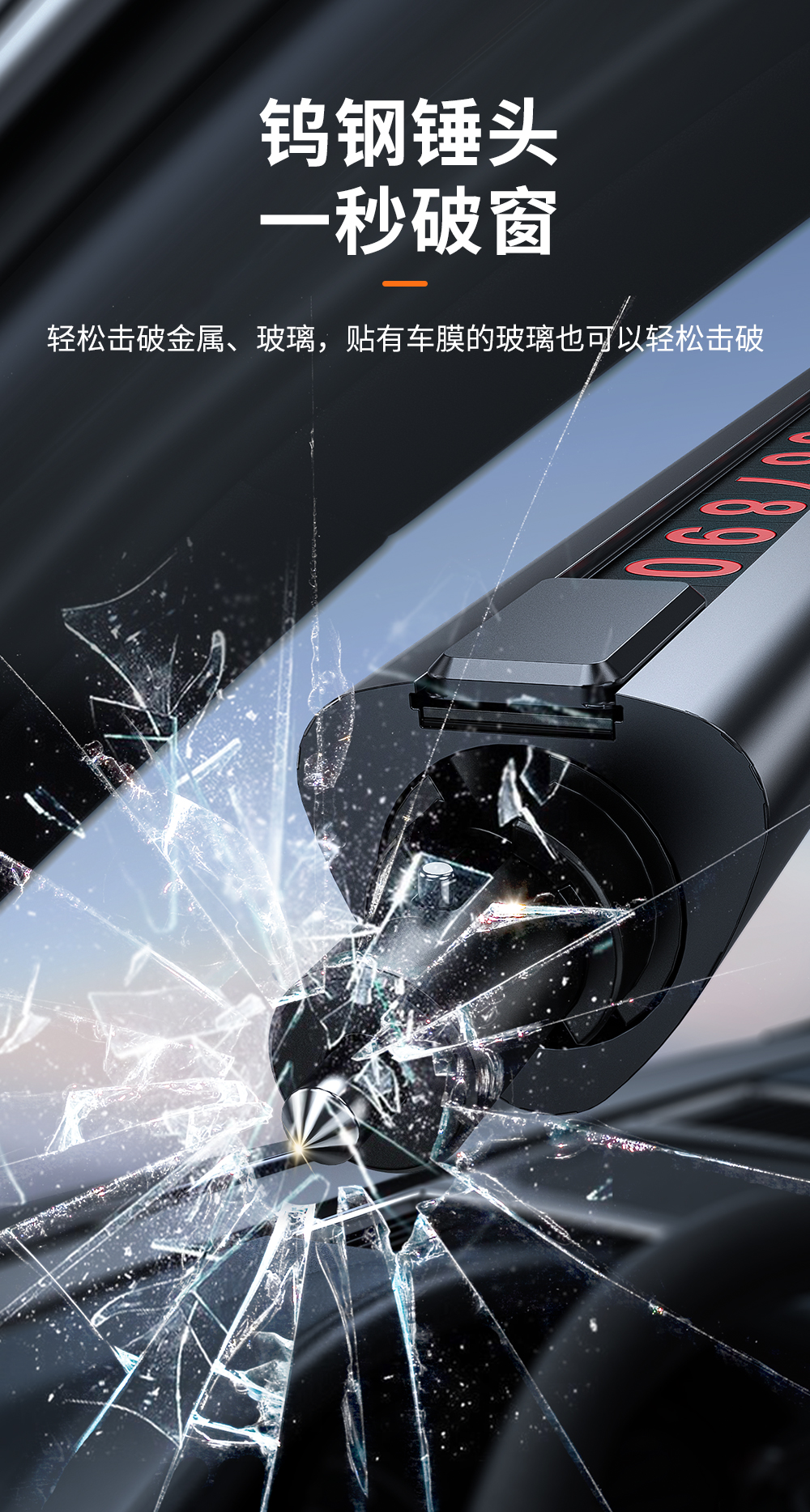 汽车多功能全金属三合一破窗器 临时停车号码牌安全带割刀