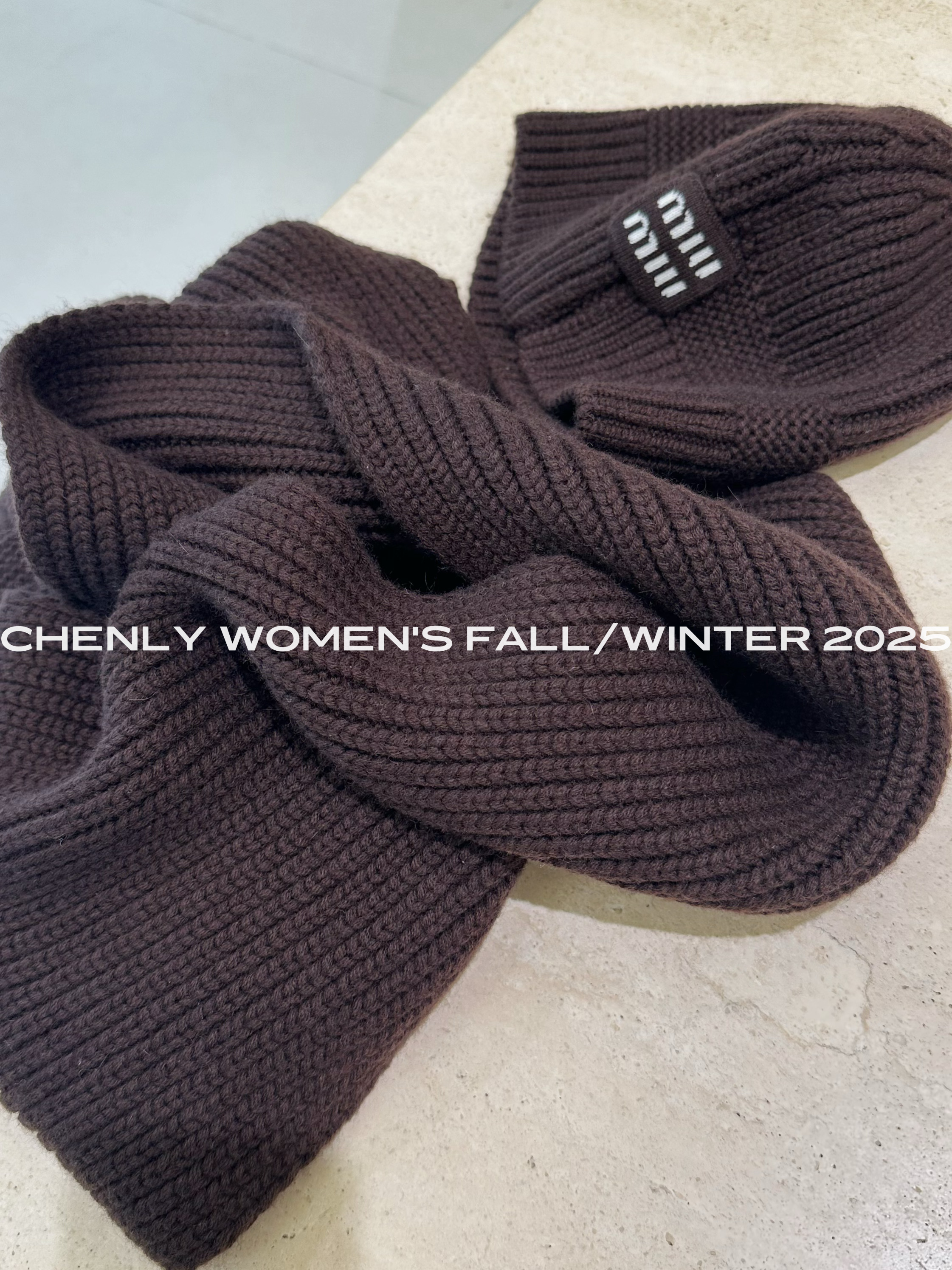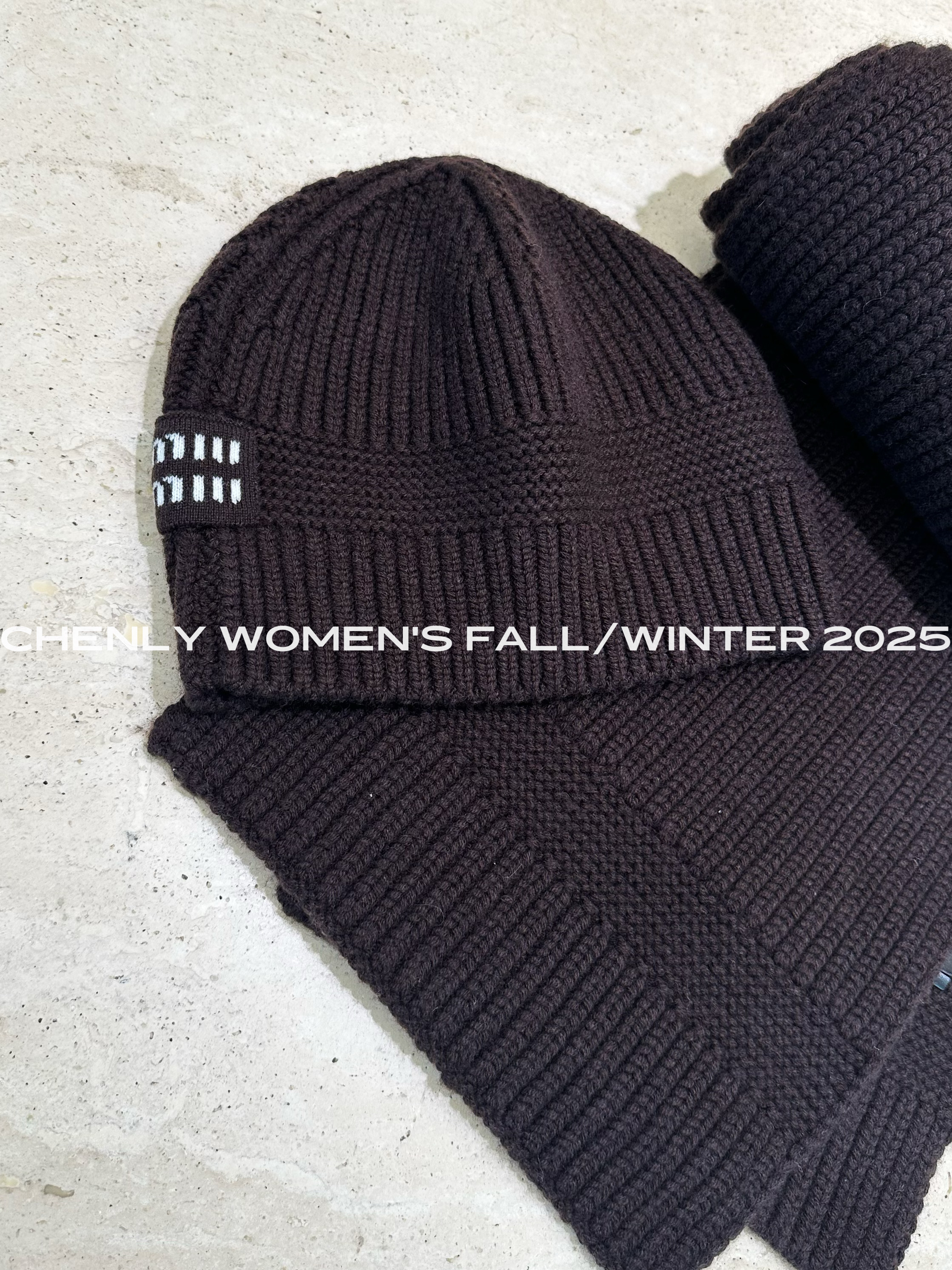 尘衣|25F/W 羊绒羊毛刺绣字母冷帽/围巾套装