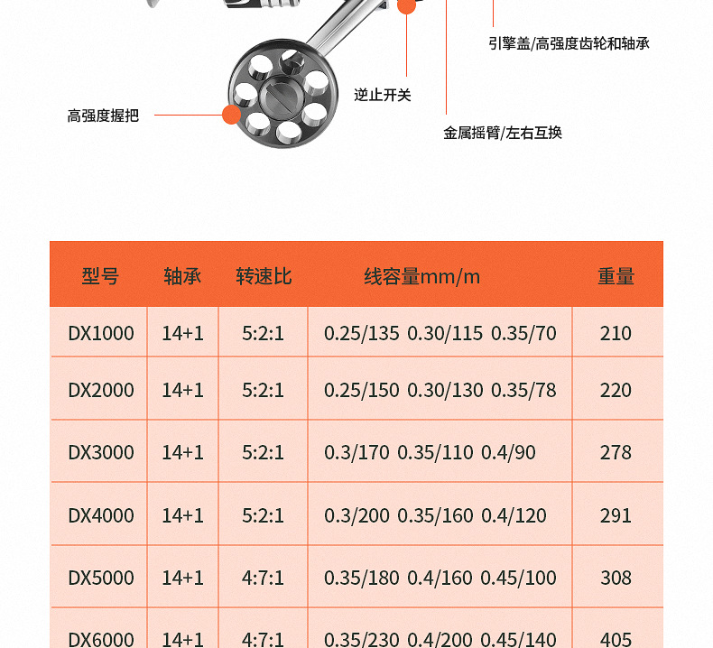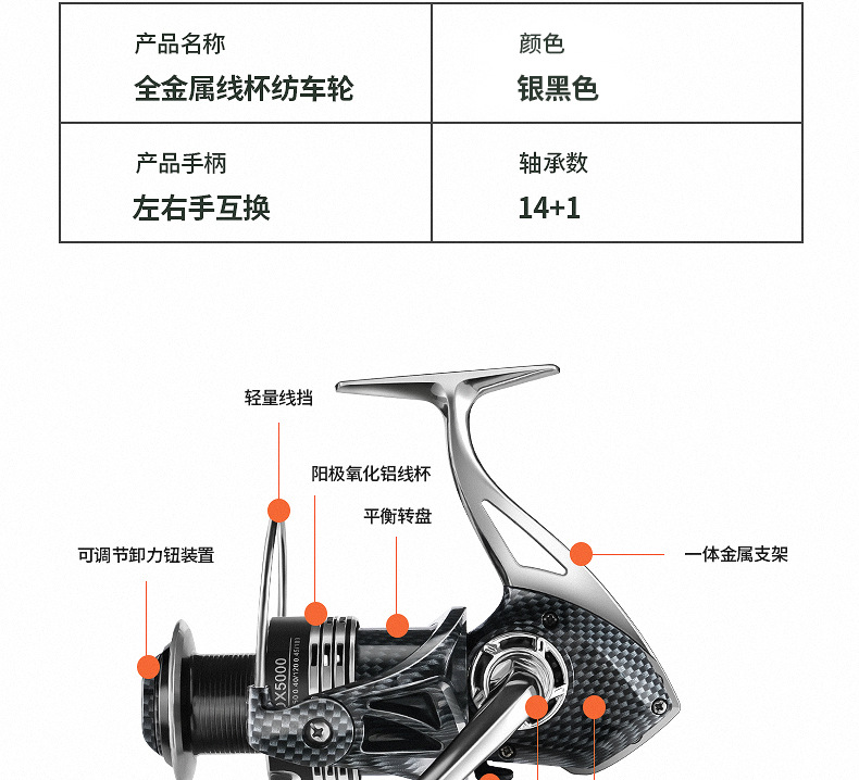 【运动装备】*无间隙全金属15轴承鱼轮纺车轮海杆远投渔轮路亚轮海钓鱼线轮渔具