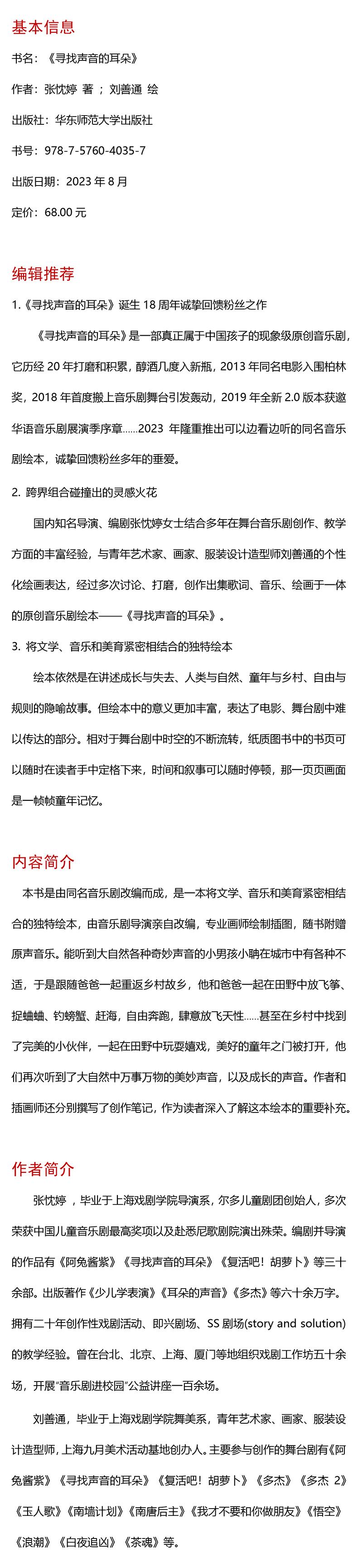 寻找声音的耳朵 张忱婷著 刘善通绘 魔法童书会策划 精装绘本