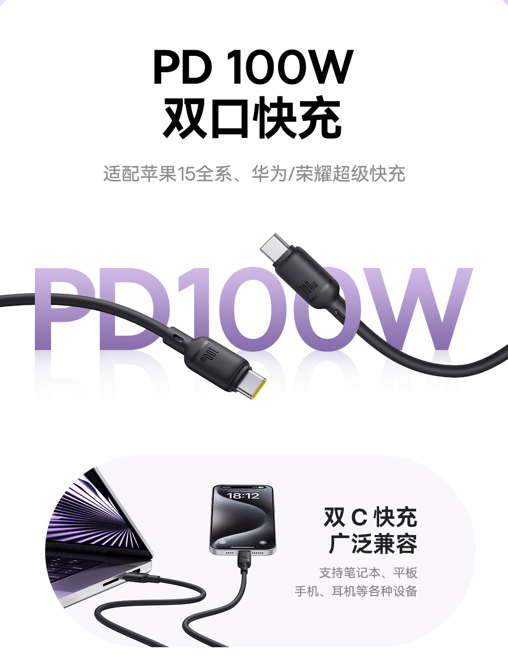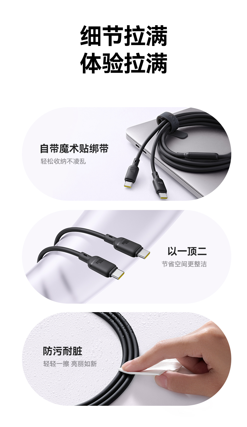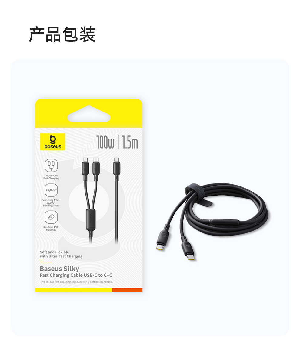 【拍2件58】类Q弹系列 快充数据线 Type-C to C+C 100W 1.5m