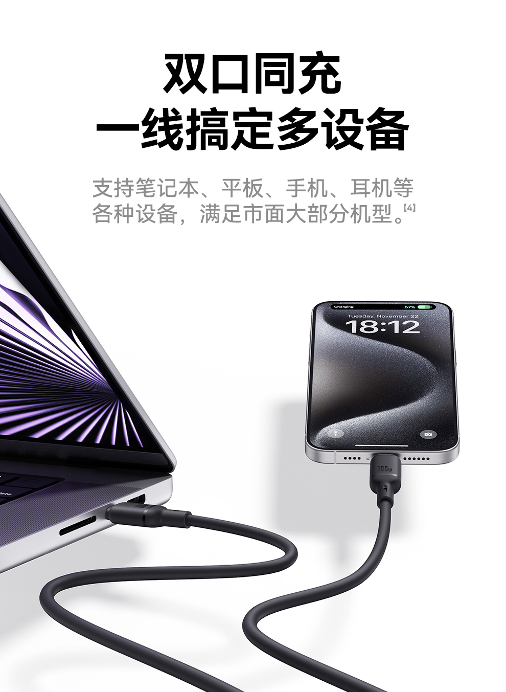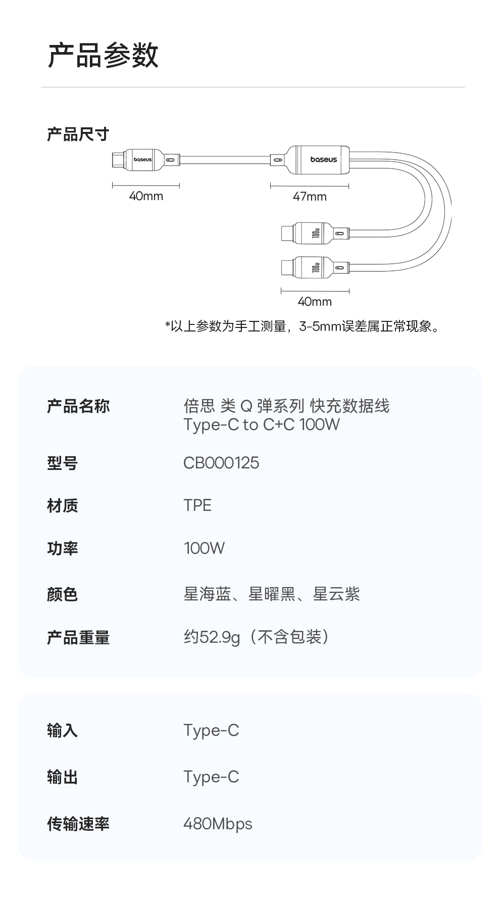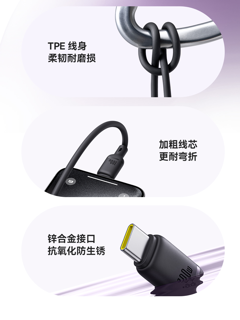 【拍2件58】类Q弹系列 快充数据线 Type-C to C+C 100W 1.5m