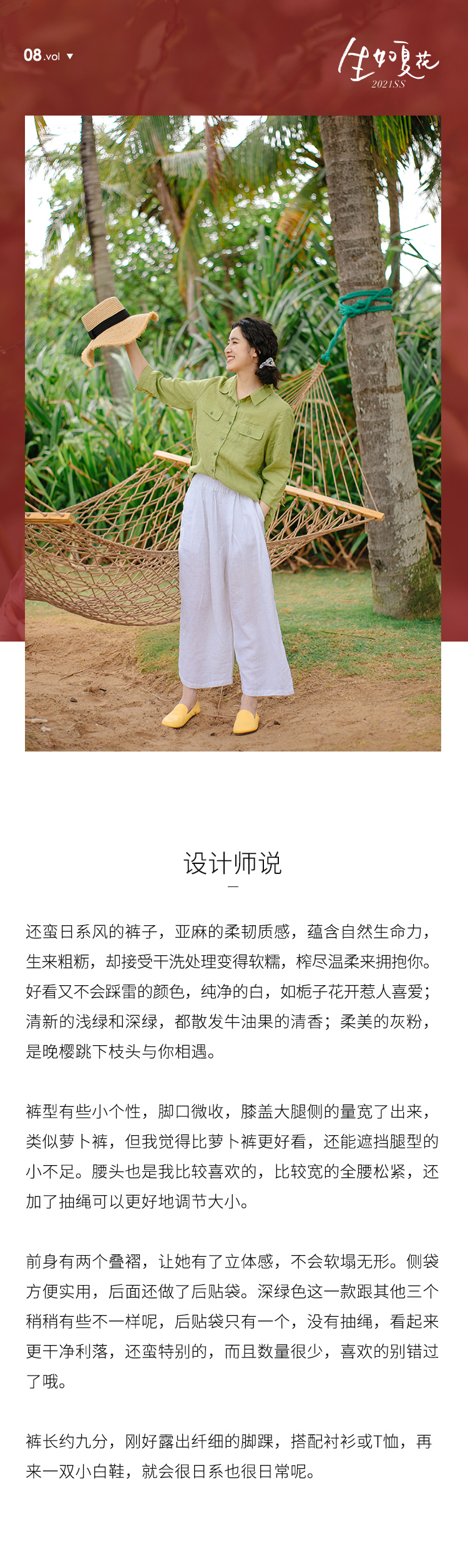 绽放女装|旅行中的自由着装 以天然亚麻为载体,融合热烈色彩与自在剪裁为身在城市、心怀远方的女性提供兼具美学与舒适的旅行着装