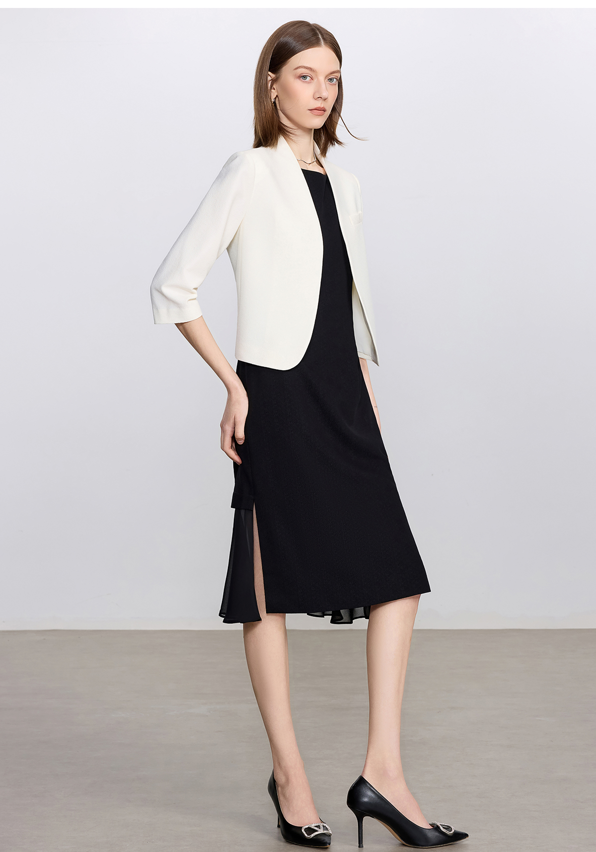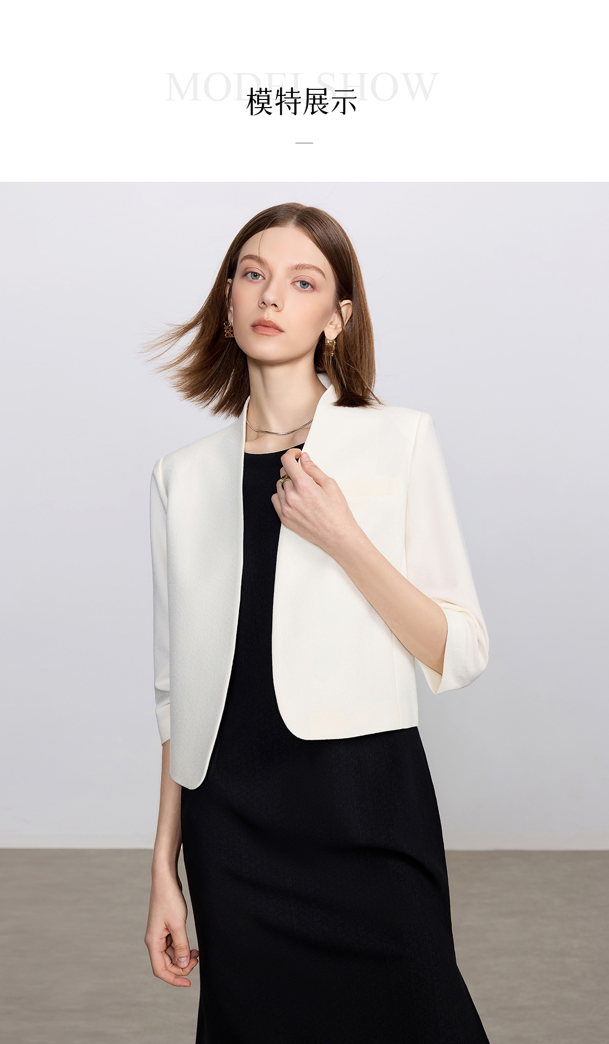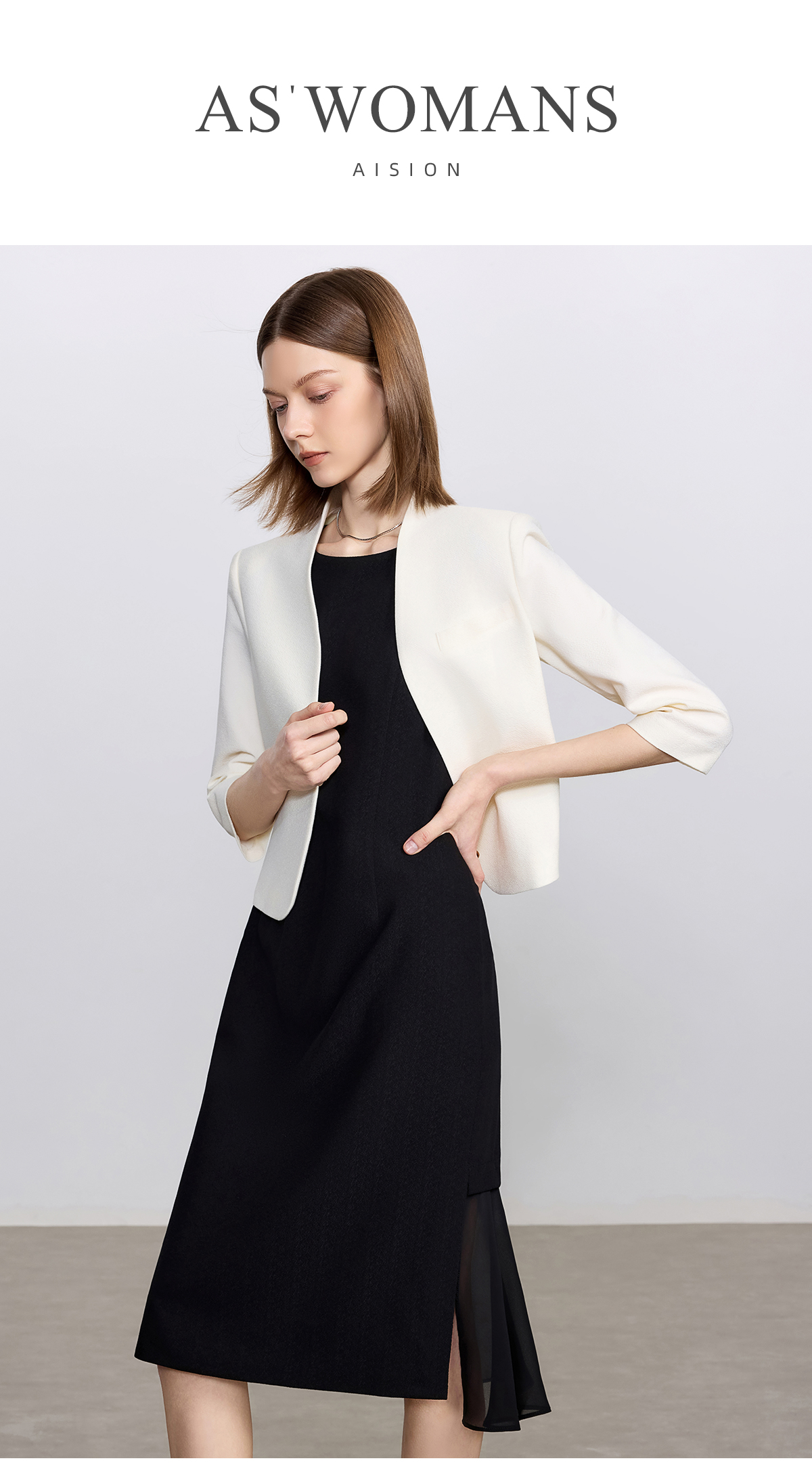艾尚臣白色时尚套装女通勤无领小西服轻奢高级感西装连衣裙职业装