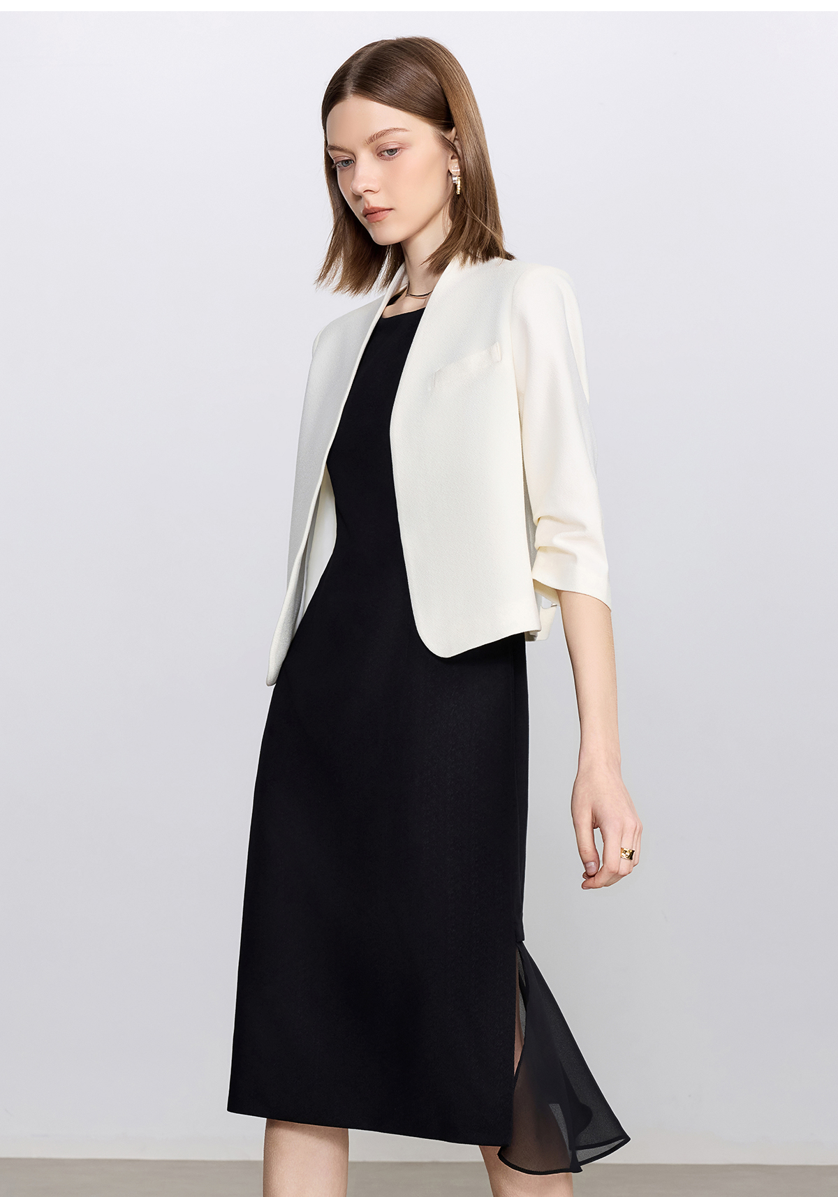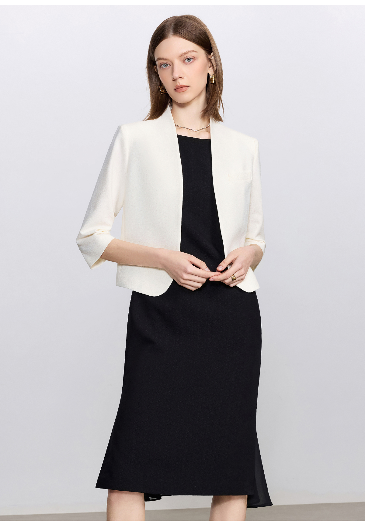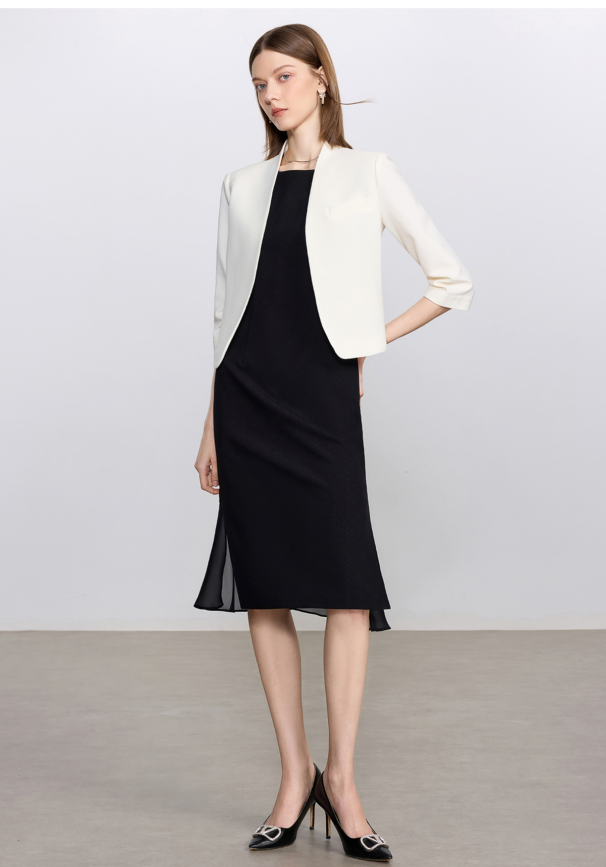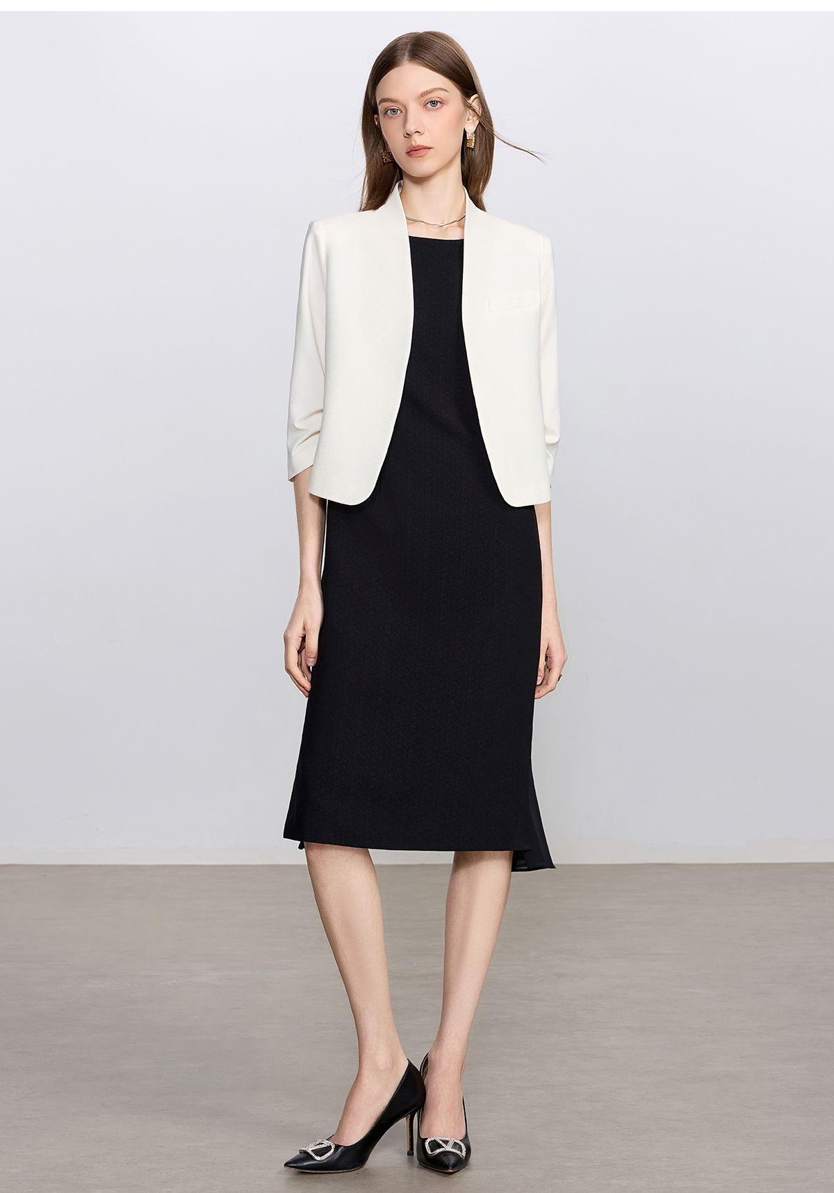 艾尚臣白色时尚套装女通勤无领小西服轻奢高级感西装连衣裙职业装