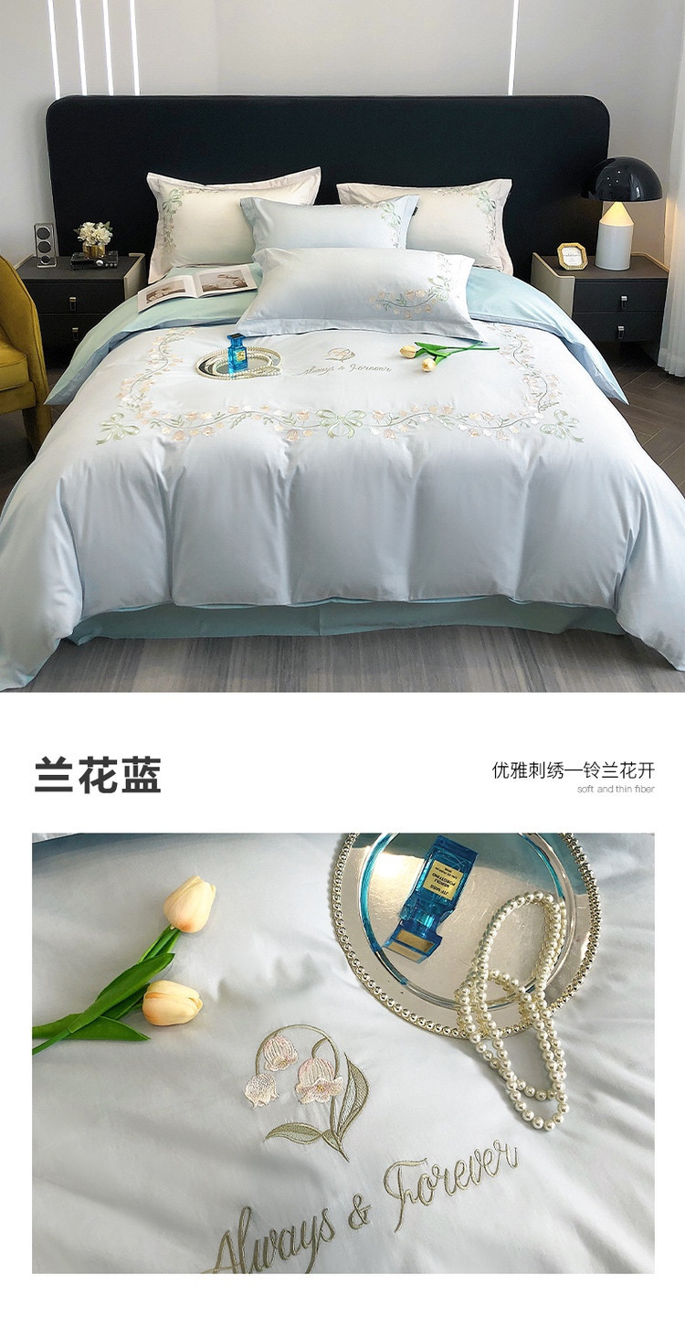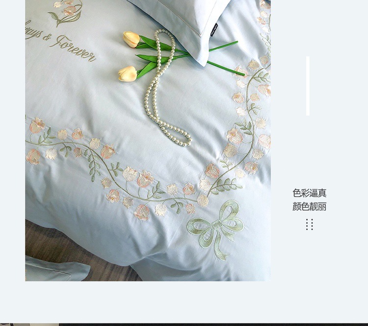 【安心好棉】全棉高支高密轻奢亲肤纯棉刺绣四件套小清新绣花床品
