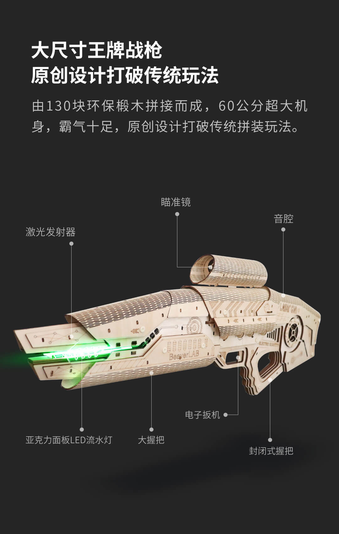当当狸激光束星际战枪 DIY潮玩 儿童玩具枪 木质拼装