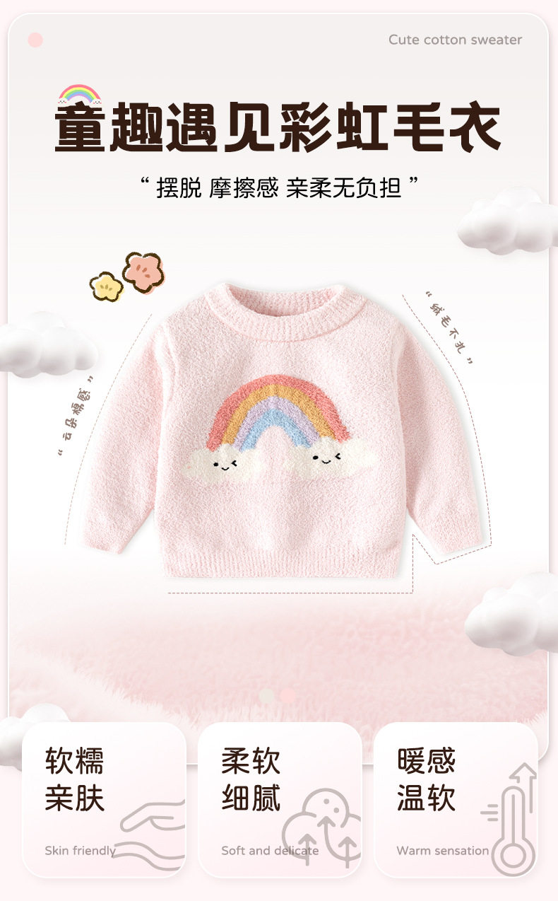 遇见彩虹软糯亲肤婴儿毛衣A类半边绒女童毛衣加厚款柔软宝宝毛衣