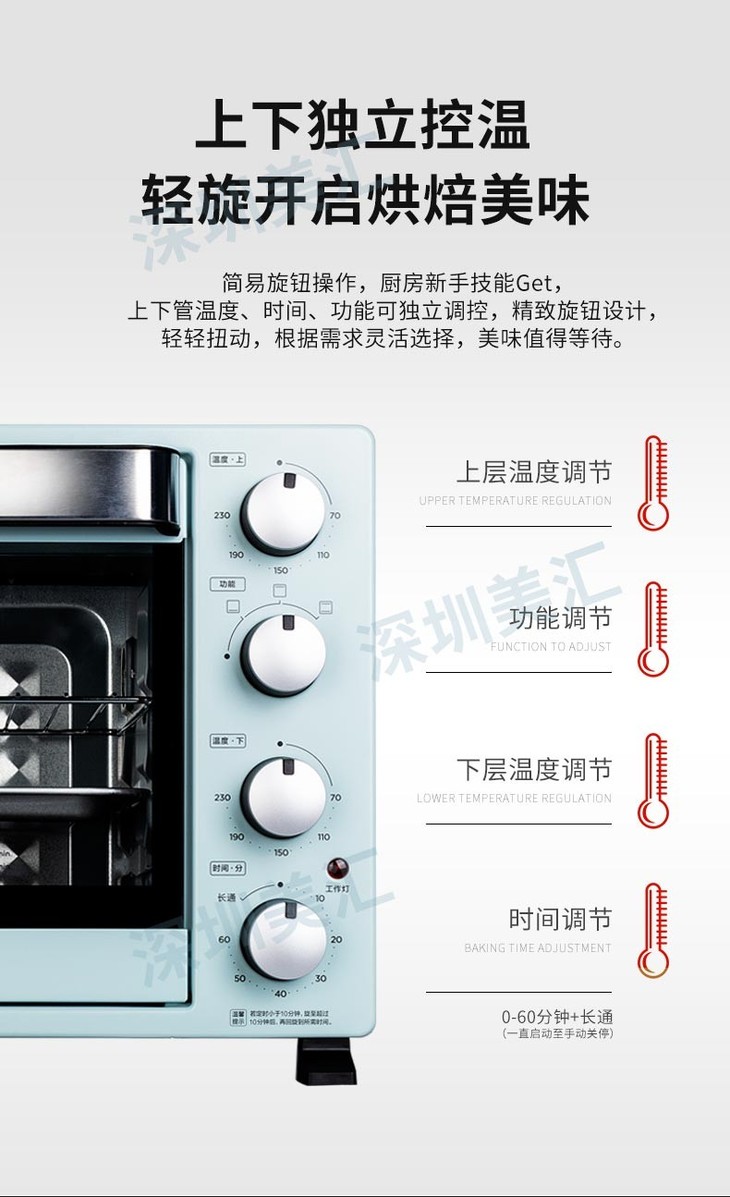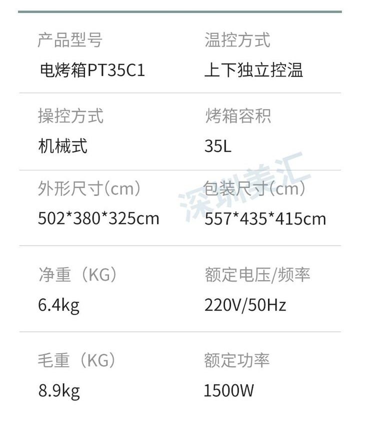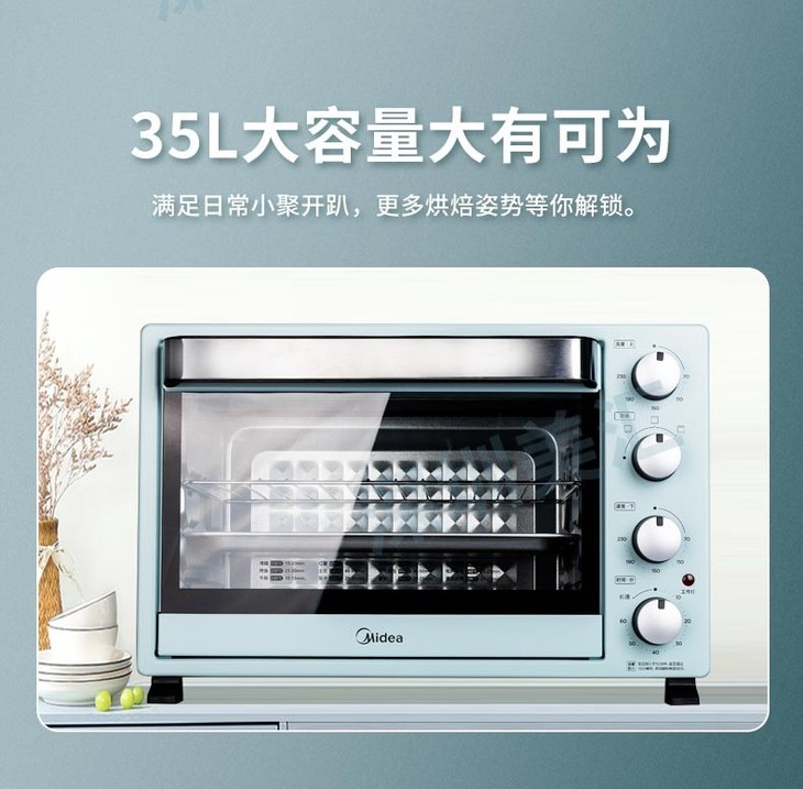 美的(Midea) PT35C1 家用多功能电烤箱 35升 机械式操控 上下独立控温 烘烤面包蛋挞
