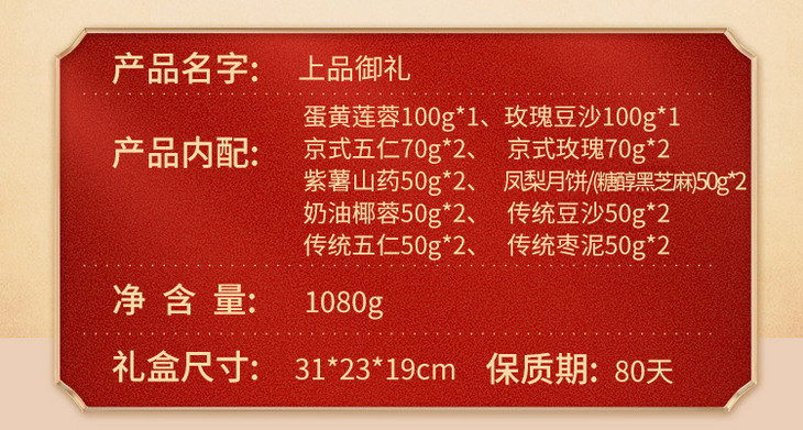 稻香村月饼礼盒 上品御礼 蛋黄莲蓉1100g