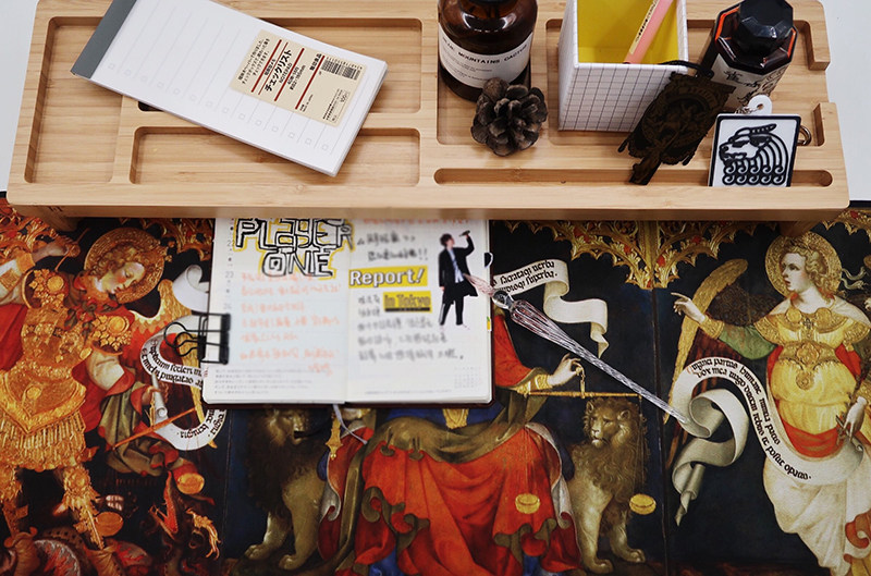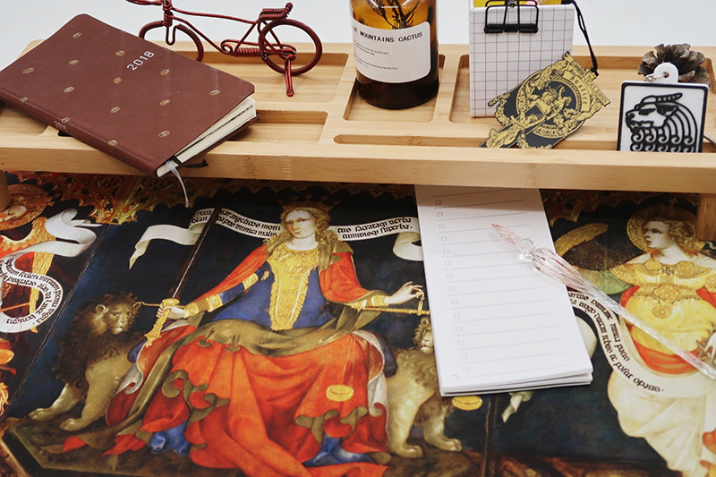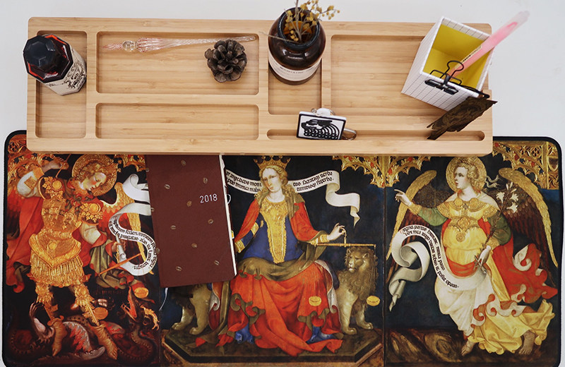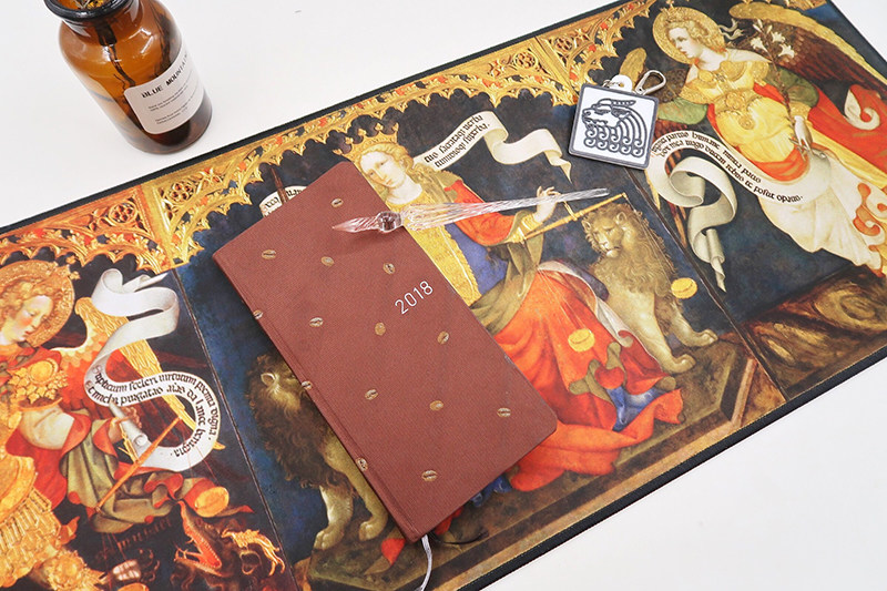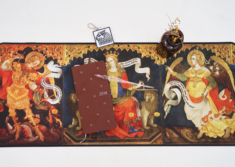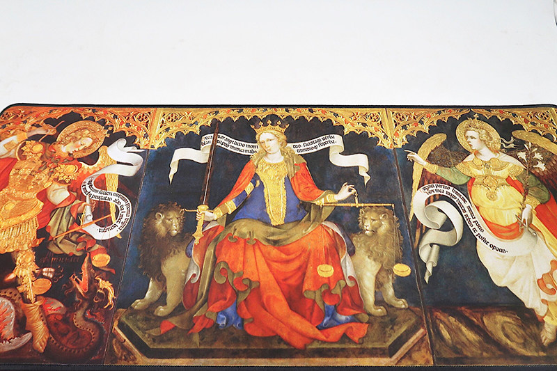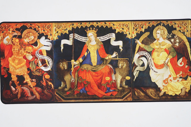 此款工作垫图案选用意大利古典描金绘画:正义女神与天使祭坛绘画。