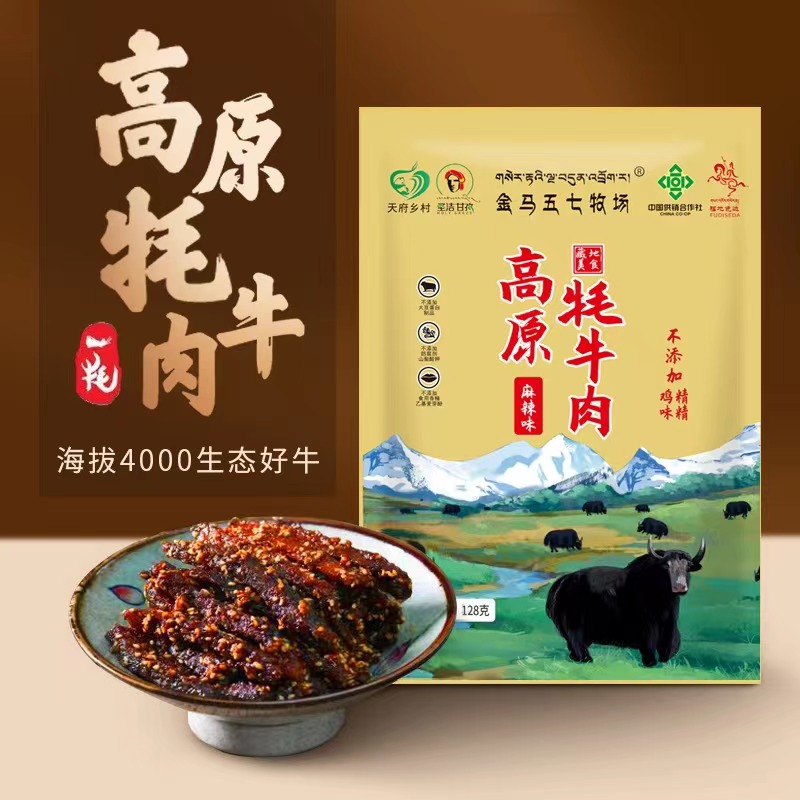 高原牦牛肉干麻辣味,128g*1袋
