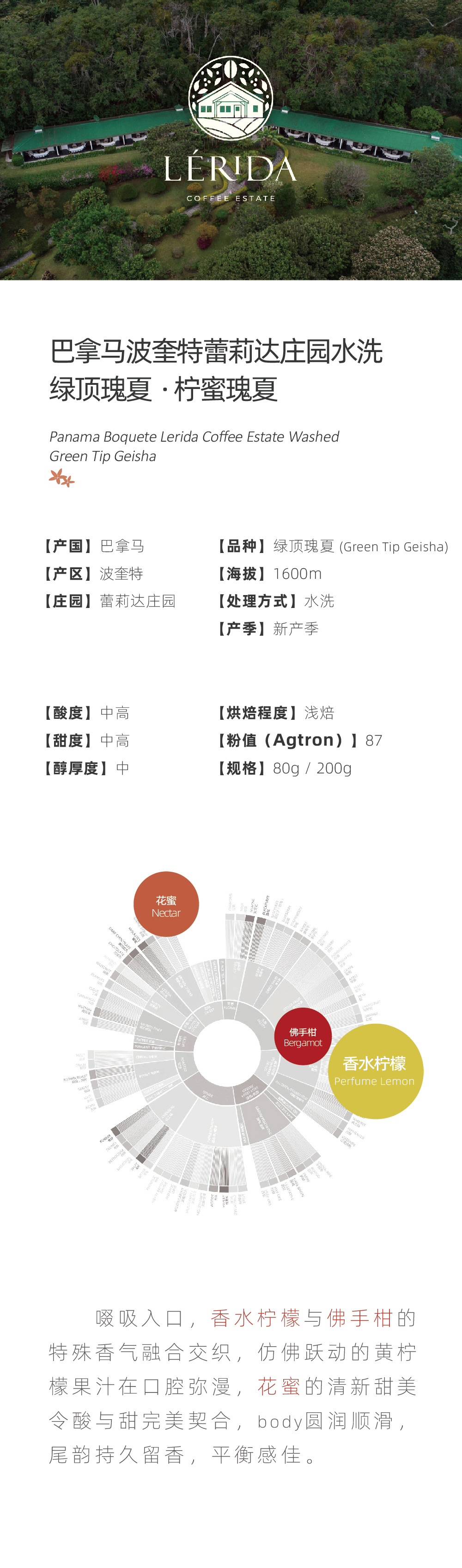 巴拿马蕾莉达庄园柠蜜瑰夏绿顶瑰夏水洗手冲咖啡豆
