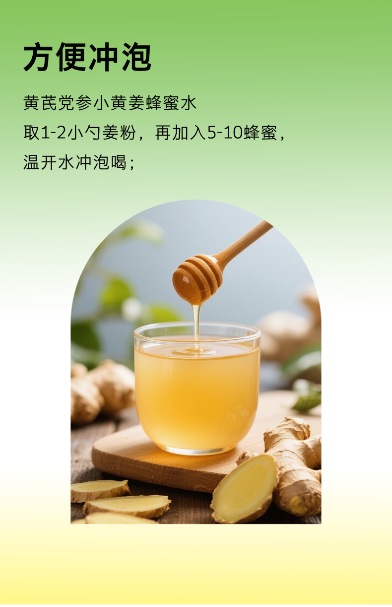 温馨提示:可根据个人饮用习惯添加姜粉用量,每日使用量建议不超过10g,可根据个人需求,加入蜂蜜 红糖等进行调味。