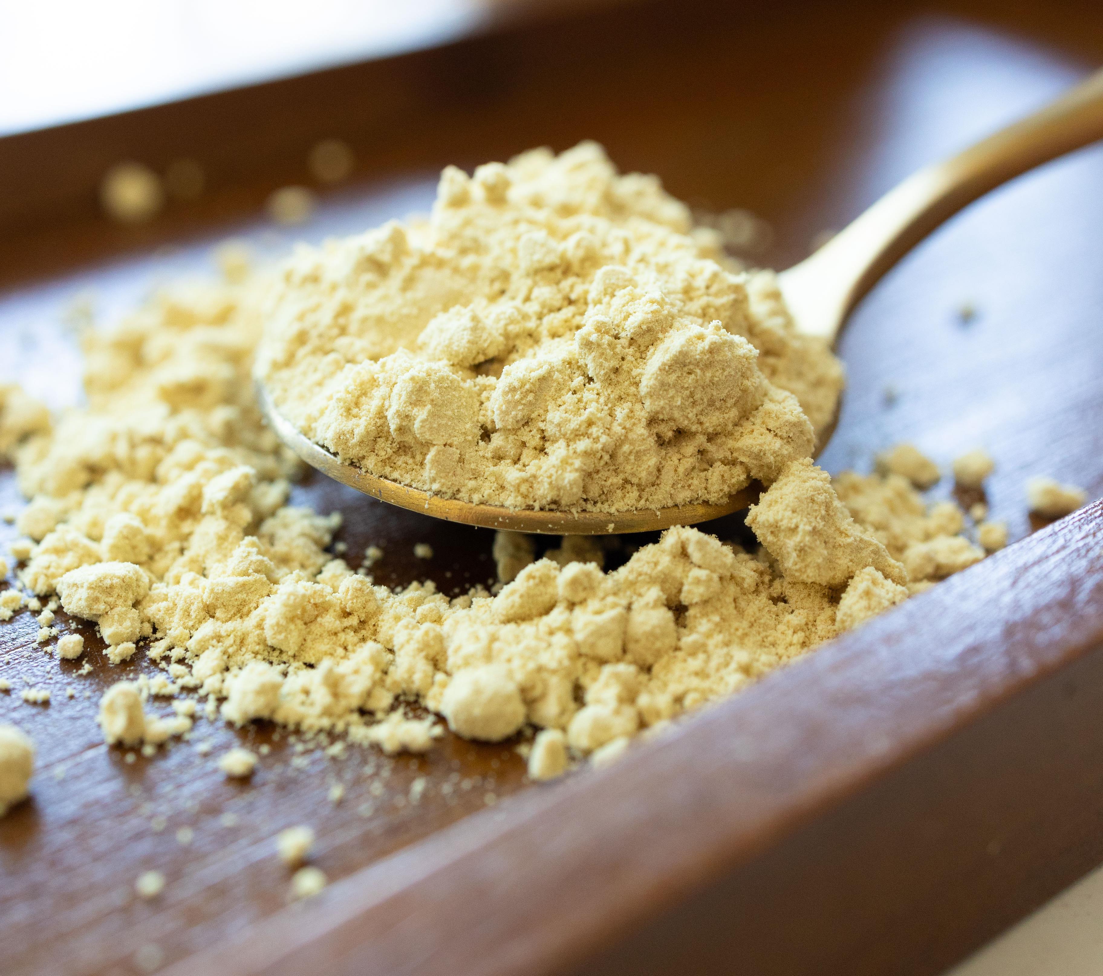 冲泡方法:取一小勺姜粉放入杯中,加入40℃左右的温开水搅拌冲泡。