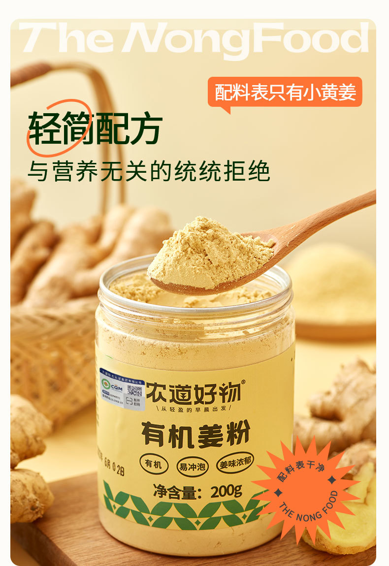 【冬吃萝卜夏吃姜】乐轻享黄芪党参姜粉200g/罐 农道好物有机黄姜粉200g/罐 无蔗糖无色素 粉质细腻 冲水不结块
