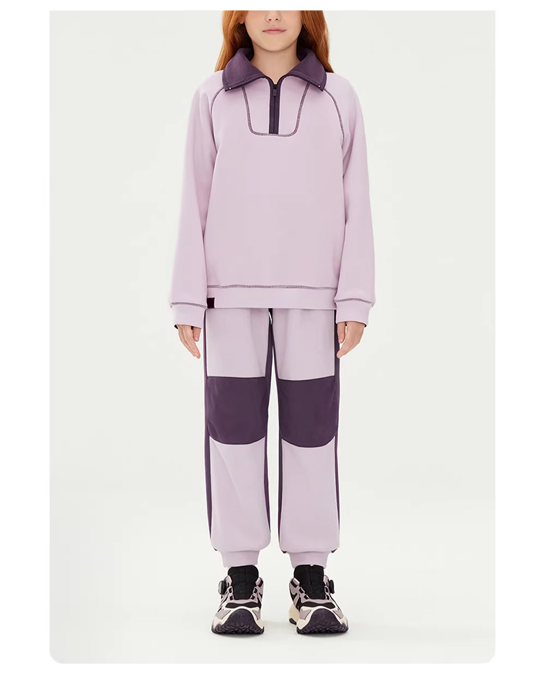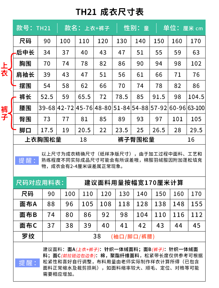 裁缝学苑TH21新款加绒翻领儿童卫衣纸样卫裤套装插肩半拉链打版裁剪图纸