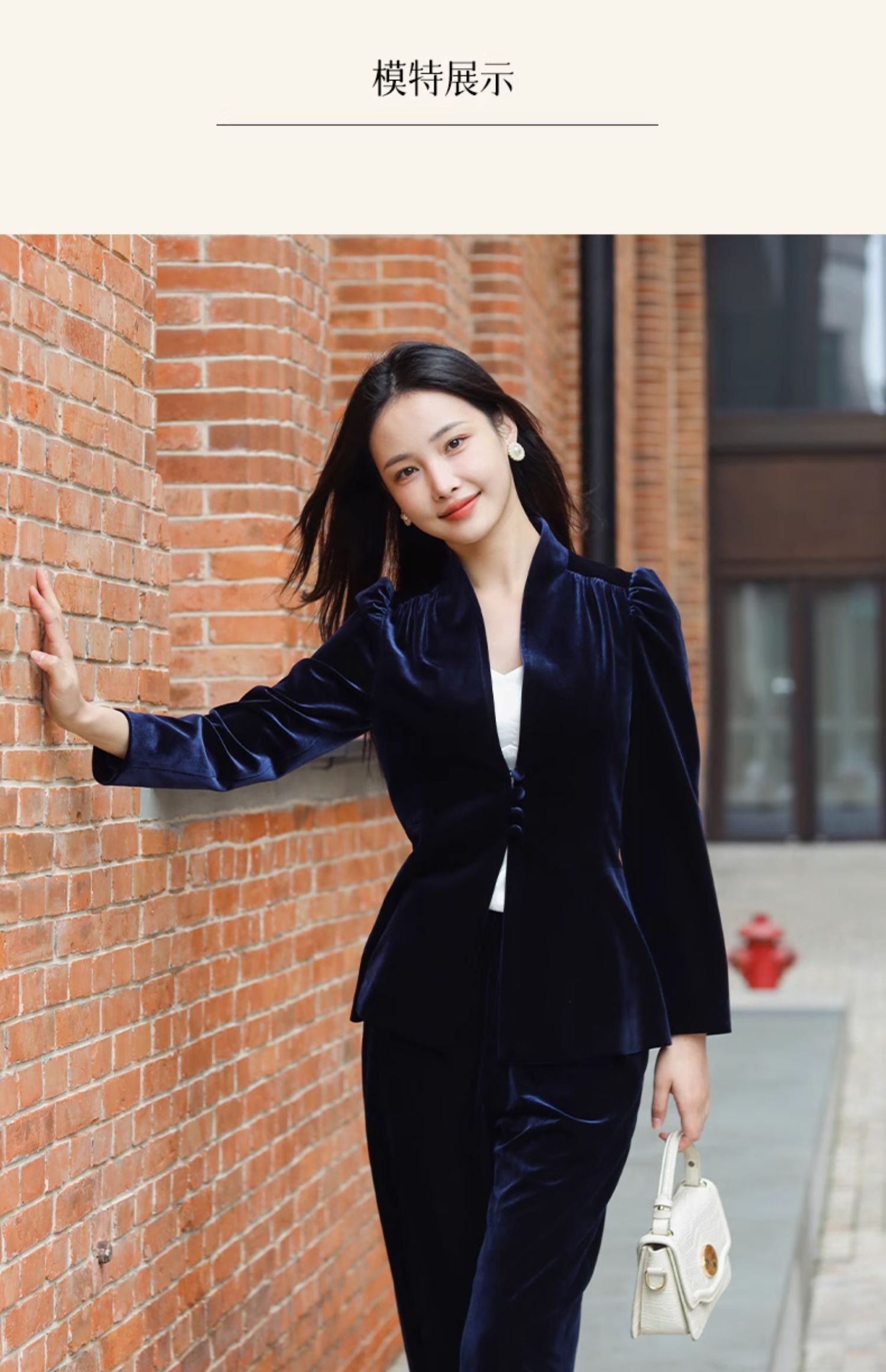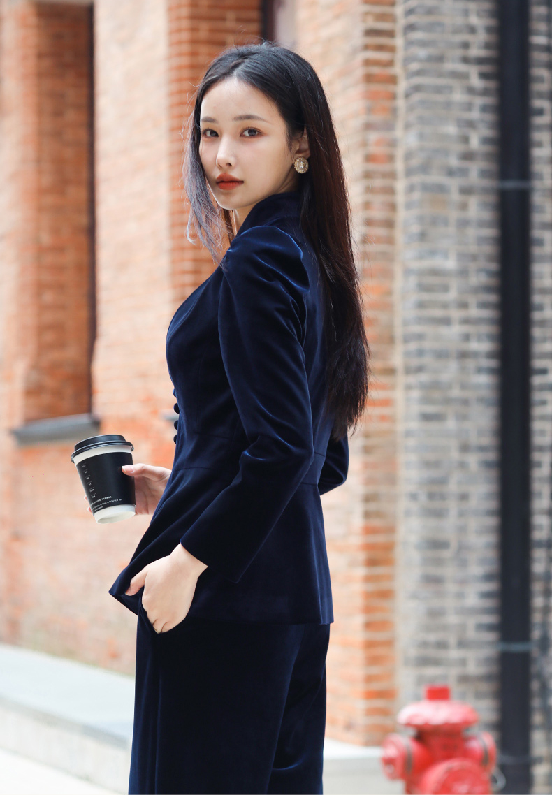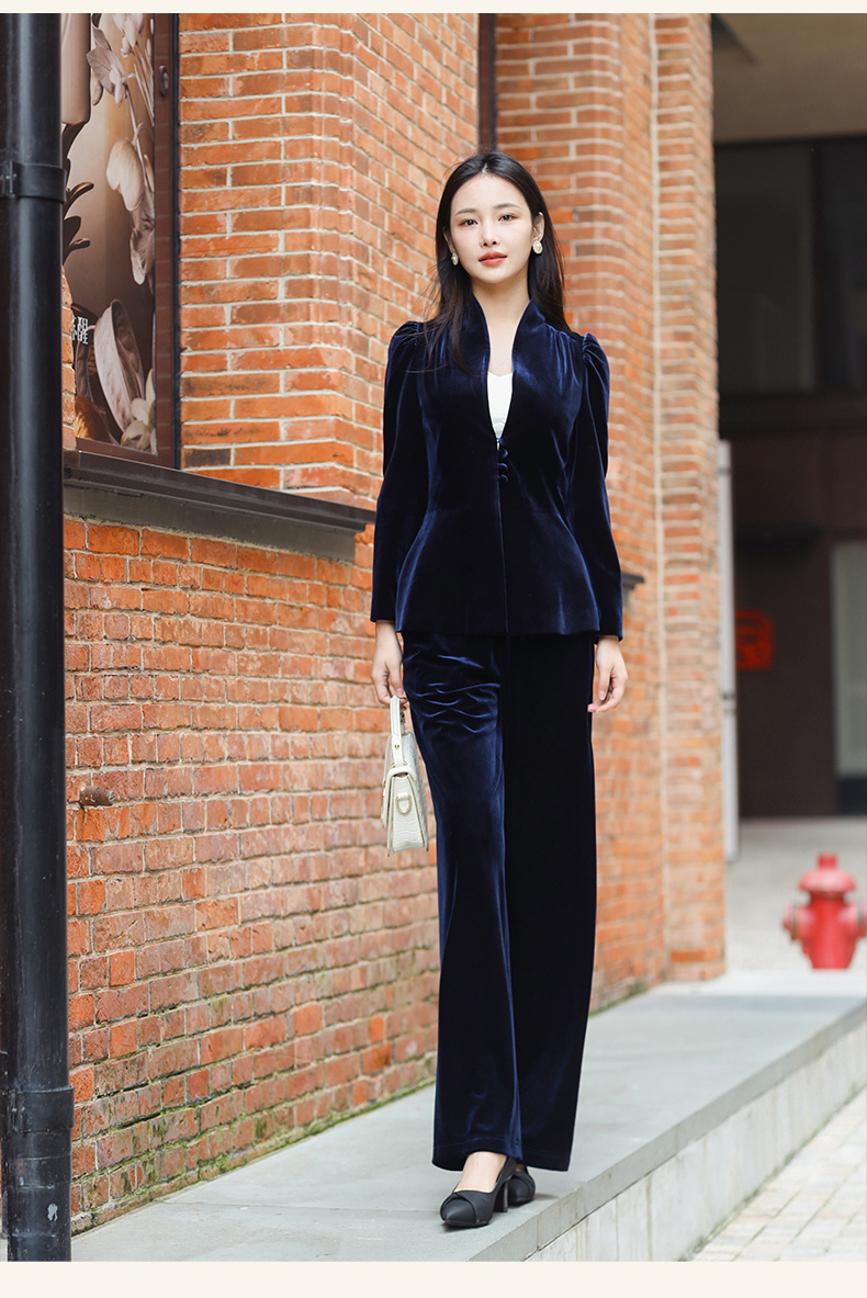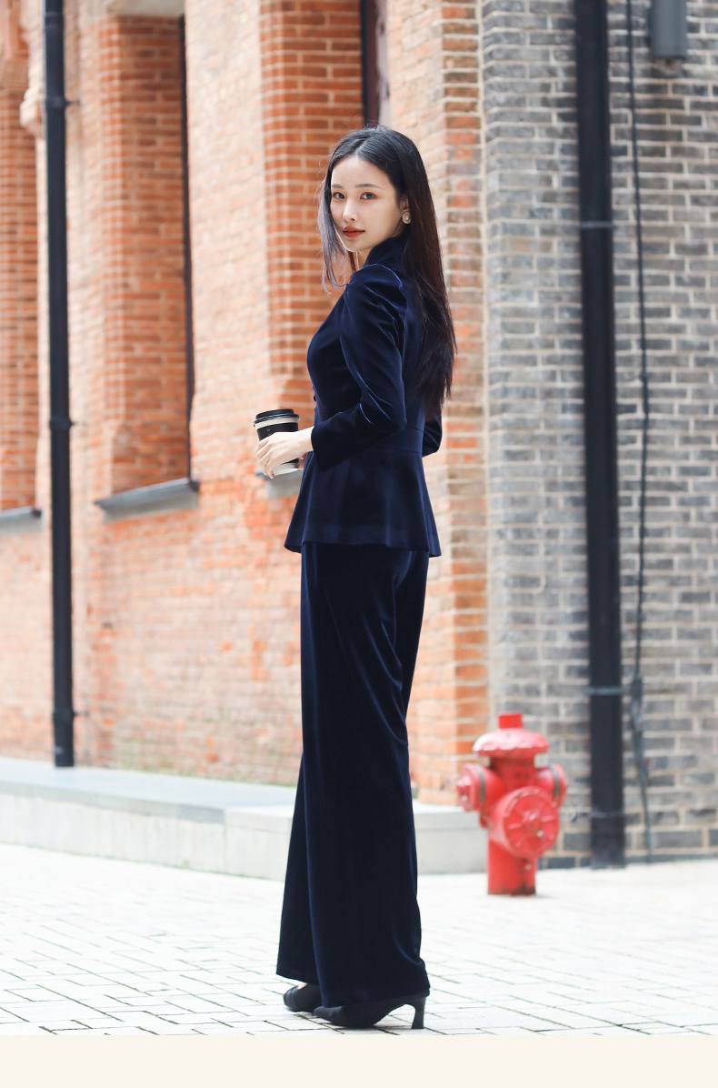 上海逸红颜 艺莘 2025年早春新款弹力丝绒气质西装直筒裤子女冬季