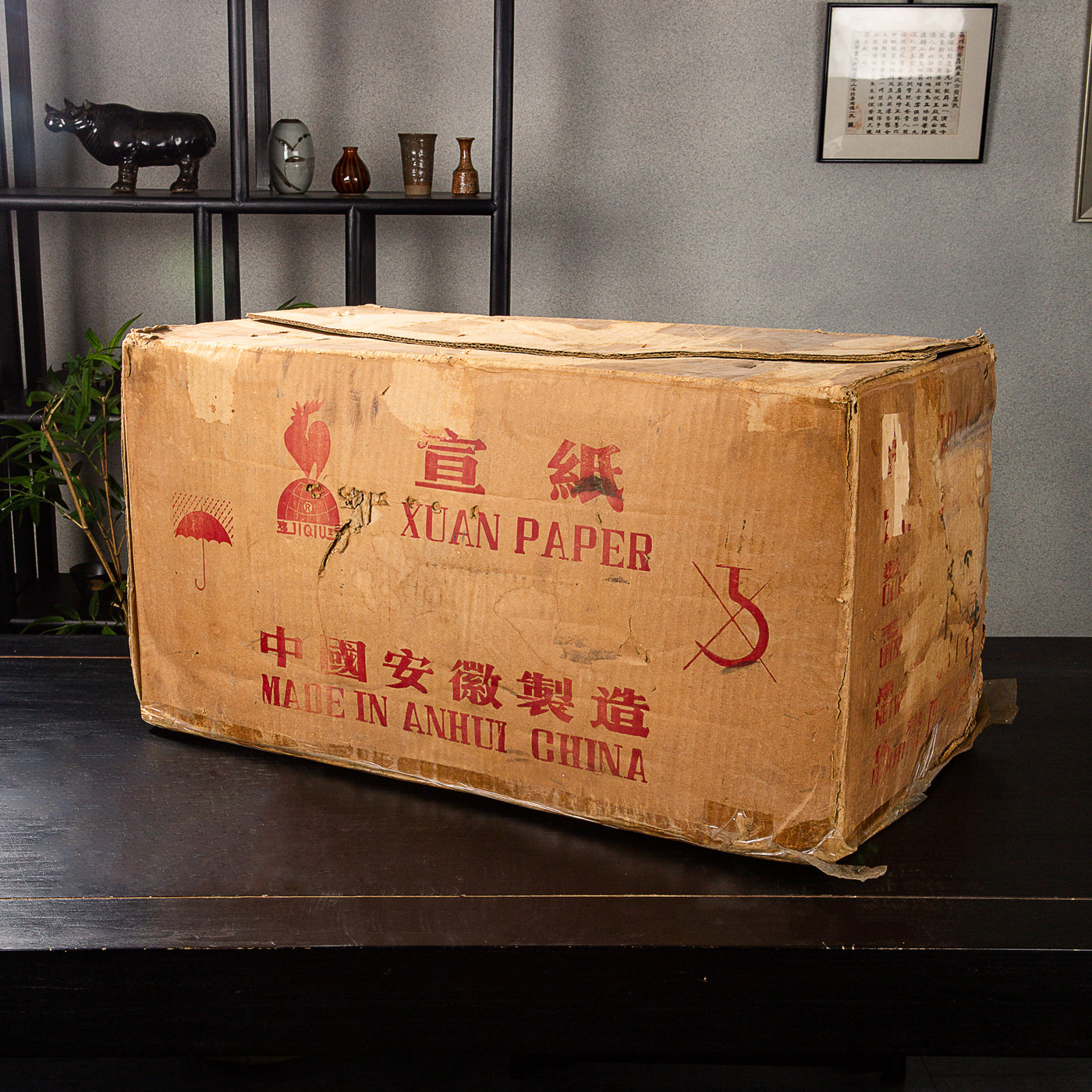 80年代鸡球牌大三尺老宣纸,此纸是国营安徽泾县宣纸二厂当年所造,其纸张质地优良,老纸已火气尽失,宜书宜画,原箱存放,品相保存完好。泾县宣纸二厂早已不存在,老鸡球宣纸存世非常稀少,十分难得。
