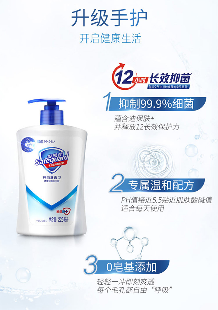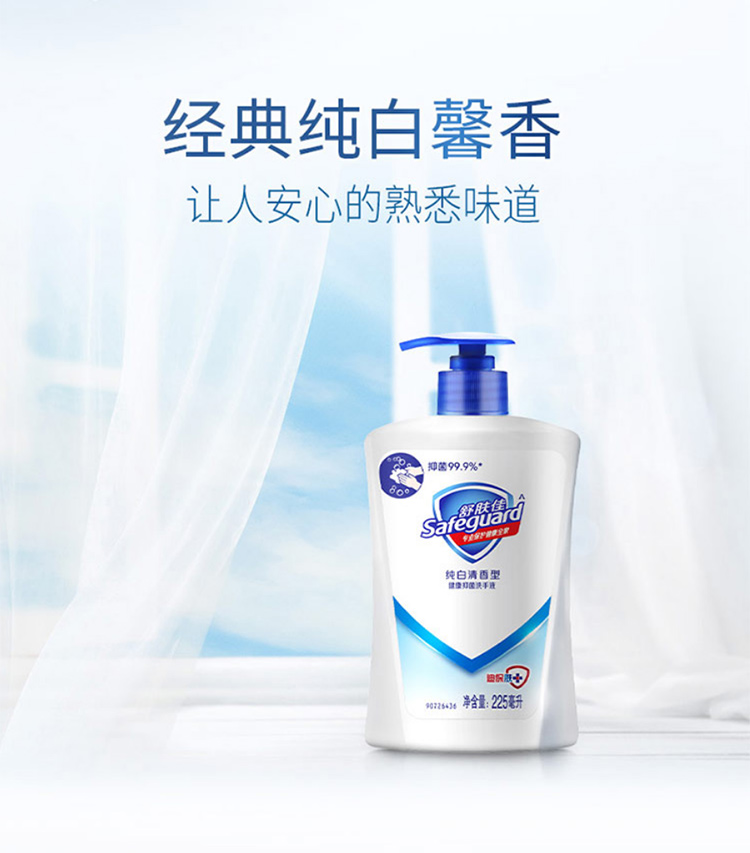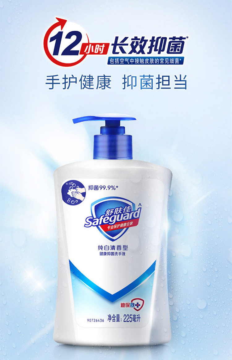 舒肤佳抑菌洗手液纯白清香225ml (抑菌99.9% 健康抑菌 长效保护)