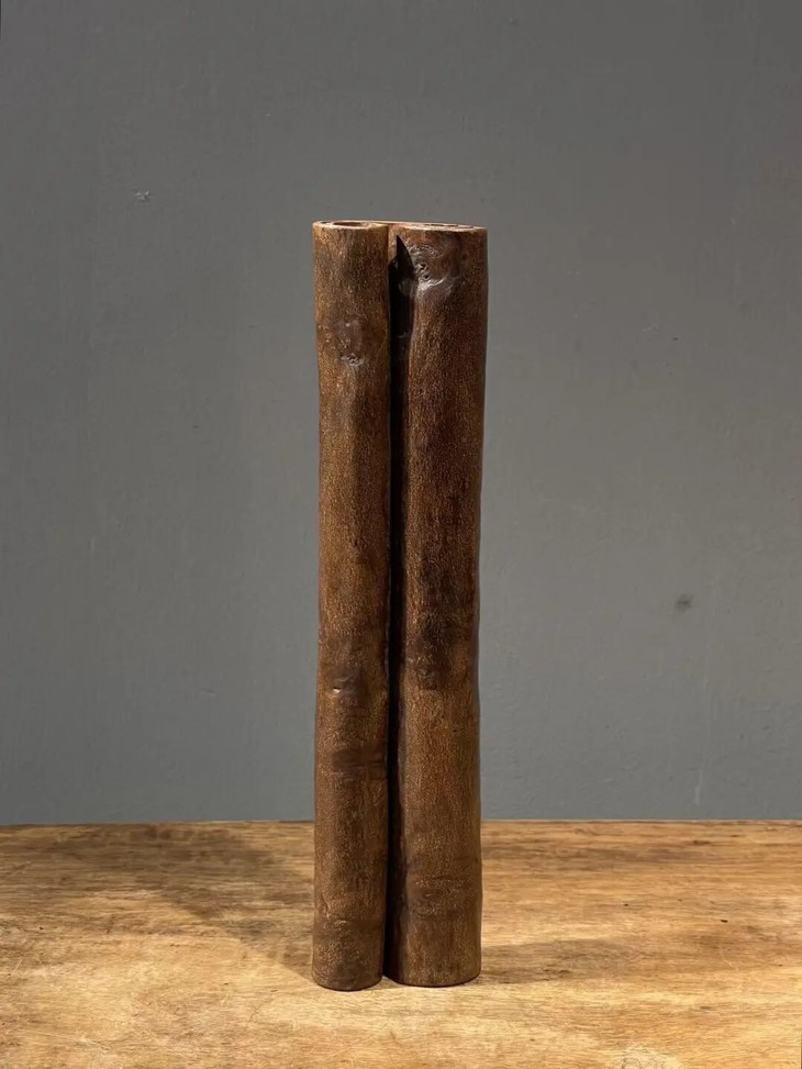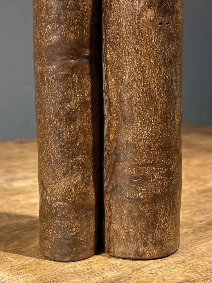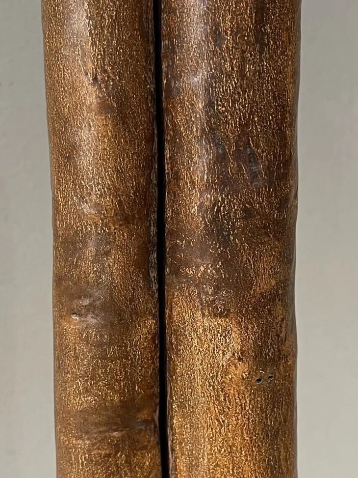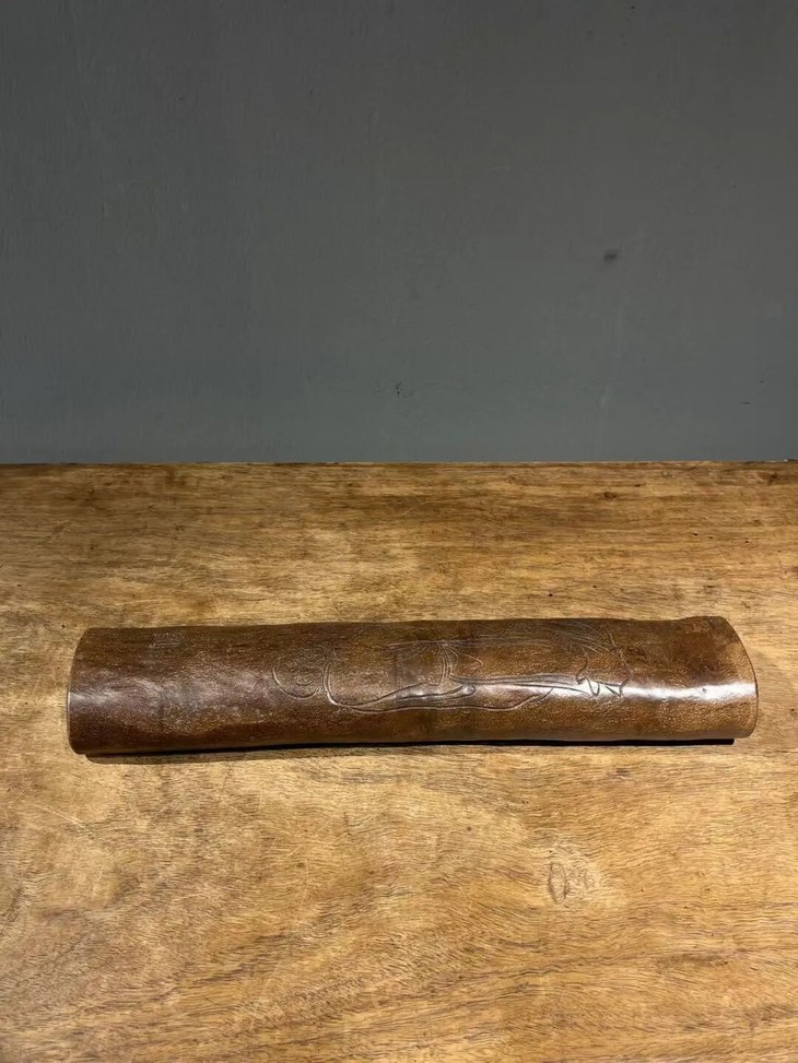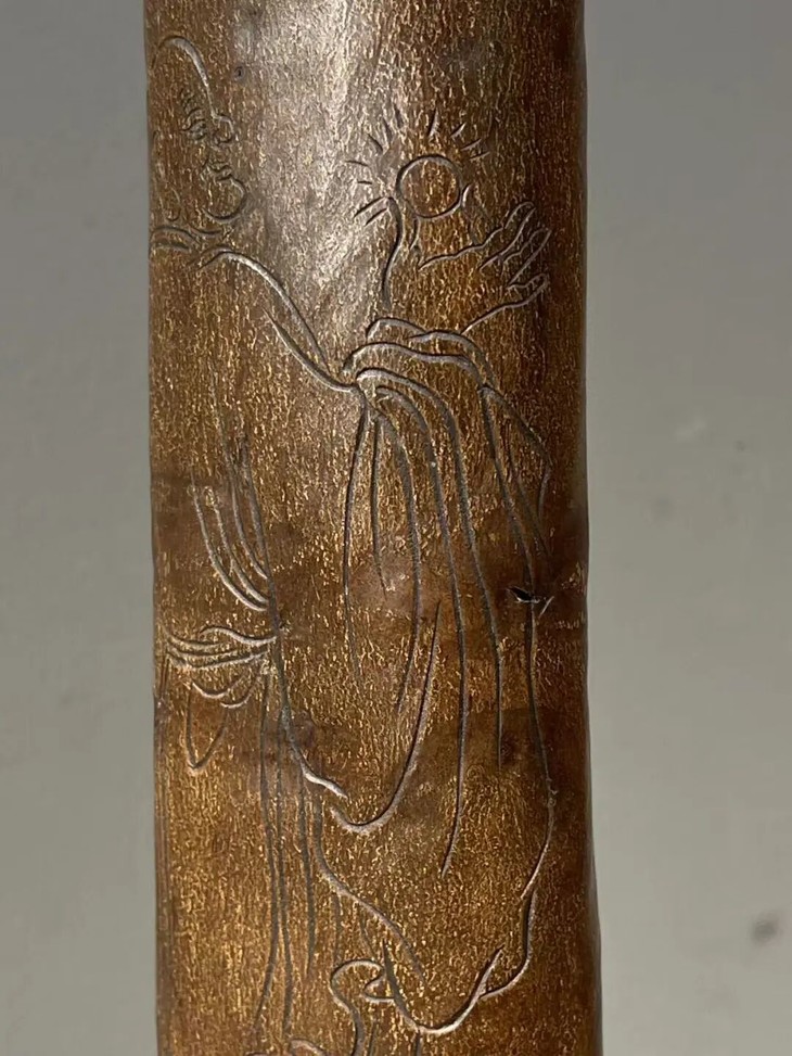 此天然桂皮雕罗汉纹臂搁,取材天然桂皮、质地坚硬纹理清晰、形状优雅浑然天成,线条简洁、比例和谐,自然风干材质包浆浑厚,纹饰雕琢文气雅緻却不繁复,是典型明清文人喜爱的简约风格,属年代久遠、收藏级别的老文房雅器。